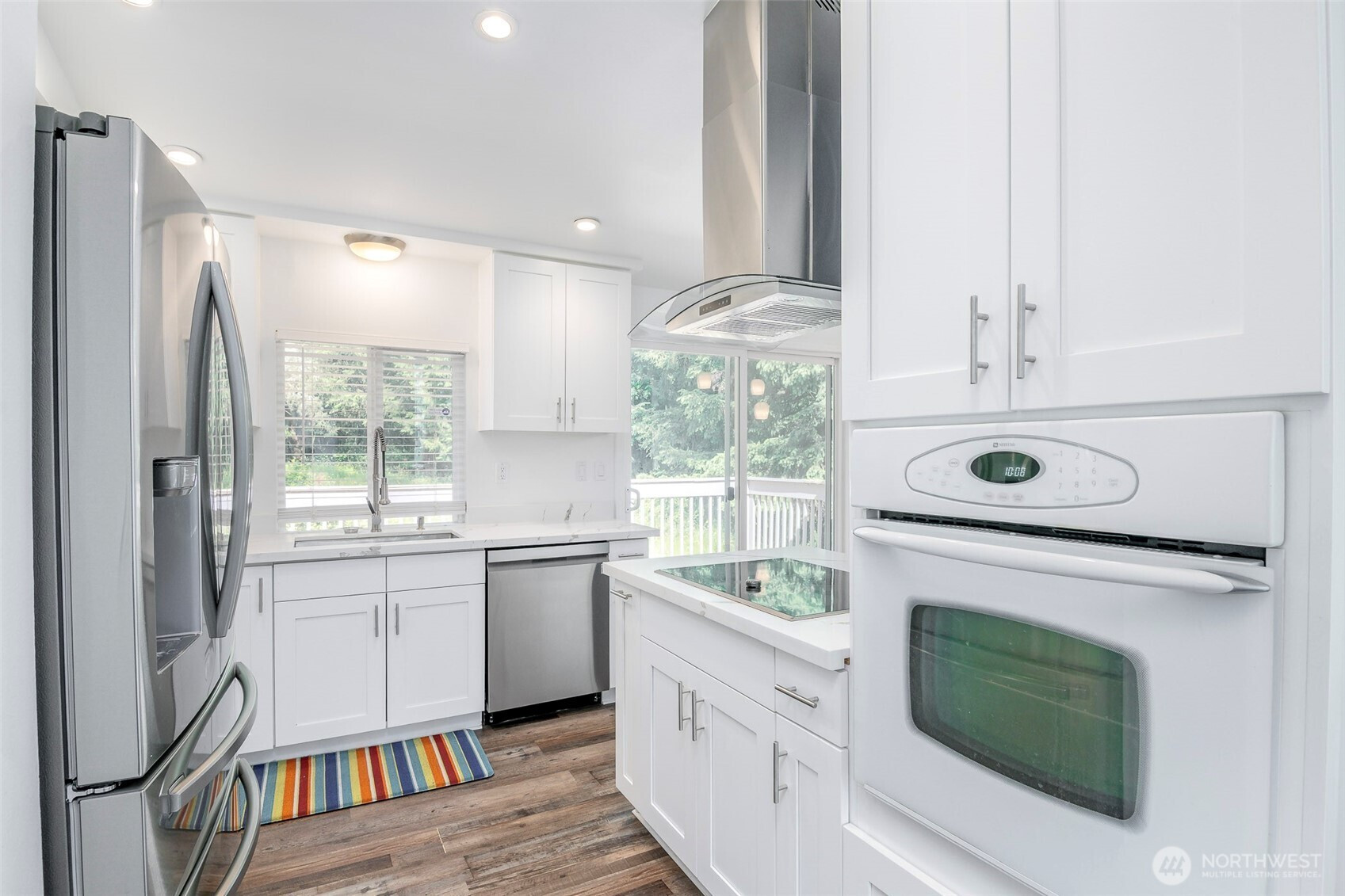 (503) 893-8874Nestled on a private lot, just shy of an acre in desirable Springbrook, this beautifully renovated 3-bed 2.75-bath home offers modern comfort amid stunning natural surroundings. Contemporary kitchen feat. quartz countertops, luxury laminate flooring flows through vaulted-ceiling living spaces. Bay window overlooks landscaped gardens & expansive decks provide perfect outdoor entertaining space. Oversized 2-car garage, generator wiring, heat pump w/ A/C, & wood-burning fireplaces. Exceptional location offers mountain views & dark skies ideal for stargazing—owners enjoyed northern lights from the deck. Wildlife abounds w/nesting eagles, nearby Soos Creek & protected Panther Lake. A rare opportunity combining modern living w/PNW natural beauty.