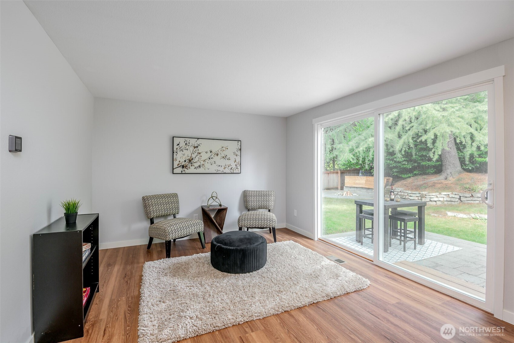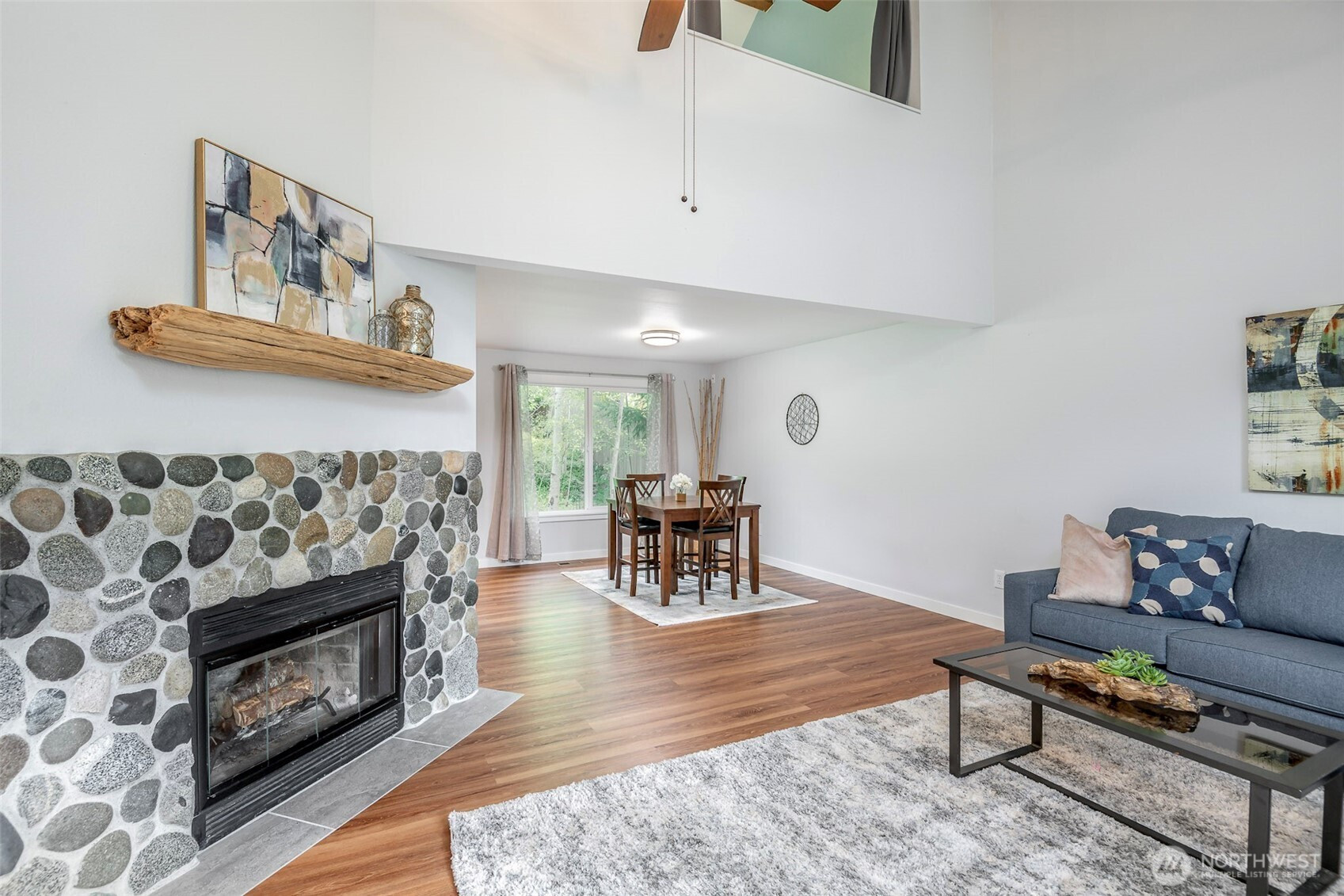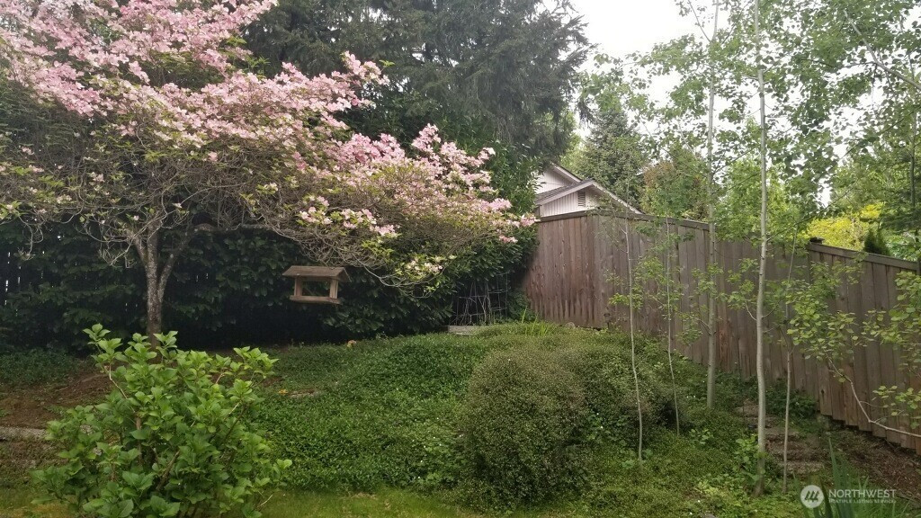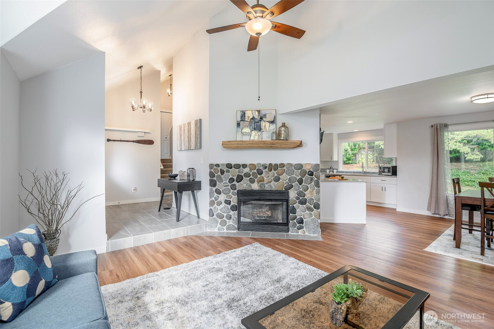 A Pacific NW gem nestled up off the street on a spacious corner lot awaits! This uniquely designed multi-level home offers 3 bedrooms and 2.5 baths. Thoughtfully updated throughout, you'll love the vaulted ceilings, river rock fireplace, new flooring, heated floor in the primary bath, and ample storage this home has to offer. Step outside to your private backyard oasis, where mature landscaping bursts with multi-seasonal blooms creating an ever-changing natural retreat. Whether you're roasting marshmallows around the firepit on the custom cedar bench, entertaining on the patio, picking raspberries, or simply enjoying the tranquil atmosphere, you'll feel a world away while being minutes from shopping, dining, and much more! Motivated seller!