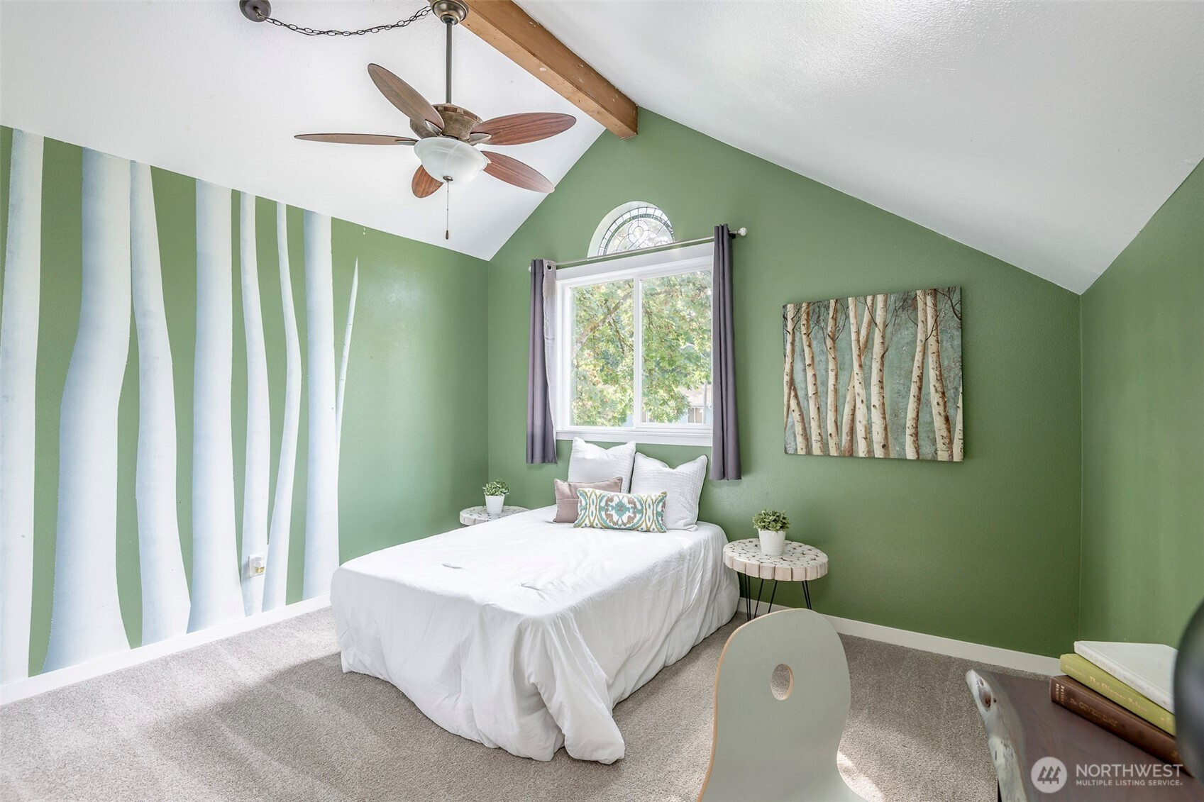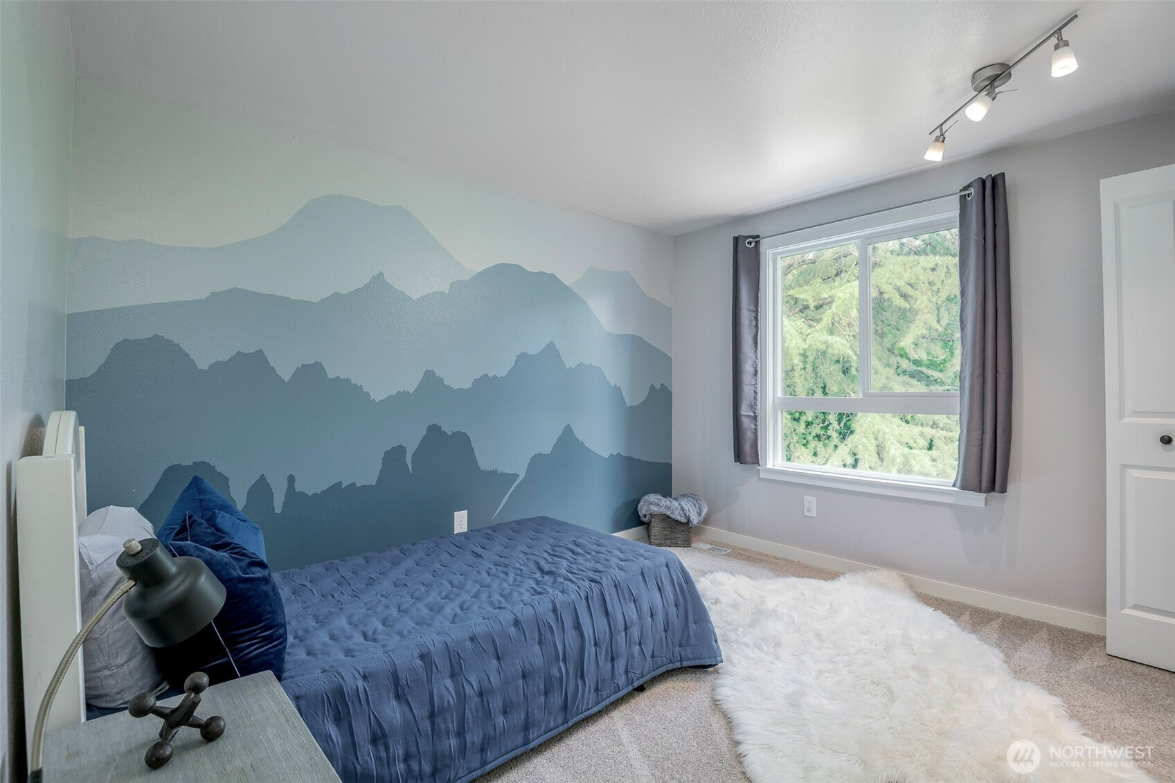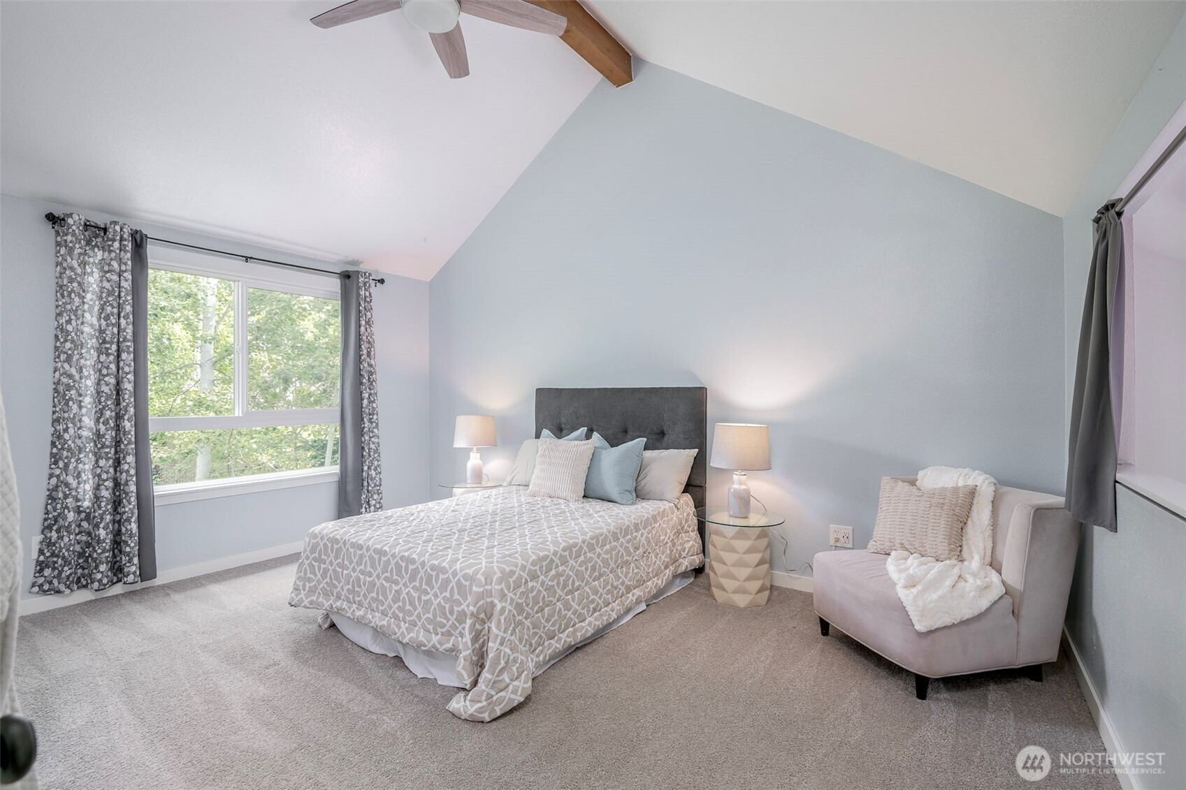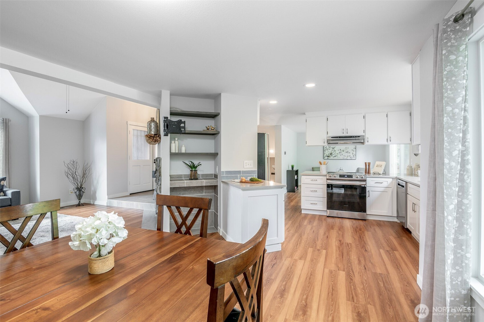 A Pacific NW gem nestled up off the street on a spacious corner lot awaits! This uniquely designed multi-level home offers 3 bedrooms and 2.5 baths. Thoughtfully updated throughout, you'll love the vaulted ceilings, river rock fireplace, new flooring, heated floor in the primary bath, and ample storage this home has to offer. Step outside to your private backyard oasis, where mature landscaping bursts with multi-seasonal blooms creating an ever-changing natural retreat. Whether you're roasting marshmallows around the firepit on the custom cedar bench, entertaining on the patio, picking raspberries, or simply enjoying the tranquil atmosphere, you'll feel a world away while being minutes from shopping, dining, and much more! Motivated seller!