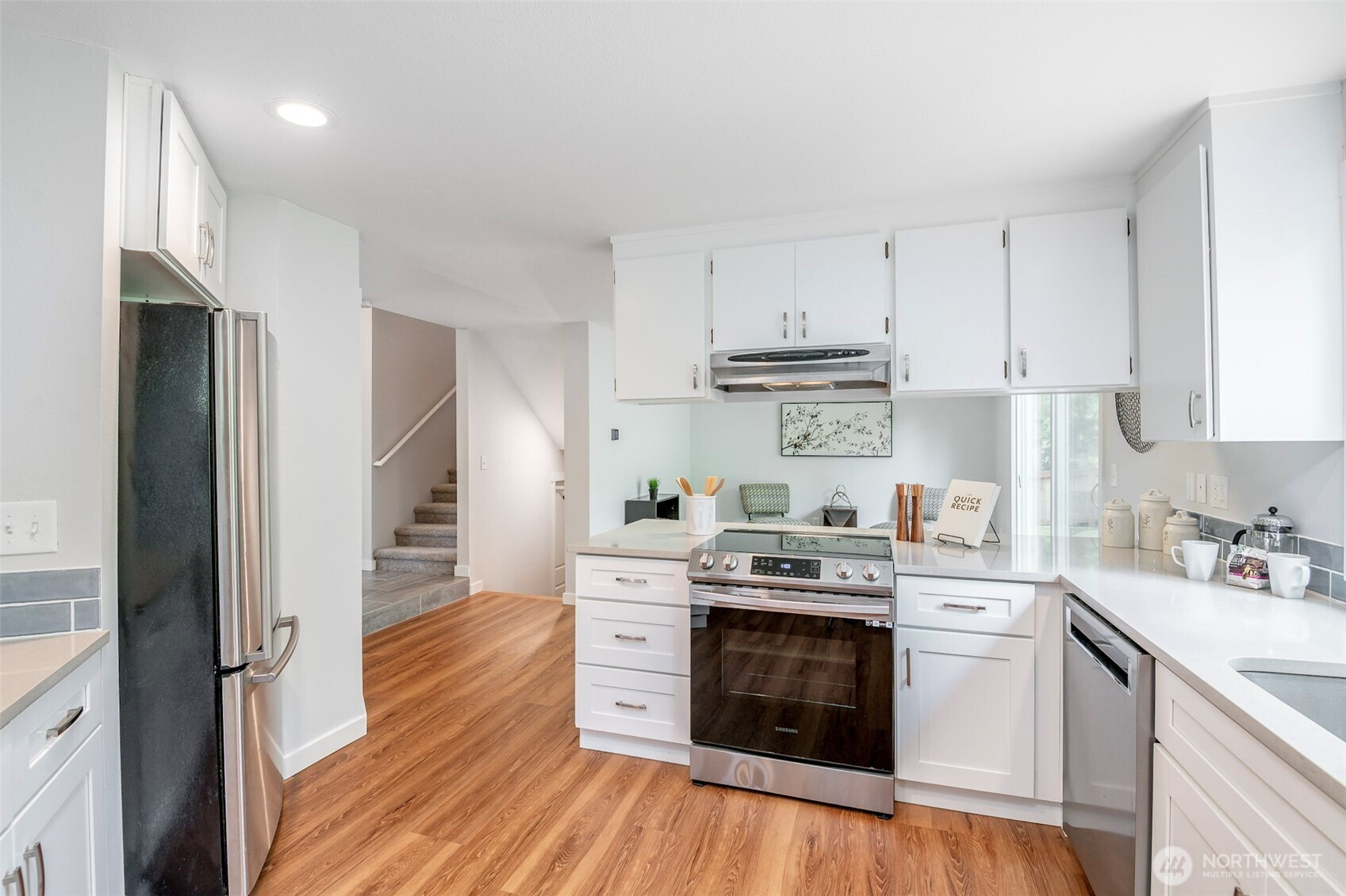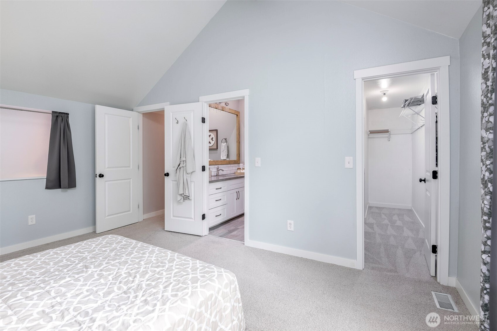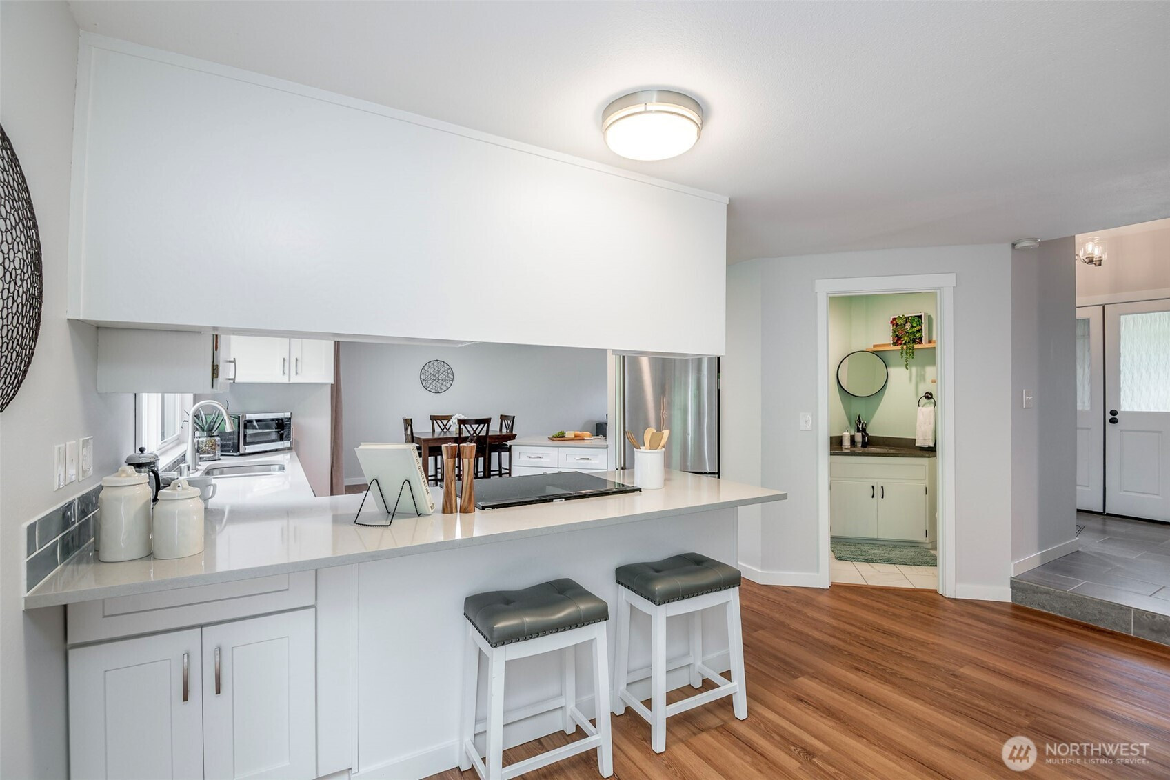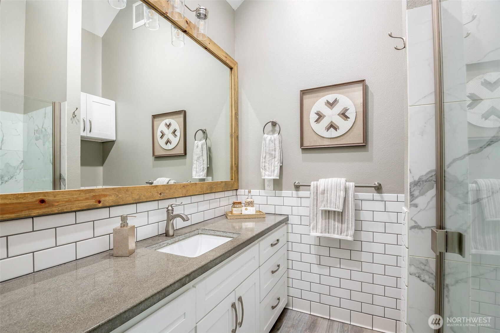 A Pacific NW gem nestled up off the street on a spacious corner lot awaits! This uniquely designed multi-level home offers 3 bedrooms and 2.5 baths. Thoughtfully updated throughout, you'll love the vaulted ceilings, river rock fireplace, new flooring, heated floor in the primary bath, and ample storage this home has to offer. Step outside to your private backyard oasis, where mature landscaping bursts with multi-seasonal blooms creating an ever-changing natural retreat. Whether you're roasting marshmallows around the firepit on the custom cedar bench, entertaining on the patio, picking raspberries, or simply enjoying the tranquil atmosphere, you'll feel a world away while being minutes from shopping, dining, and much more! Motivated seller!