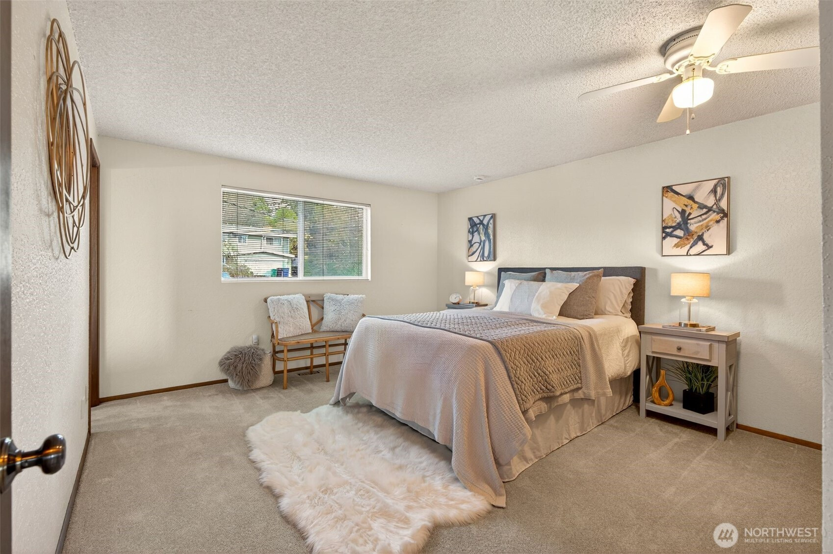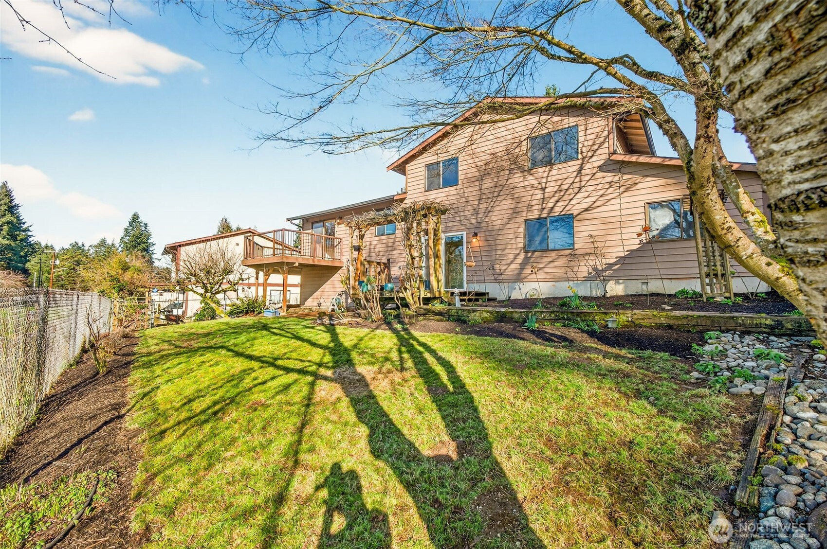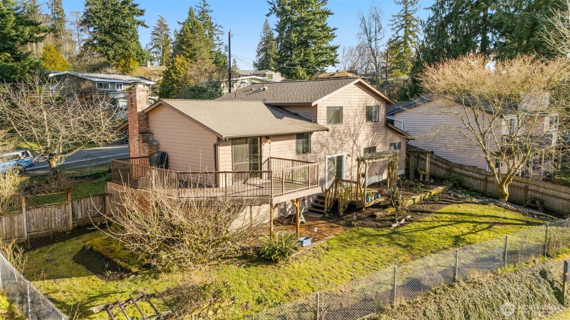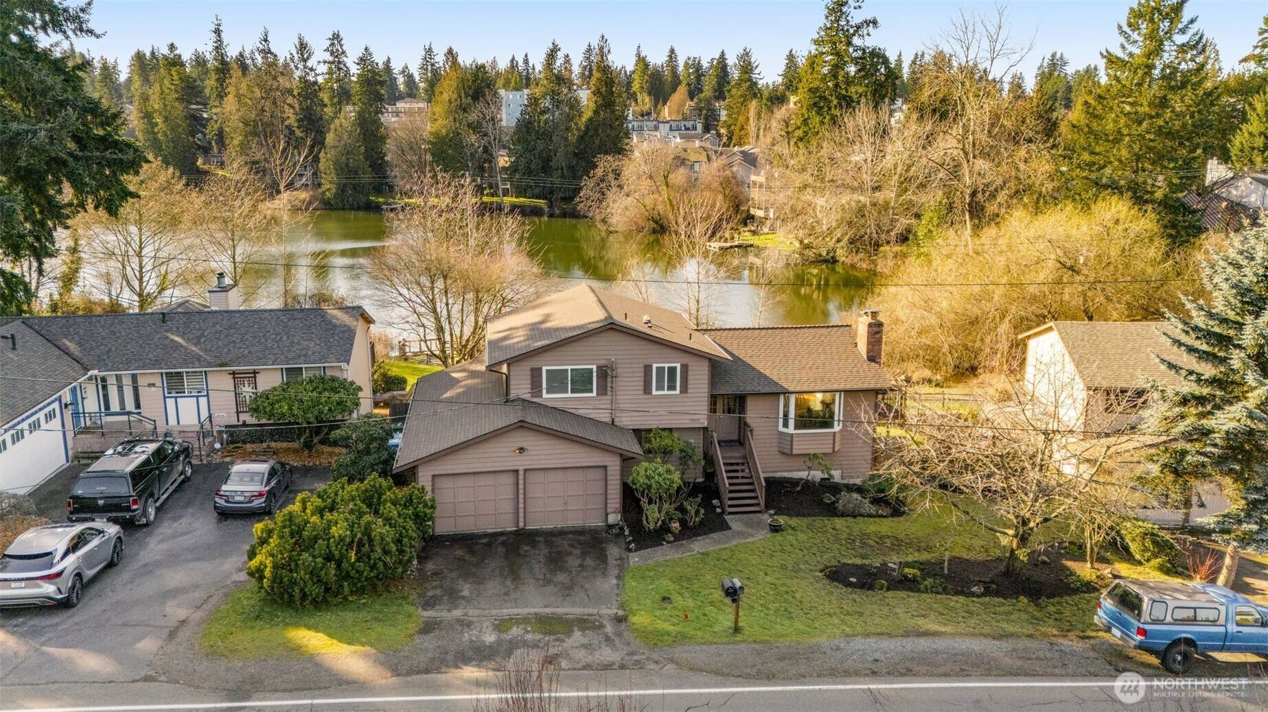 What a view! This charming home overlooking Echo Lake and the Interurban Trail is perfectly timed for spring and summer enjoyment. Step into the bright main level featuring an inviting living room, kitchen, and dining area—with beautiful views and access to a large deck overlooking the lake and trail. Upstairs offers three bedrooms, including a spacious primary suite with an ensuite bath, plus an additional full bathroom. The lower level features a generous bonus/family room with sliding doors leading to a fully fenced yard with direct trail and lake access, along with a laundry room and half bath. Enjoy open, light-filled spaces throughout, a 2-car garage, and extra shop space. Lovingly maintained by the original owners, this home is ready for its next chapter. New roof! Conveniently located near shops, restaurants, parks, and schools—don’t miss it.