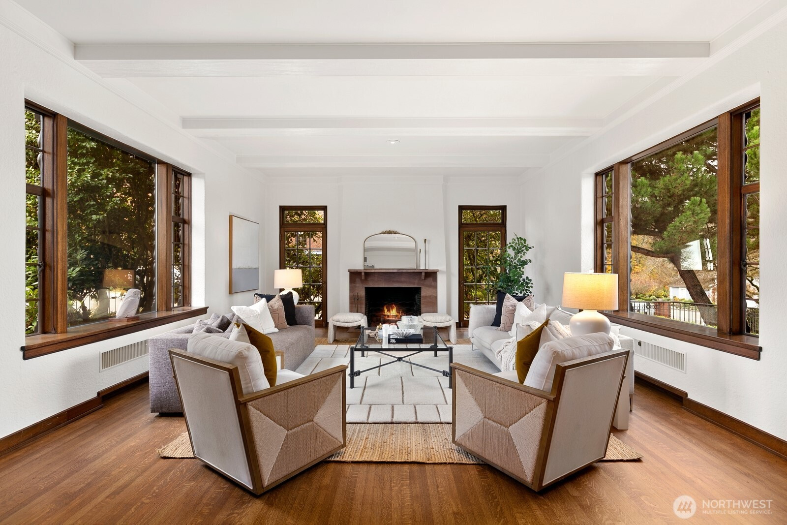 (503) 893-8874Discover the timeless elegance of this 1928 Tudor grande dame in Broadmoor's exclusive gated community. Step inside to experience the warmth of Siberian Oak floors throughout, leading to an elegant iron and oak staircase that serves as a stunning focal point. The inviting ambience is enhanced by a beautifully crafted leaded glass oriel window that bathes the space in natural light. The main level boasts a large living sunken room and dining room enhanced by a crystal chandelier. home office with a charming Tudor balcony overlooking the gardens. Gorgeous oak doors and detailed woodwork reflect the craftsmanship of the era, while the exterior showcases a captivating mix of brick and slate. Experience the allure of this architectural gem!