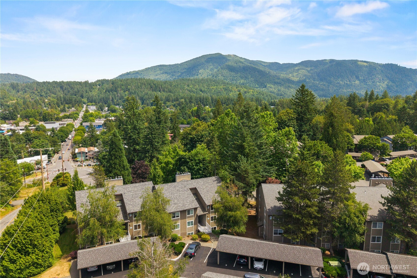 Move-in ready, East facing Ridgebrook condo in historic Gilman Village. Accessible, one-level unit offers 1,262 sq ft w/2 beds, 2 full baths, & spacious flex room (perfect for WFH, gym, or 3rd bed). Enjoy treetop & territorial views from covered balcony. Featuring well-appointed kitchen w/granite counters, spacious living w/fireplace, & separate laundry room. Amenities include pool, EV charging, & dedicated covered parking spot directly in front for no-stairs access. Walkable to historic area, Issaquah Community Center, Tiger Mountain, Poo Poo Point, Front street shops, dining, & the Library. Pre-inspected w/well-managed HOA covering Common Area Maintenance, Earthquake Ins., Garbage, Sewer, & Water! Enjoy easy access to I-90, 405, or HWY 18