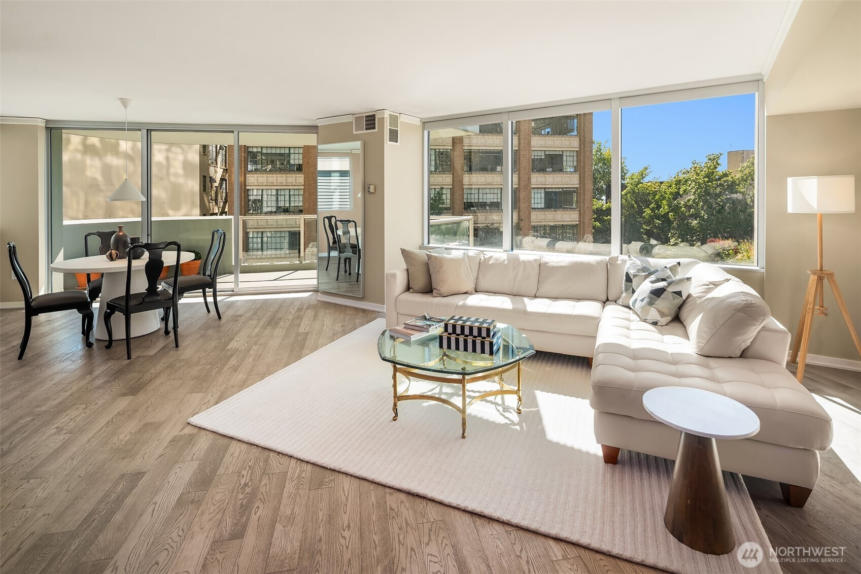Effortless living in the city. This luxurious two-bedroom / two-bath light-filled home, of nearly 1,600 sq ft plus large balcony is located adjacent to Seattle’s World-Famous Pike Place Market and just steps to local producers, iconic restaurants, the Overlook Walk, the new Waterfront Park, and the Aquarium. Designer upgrades include Carrara Marble countertops, Fisher and Paykel appliances, Sub-Zero, engineered hardwoods, sun-shades, a five-piece en-suite primary bath, walk-in closet, second bedroom with additional full bath & washer/dryer. Parking included. Furniture may be negotiable. 24-hour door staff, pool, gym, spa & indoor/outdoor amenities space.