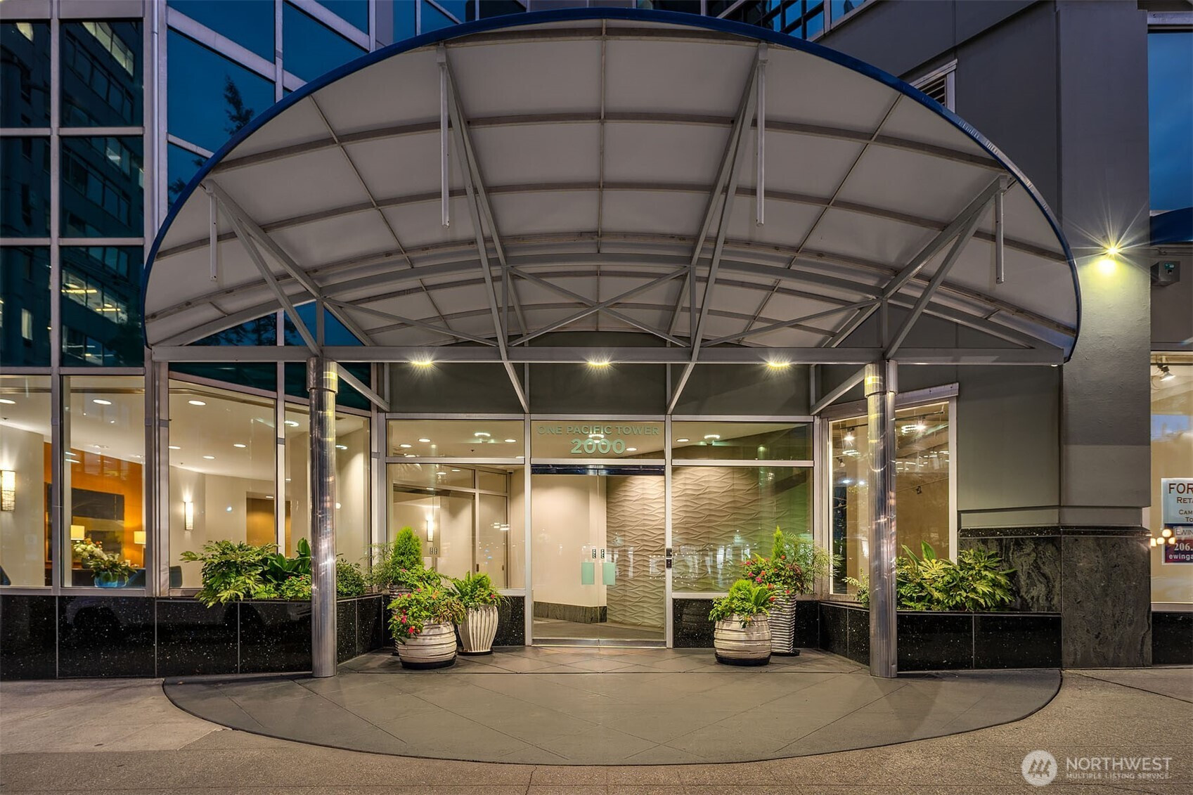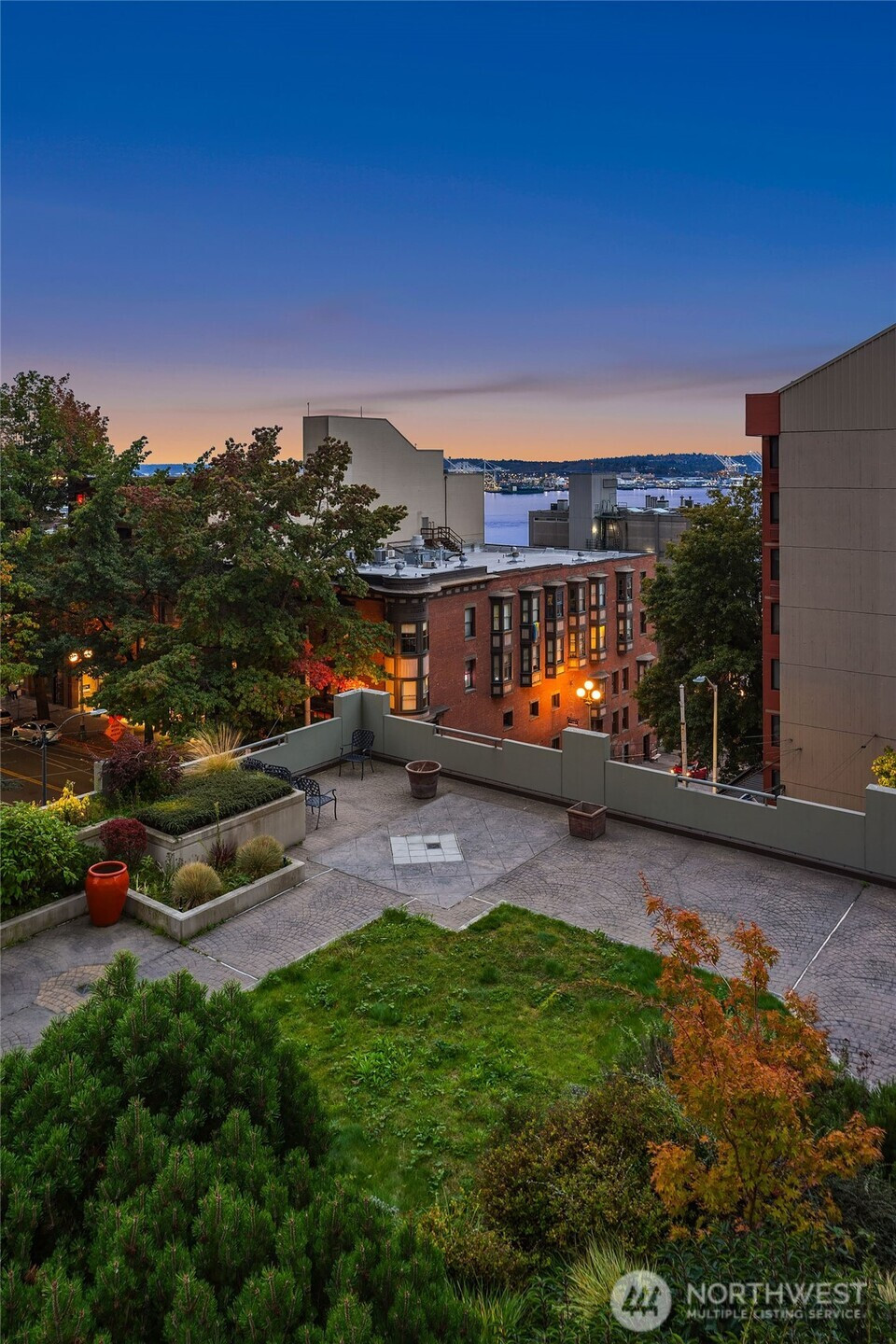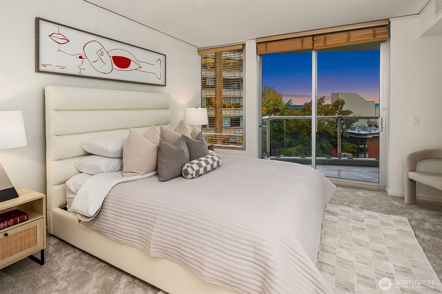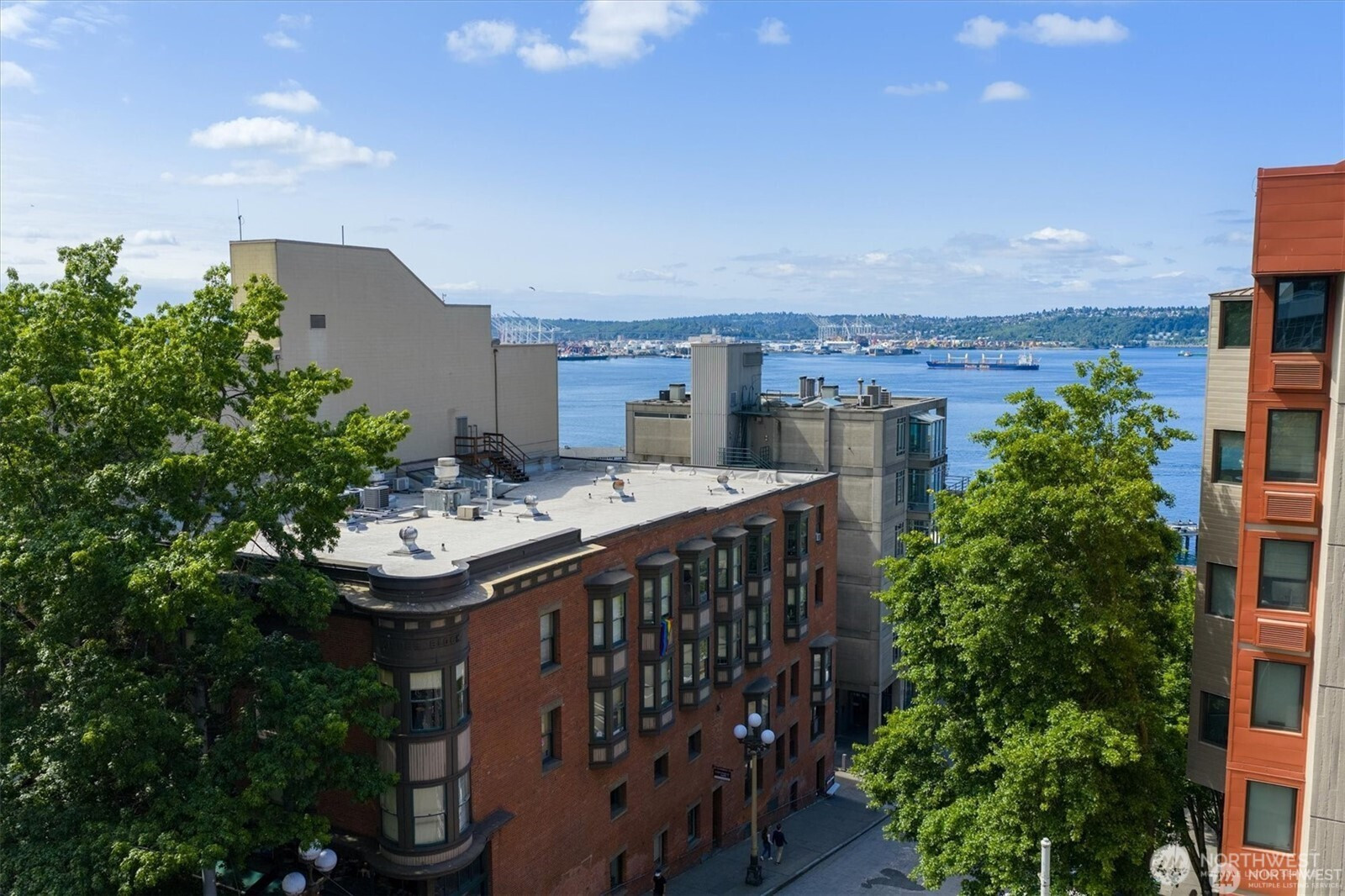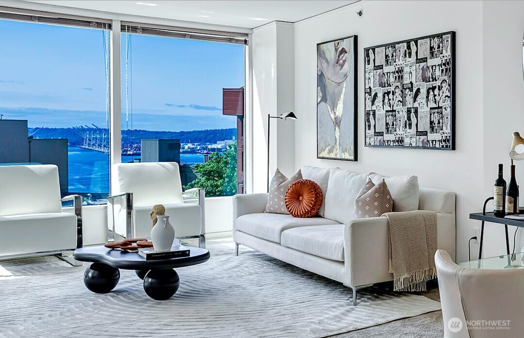 Incredible value in Downtown Seattle, steps to Pike Pace Market & the revamped waterfront! Spacious 1BR+DEN, which could double as a 2nd BR w/ its own bath. This SW-facing home is drenched in natural light through oversized windows framing tranquil views of the garden terrace & protected views of Elliott Bay, visible from both main room & bedroom. Features incl. Central A/C, newly refinished patio, Sub-Zero fridge, granite kitchen counters/floors, fresh paint/carpet, limestone entry. Versatile den w/pocket doors doubles as guest room/flex space. Primary BR offers full en-suite bath + separate 3/4 bath for guests. Amenities: 24/7concierge, indoor pool/spa, gym, event room, view terrace. Garage parking. No rental cap & well-managed building!
