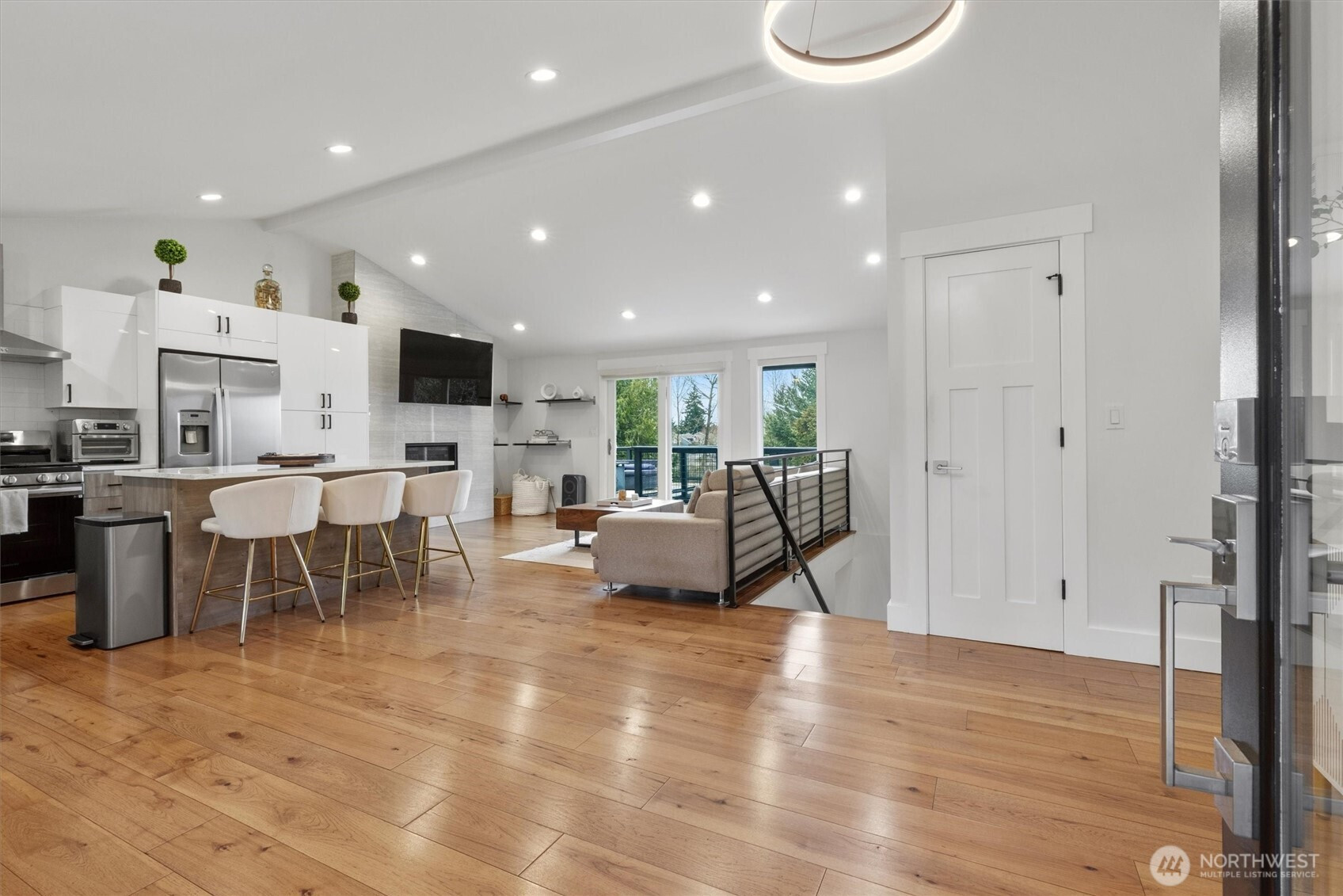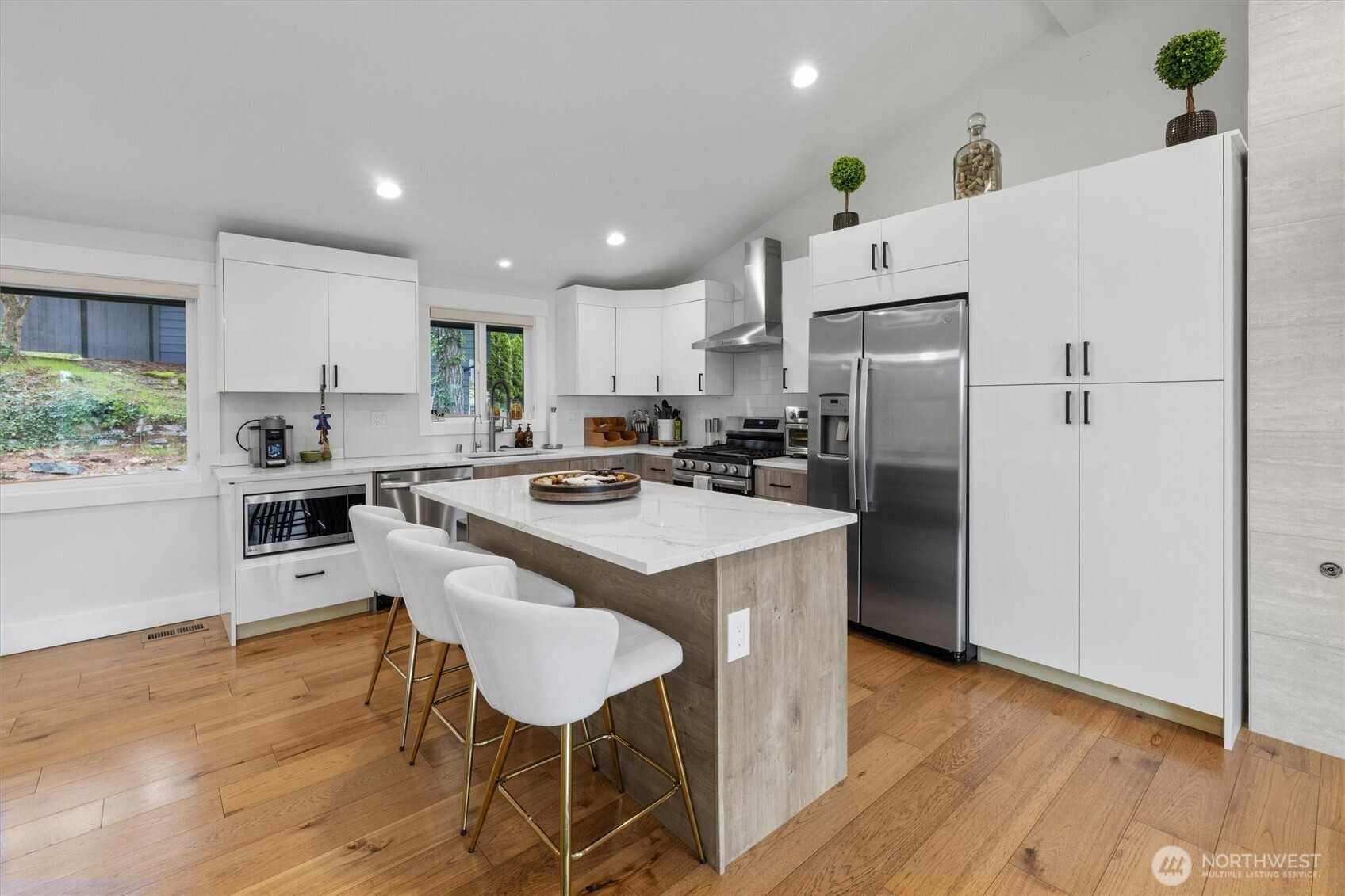 Experience refined living in this fully reimagined Upper Kennydale residence. A comprehensive 2022 renovation delivers modern luxury with lasting structural integrity — including a new roof, new siding, and a high-efficiency heating and cooling system. The thoughtfully designed 4-bedroom, 3-bathroom floor plan offers generous proportions throughout, with luxury plank floors anchoring each room in warmth and continuity. The kitchen is appointed with stainless steel appliances, two tone cabinetry, and finished with clean, contemporary detailing. Elevated indoor-outdoor living defines the home's most distinctive feature: a large, elevated deck positioned to accommodate generous entertaining and al fresco gatherings. Its scale and elevated position make it an exceptional venue for hosting, from intimate dinners to larger social occasions. Located in the sought-after Kennydale neighborhood, the property sits approximately 13 minutes from downtown Bellevue, offering convenient access to the Eastside's premier employment, dining, and retail destinations.