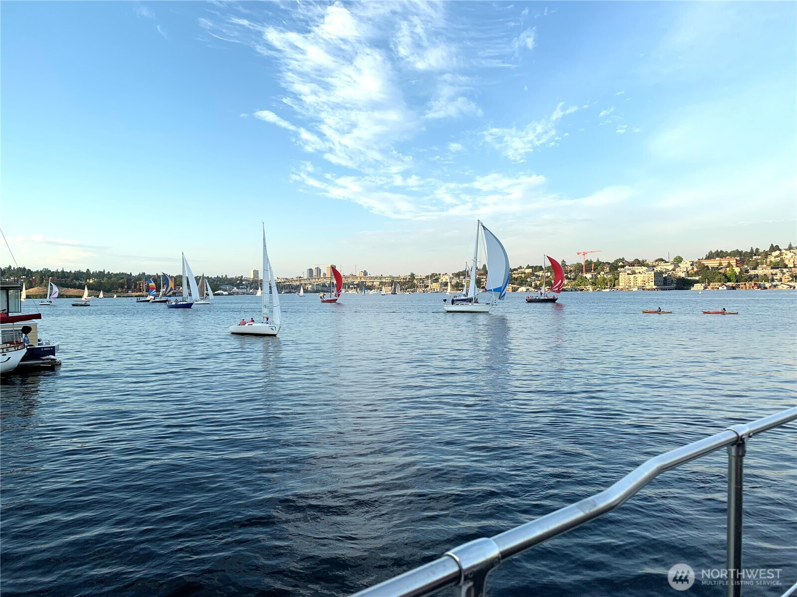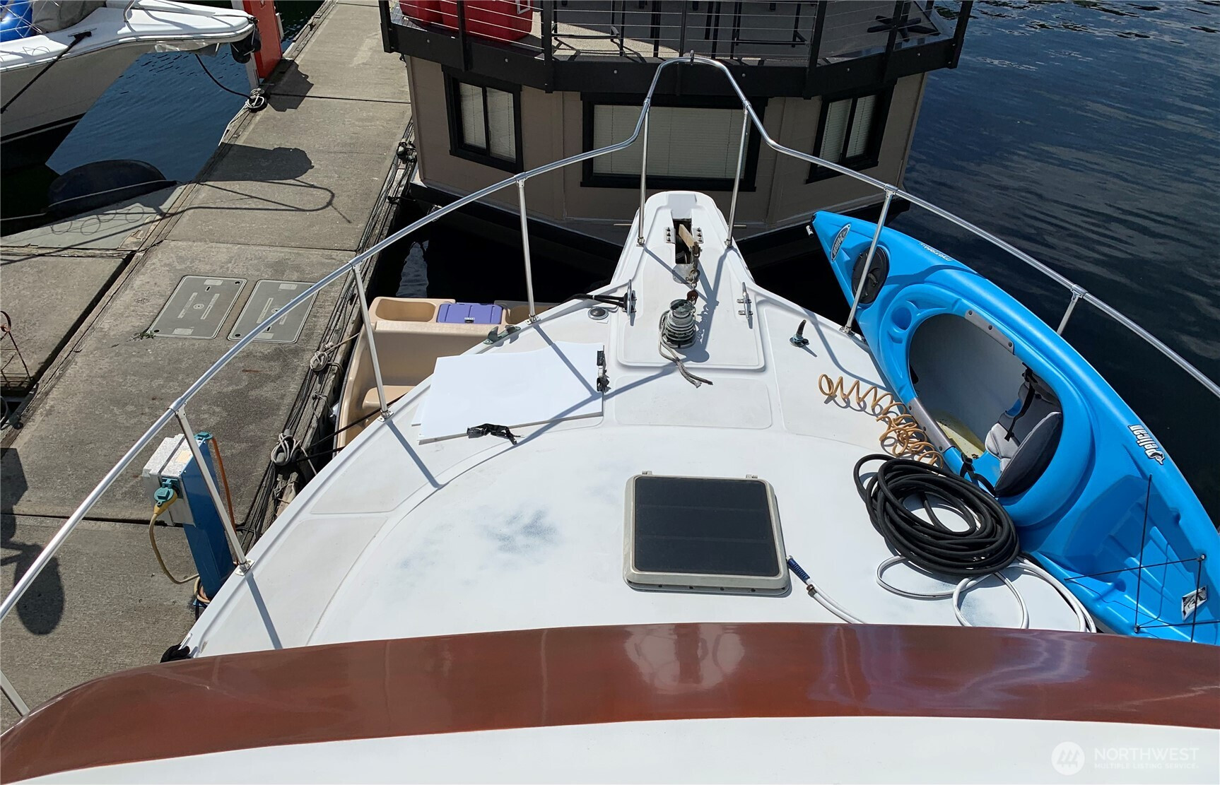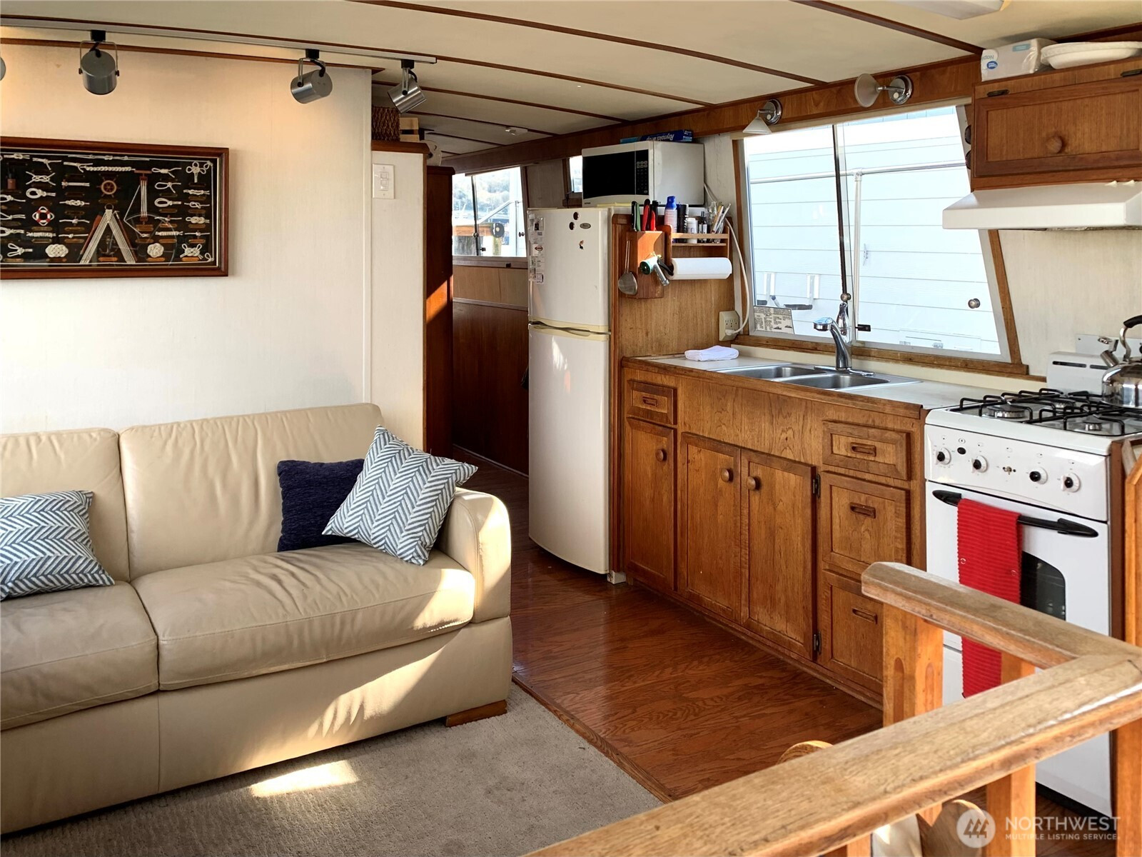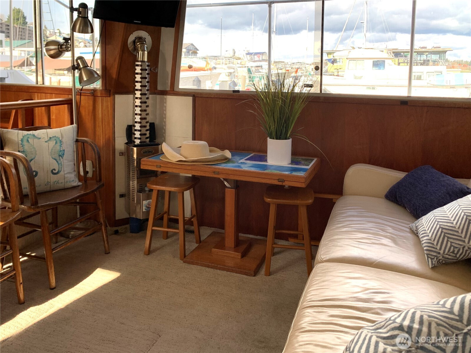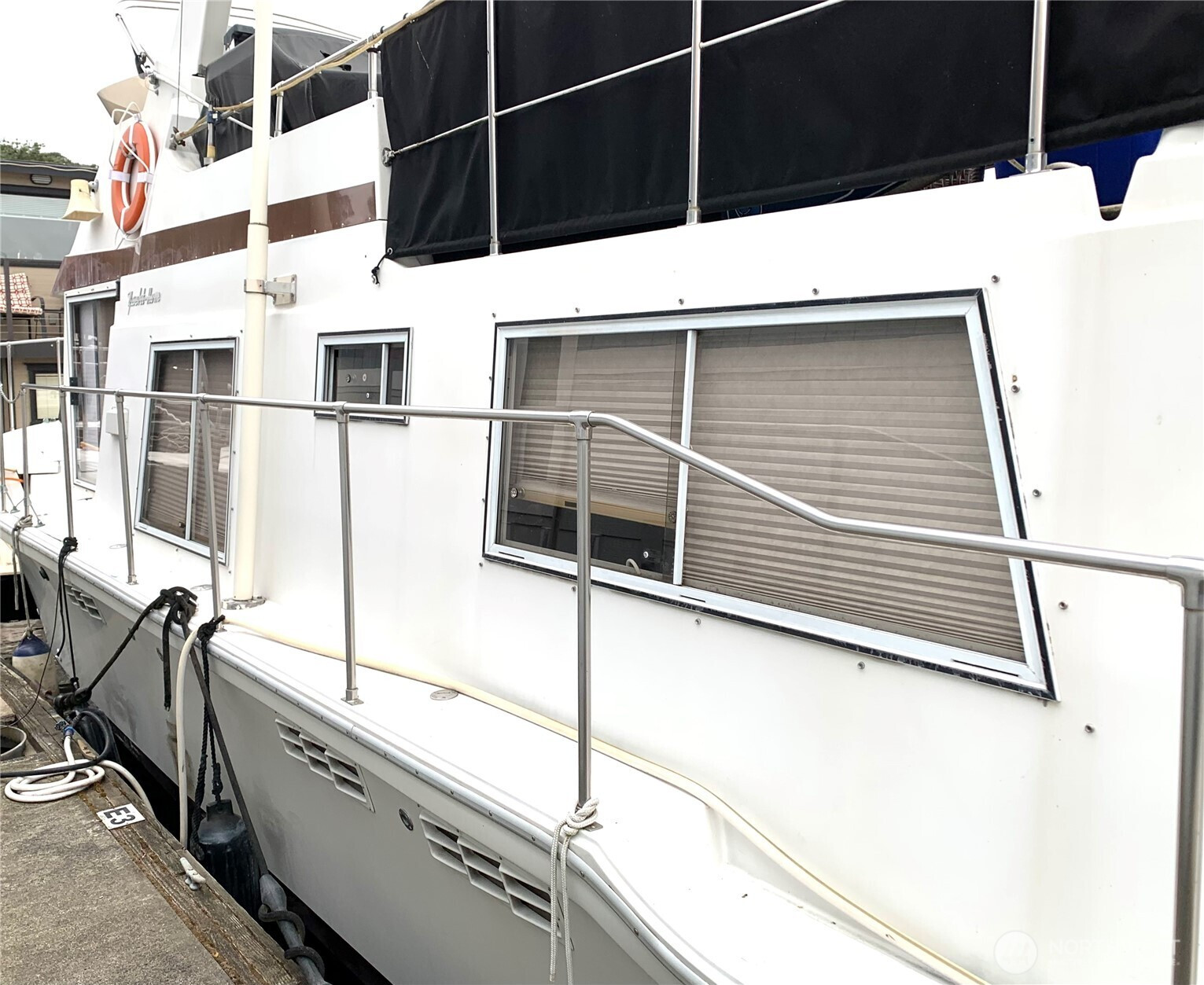 BEST VIEW on LAKE UNION -- This 45-foot live-a-board Uniflite Yacht-Home has the best location on the lake – a panoramic view to the east on an end moorage – runabouts, paddleboards, rowers, kayaks, seaplanes, Tuesday Duck Dodge, Independence Day fireworks are all just off the stern deck. This craft also features a large outdoor upper deck with barbeque and furniture and an even better 360 degree views from the Space Needle to Gasworks Park. Large separate main bedroom with queen bed, TV, spacious closets, reading lamps and separate bath with large shower. Up front is a spacious twin V-berth and bath with shower available, The main salon offers a leather sofa-hide-a-bed, large kitchen, pantry, spacious cabinets, double sink, full refrigerator, propane range/oven, TV and diesel heater. The cabin has central heating or wall heaters in salon, bath and bedroom. Sliding salon doors for access on port and starboard sides. Plenty of bow and under-floor storage and spare gear. Twin Caterpillar 3208 inboards and adjacent equipment just thoroughly serviced and upgraded, bilge pumps fore and aft, diesel AC generator, Full lines and docking gear. Livingston dinghy included. FOWR is pending; Parking permit Zone 25 by annual fee; Assumable moorage lease includes water and garbage. Internet w/Atlas; various TV options; 60 amp electric service. Full live-a-board moorage lease; short term rental not authorized. Owner/agent