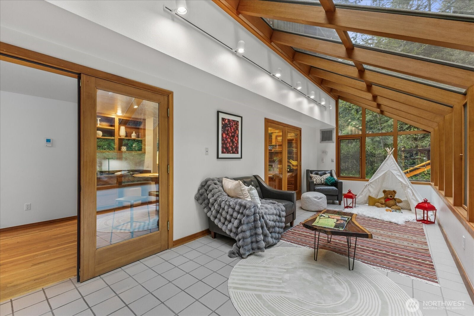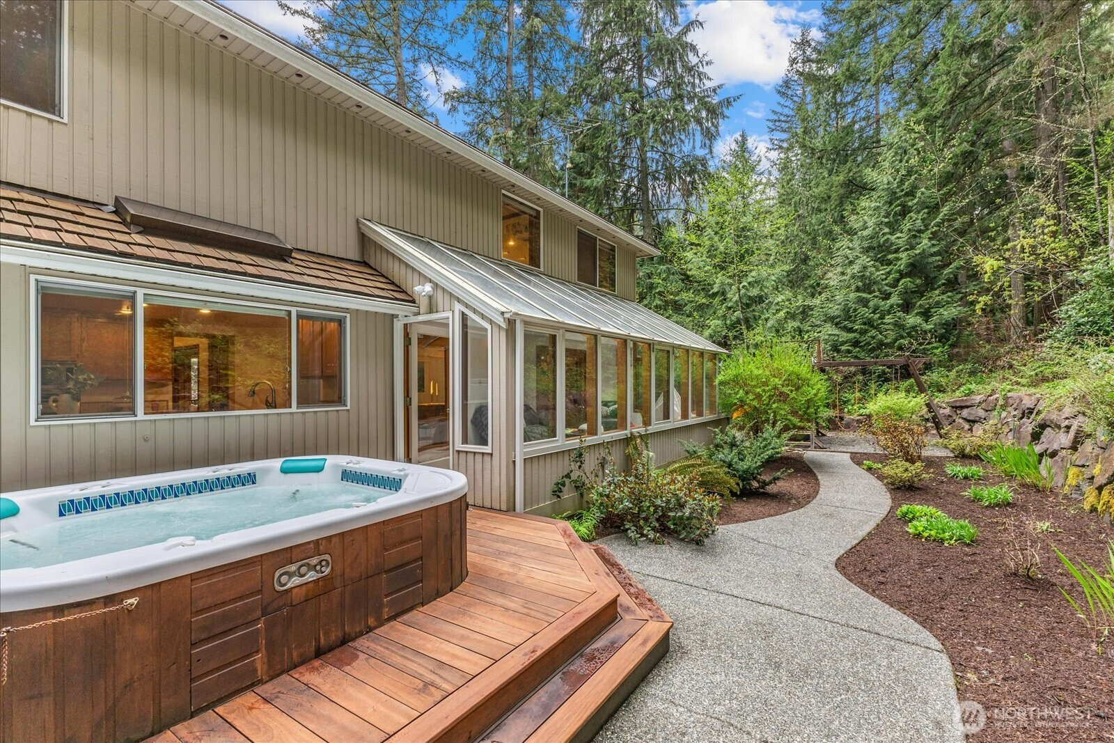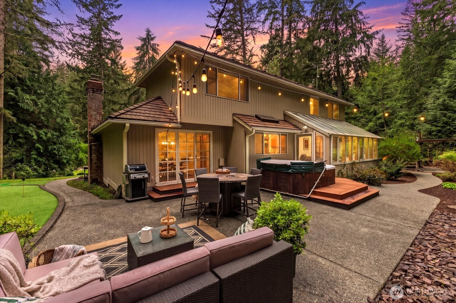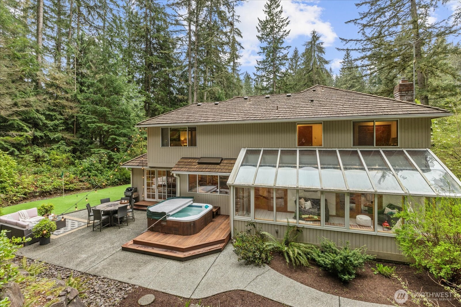 Beautifully maintained home in Woodinville’s desirable Reintree neighborhood, offering exceptional privacy w/forest views & no neighbors behind. The kitchen features solid oak cabinetry, abundant storage, hardwood floors, tiled backsplash, stainless steel appliances, a welcoming island, & a built in desk/seating area. The formal living room impresses w/vaulted ceilings, a chandelier, & a wood burning fireplace, while the dining room accommodates large gatherings. A main floor office w/French doors & a sunroom w/heated floors provide flexible year round living. The great room includes custom cabinetry & a Vermont Castings gas stove. Upstairs, the spacious primary suite showcases a renovated bathroom w/gorgeous finishes & a cast iron tub. Two additional bedrooms & a bonus room offer versatility for guests, office, etc. The updated mudroom includes custom cabinetry, quartz counters, & washer/dryer. Outdoor living shines w/a redwood deck, hot tub, forest facing lounge area w/included furniture, putting green, large lawn, play structure, & irrigation. Oversized garage w/storage, and RV/boat parking. Additional features include AC, high efficiency furnace, Tesla charger, generator, solid oak flooring, smart lighting, serviced cedar roof, no HOA, & Top Rated Northshore schools. Seller procured inspection available. Located near Woodinville’s best biking, walking, & horseback riding trails, this home offers the perfect balance of privacy, comfort, and outdoor lifestyle.