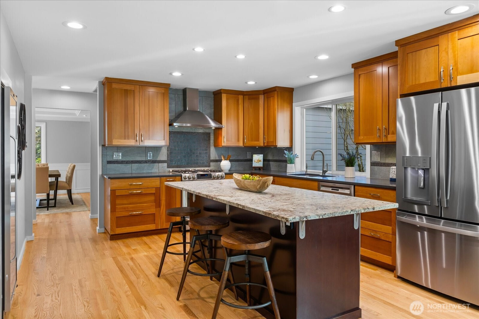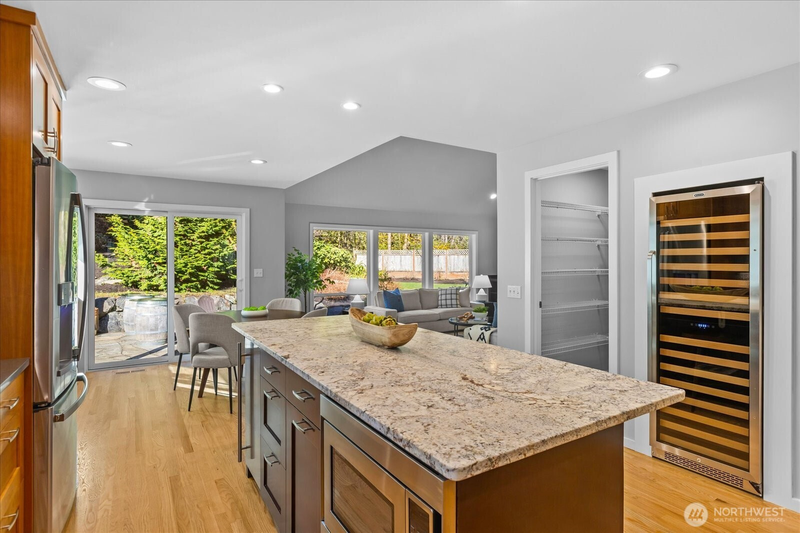 Situated on a shy ¾ acre in coveted Paradise Lake Estates, this refined residence offers an exceptional blend of privacy, space, and everyday luxury. The park-like backyard is a true showpiece, featuring a sport court, space to garden, lush lawn, wooded areas, and wiring in place for a future hot tub. Ideal for entertaining, play, or quiet outdoor enjoyment. Inside, newly refinished hardwood floors, fresh interior paint, crisp new trim, and a refreshed guest bath create a timeless, move-in-ready feel. The open-concept kitchen is the heart of the home, thoughtfully designed with striking finishes, generous storage, an oversized island, buffet bar, dual-zone 164-bottle wine refrigerator, and a plumbed U-Line ice maker. The kitchen flows seamlessly into the main living area, creating an ideal setting for both everyday living and hosting. The main-floor primary suite offers a private retreat with French doors opening to the serene backyard, an oversized walk-in closet, and an updated bath. Upstairs, enjoy a spacious bonus room with built-ins, three additional bedrooms, and abundant storage throughout. Comfort and functionality are enhanced with air conditioning and an upgraded gas water heater paired with recirculation system for faster hot water delivery. An oversized heated three-car garage provides ample room for vehicles, storage, and hobbies. Ideally located near Woodinville wineries, scenic trails, local shopping, and top-rated Northshore schools. Welcome home!