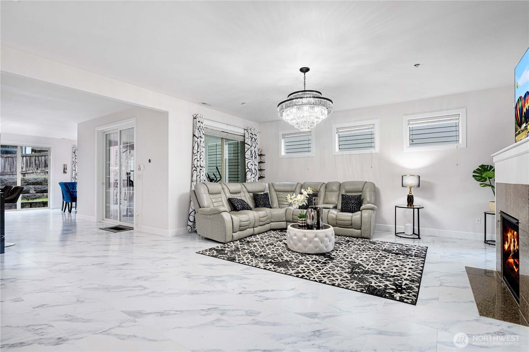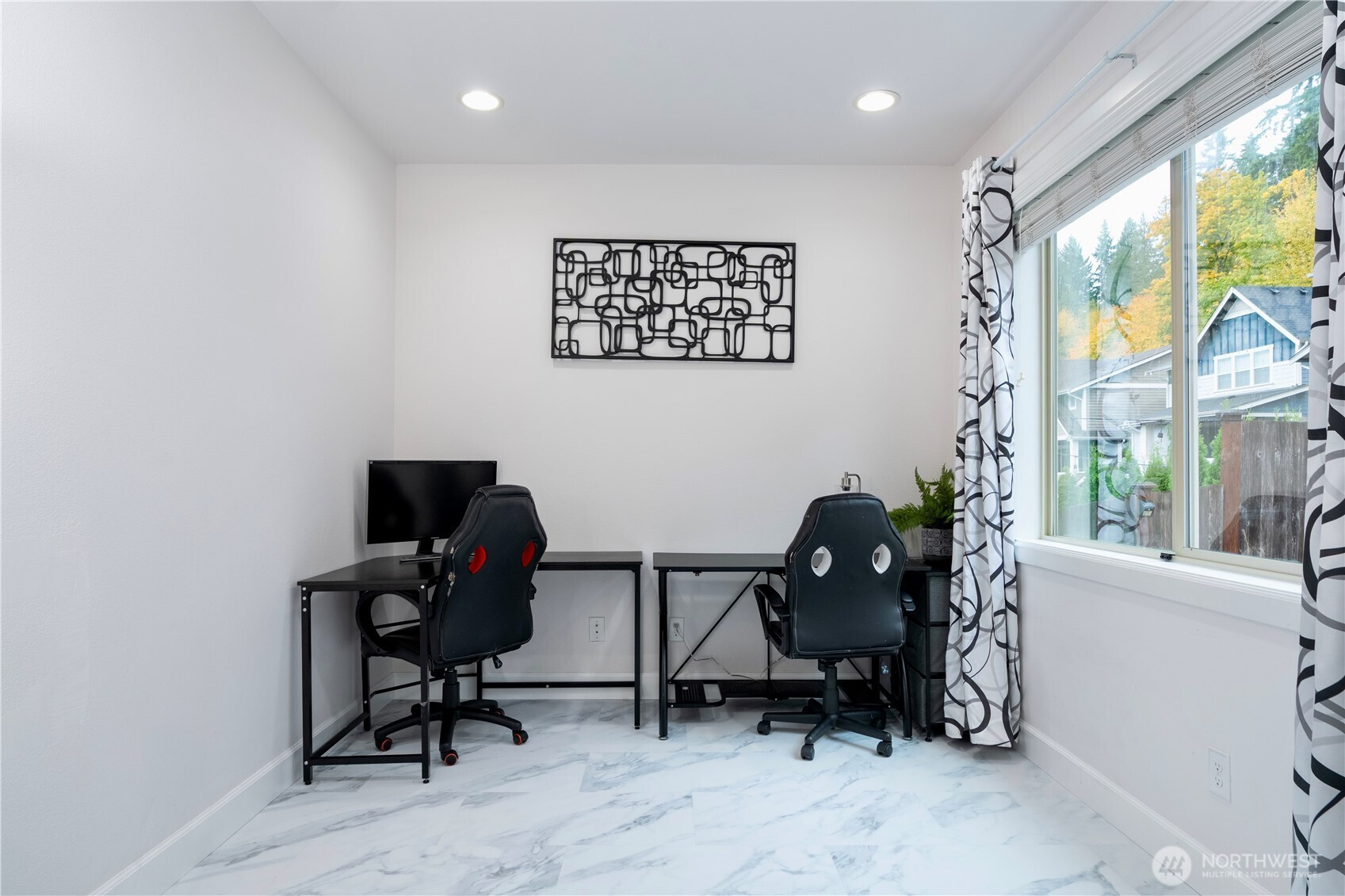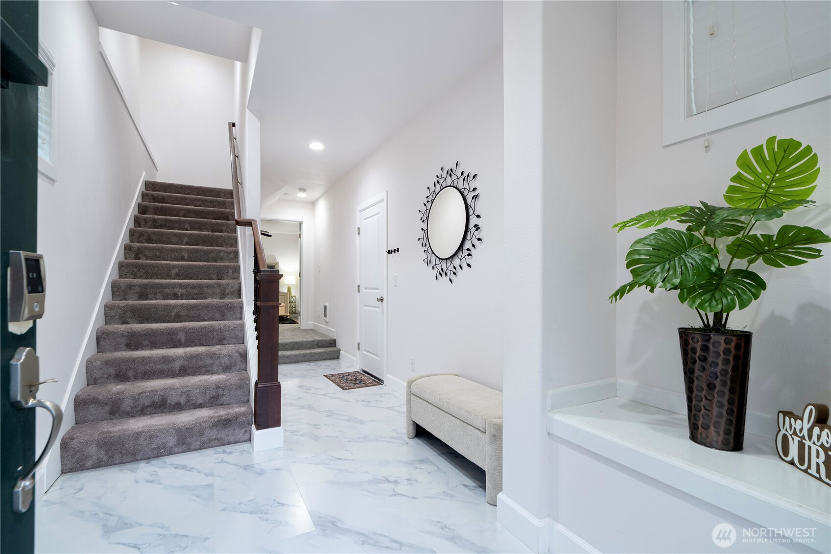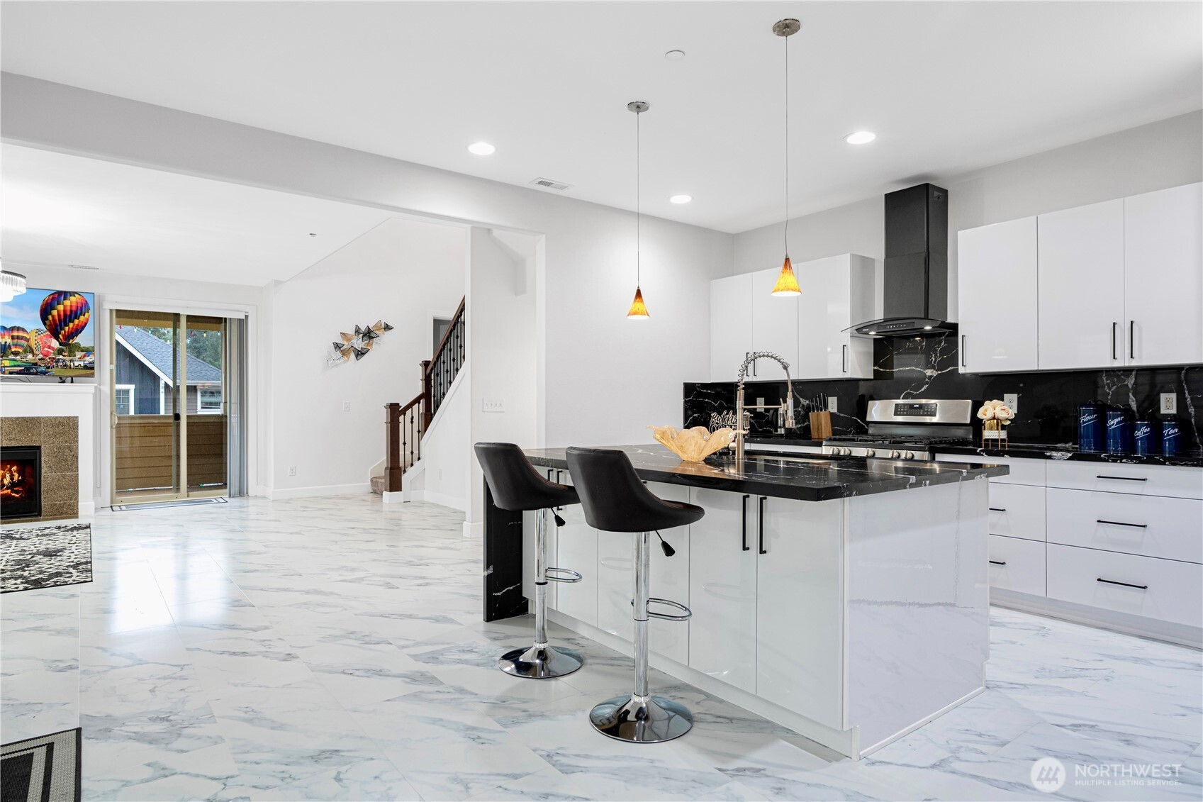 Prime Bothell location! This beautifully maintained 4-bedroom + loft + den, 3.25-bath home offers 2,778 sq ft of thoughtfully designed living space, providing privacy, space, and modern comfort. The bright open great room is filled with natural light and flows seamlessly to multiple outdoor living areas, including a generous second-floor balcony off the living room, perfect for relaxing or entertaining. The upgraded kitchen features gas cooking, stainless steel appliances, a large island with seating, and a walk-in pantry, along with a new refrigerator and range, ideal for everyday living and hosting. A main-floor guest suite with a walk-in closet and full bath provides excellent flexibility for visitors or multi-generational living. Upstairs you'll find a spacious loft and den, perfect for a home office, study, or media space. The private primary suite features vaulted ceilings, an en-suite bath, and a large walk-in closet, creating a comfortable retreat. Recent updates include new carpet, vinyl flooring, refreshed kitchen and bathroom finishes, new washer and dryer, and a sunroom overlooking the fully fenced backyard. Additional highlights include air conditioning, elegant wrought-iron railings, wide staircases, and a neighborhood playground. Conveniently located near I-405 and I-5, shopping, dining, parks, and everyday amenities, and within the desirable Northshore School District.