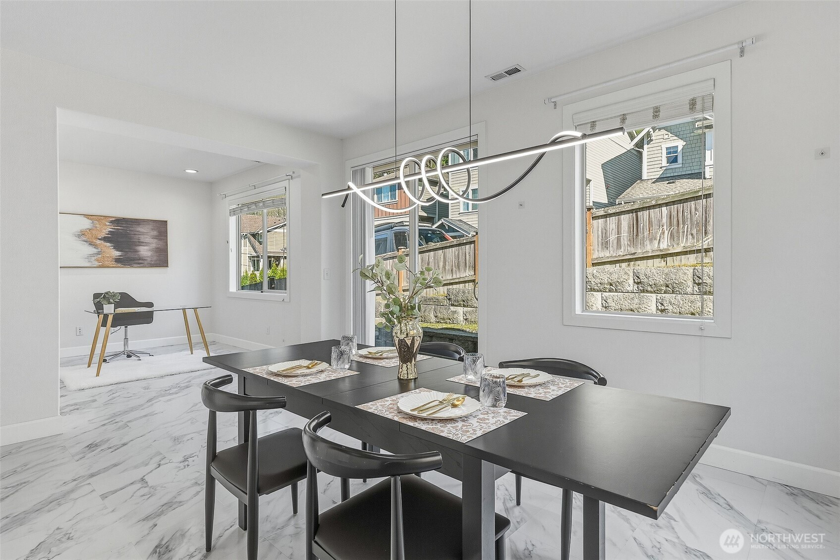 Discover the pinnacle of modern sophistication in a residence perfectly positioned between the vibrant energy of Downtown Bothell and the serene trails of Landing Park. This masterfully reimagined interior embraces a bright airy design language where natural light floods through an expanded sunroom to illuminate a contemporary layout designed for both grand entertaining and quiet retreat. At the heart of the home a designer chefs kitchen serves as a social centerpiece, featuring an oversized entertaining island and custom cabinetry that flows effortlessly into the living spaces. Step outside to a private balcony a cozy year-round sanctuary for morning coffee or evening relaxation. The primary retreat offers a true escape, featuring vaulted ceilings and a newly renovated bath adorned with high-end modern finishes. Versatility is woven into every level from the secluded first-floor suite with its own private bath ideal for guests or multi-generational living to the dedicated upper-level office and loft space. Enjoy the year-round comfort of central A/C and the peace of mind of a meticulously maintained move-in-ready sanctuary. Located within the award-winning Northshore School District and offering a seamless commute to Redmond Bellevue or Seattle this property offers a rare blend of walkable urban living and established neighborhood charm. Every detail reflects a commitment to style and function making it an exceptional find for those seeking a sophisticated turnkey lifestyle.