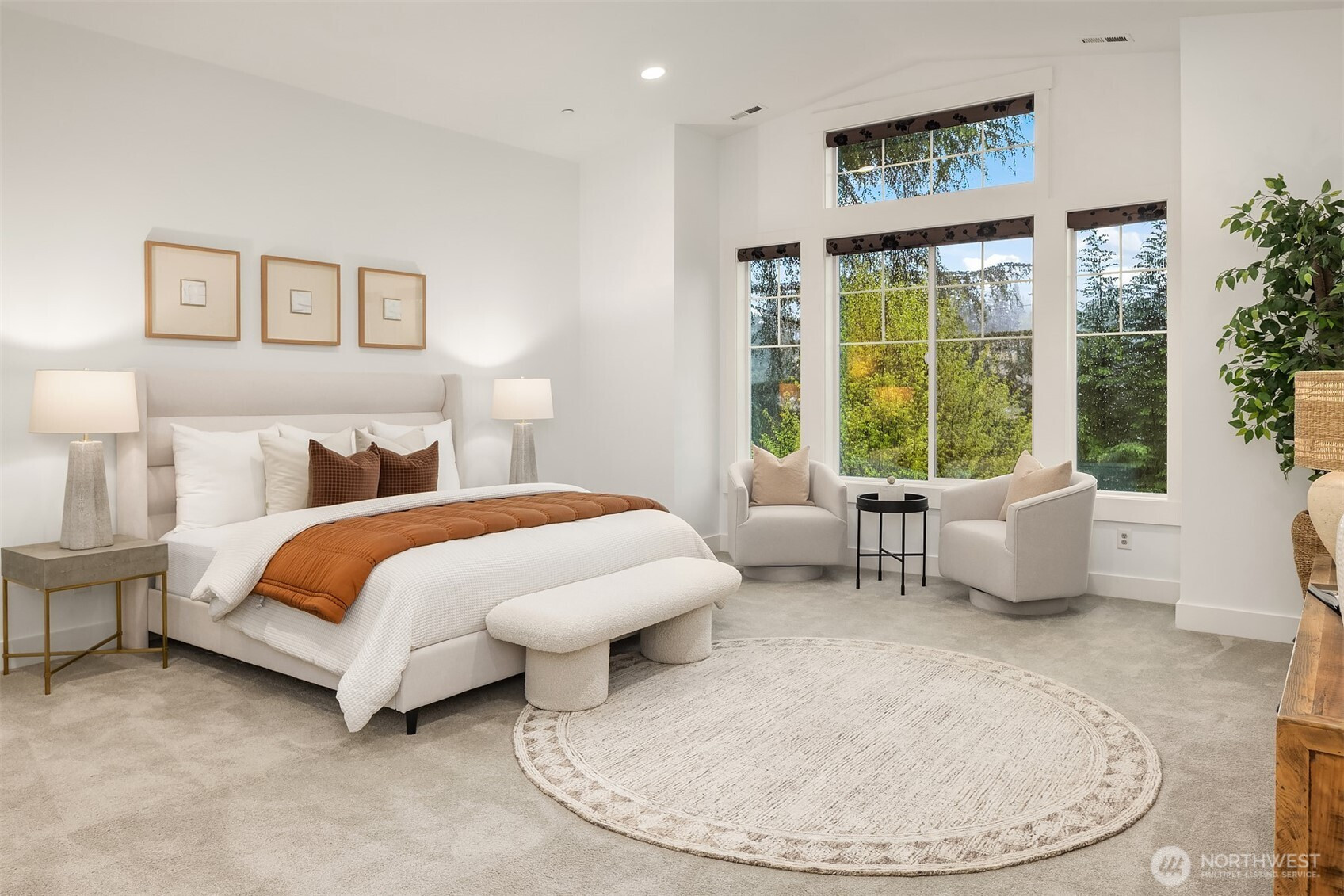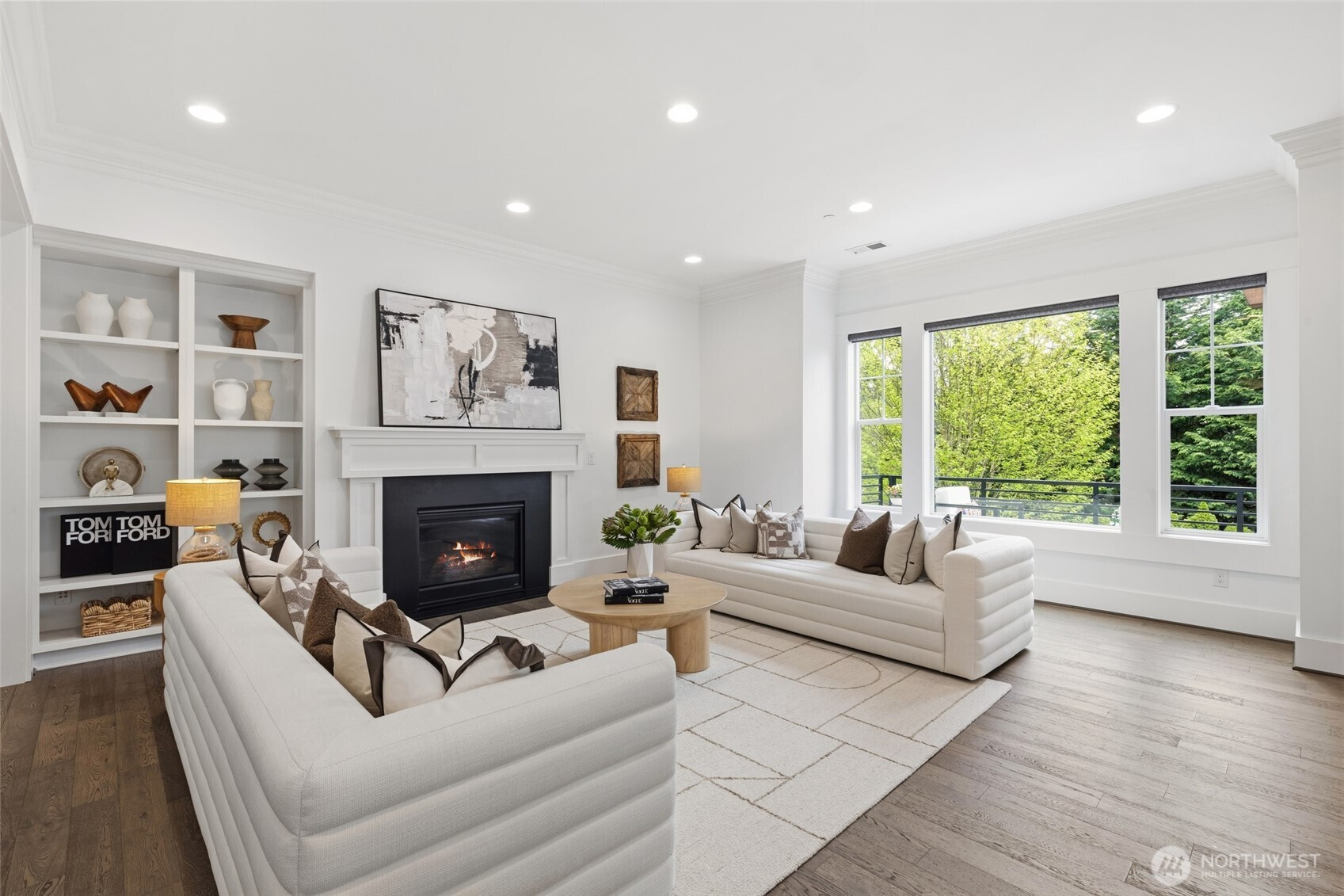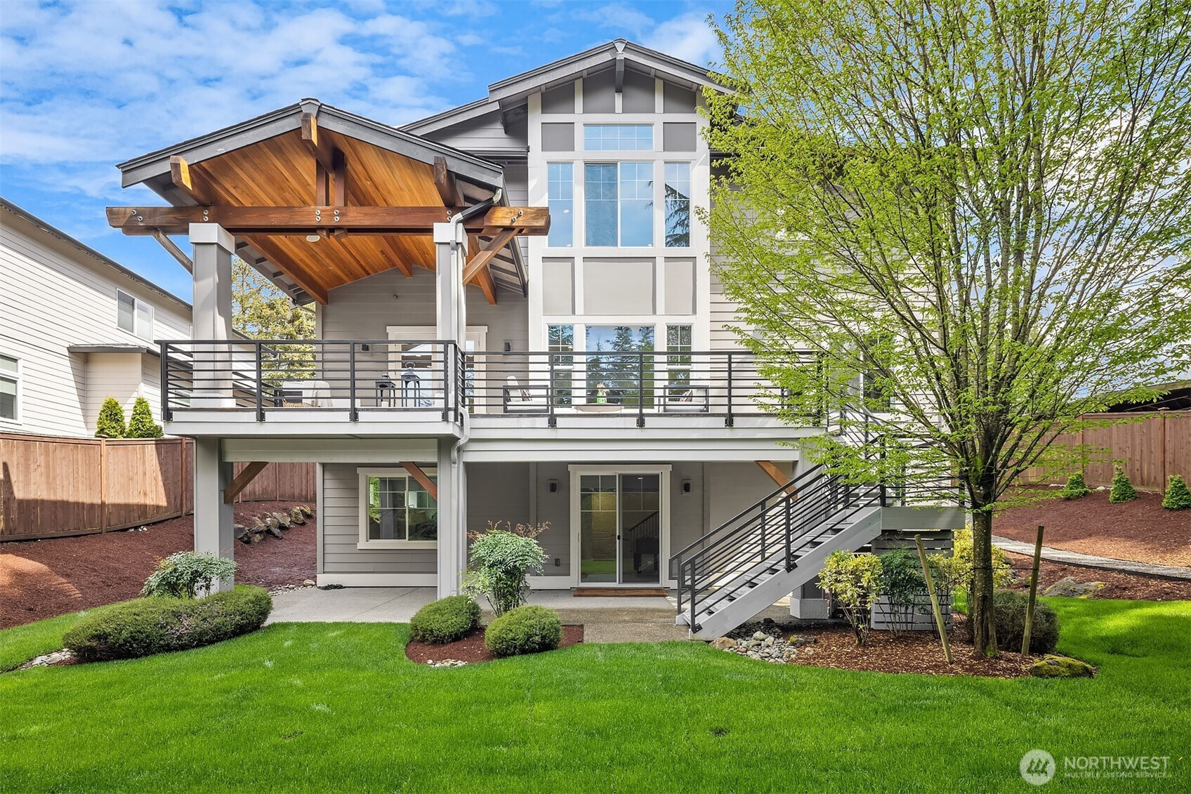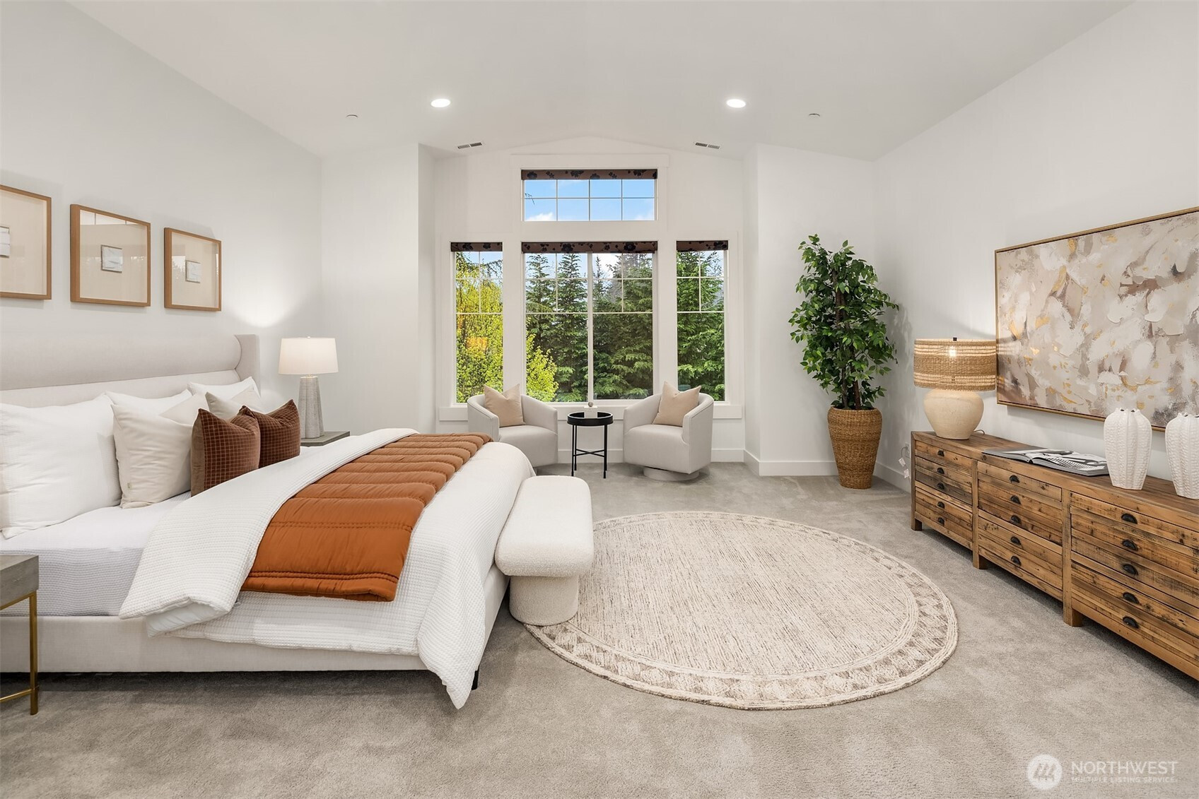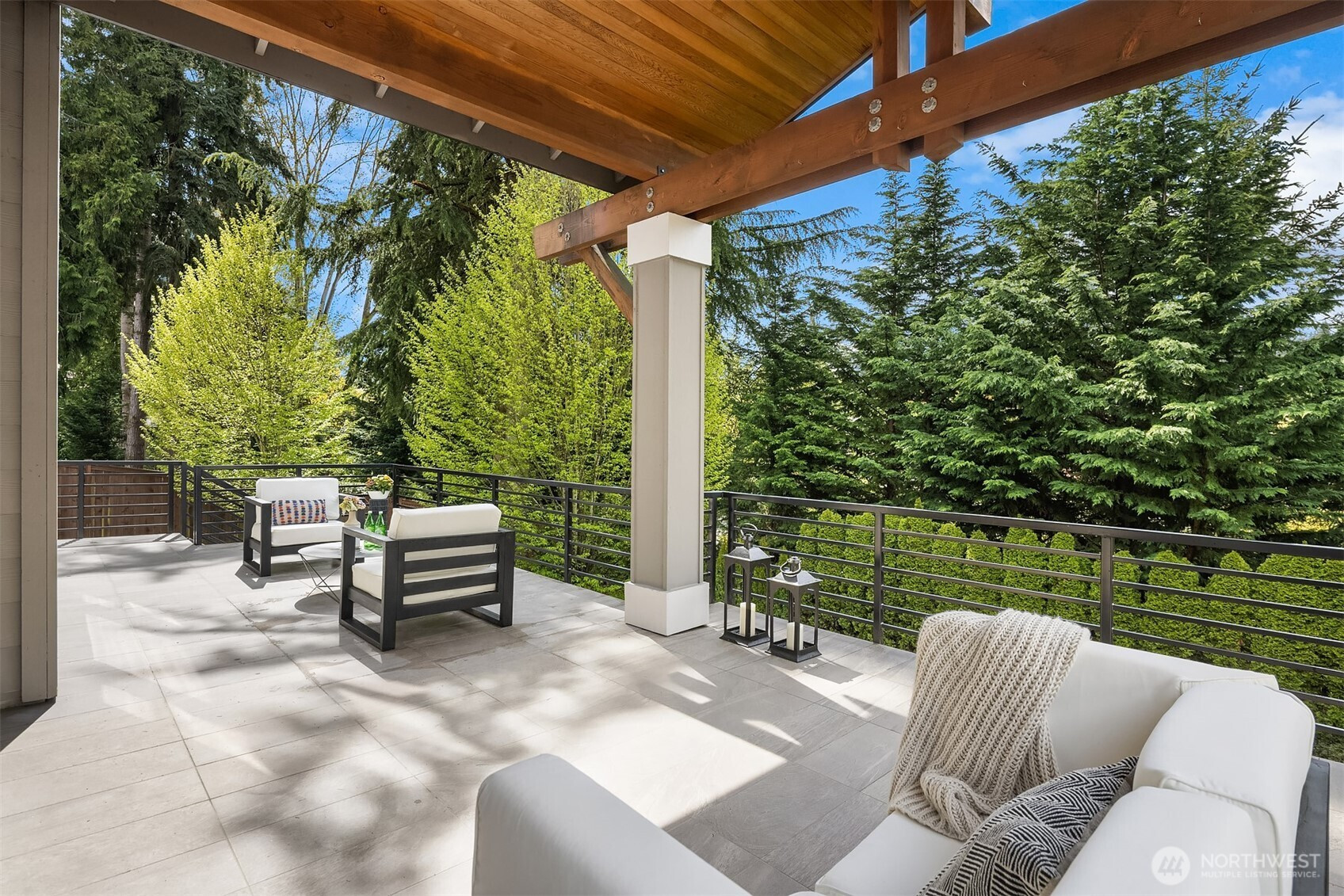 Exceptional JayMarc resale showcasing timeless craftsmanship and a thoughtful layout. Set on a private dead-end street just minutes from Downtown Bellevue’s premier dining, shopping, and amenities, this home offers both privacy and convenience. Designed for entertaining, the open great room flows to a large covered deck through French doors, creating effortless indoor-outdoor living. The chef’s kitchen features top-tier Sub-Zero and Wolf appliances, a butler’s pantry, and a casual dining area. An ocean wave–inspired natural stone island with a leathered finish serves as a one-of-a-kind centerpiece. Upstairs includes four spacious bedrooms and three baths, highlighted by a luxurious primary suite with a sitting area, a generously sized spa-like bath, and a walk-in closet, all framed by vaulted ceilings and bright, airy interiors. The refined lower level features a spacious rec room that opens to a flat, west-facing backyard, along with a private guest space and separate entrance—ideal for visitors or multigenerational living. Lush, mature landscaping is complemented by a full irrigation system and fully fenced grounds. Fresh interior paint enhances the home’s crisp, move-in-ready appeal. Additional highlights include a three-car garage with EV charging and dual-zone heating and cooling for year-round comfort. Ideally located just a short stroll from the Bellevue Farmers Market.