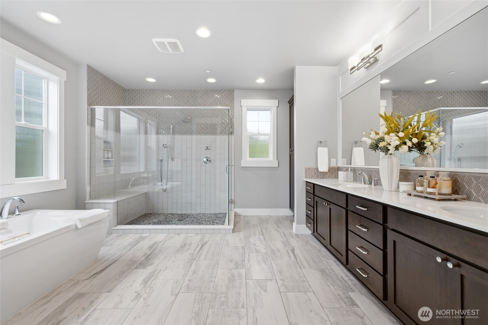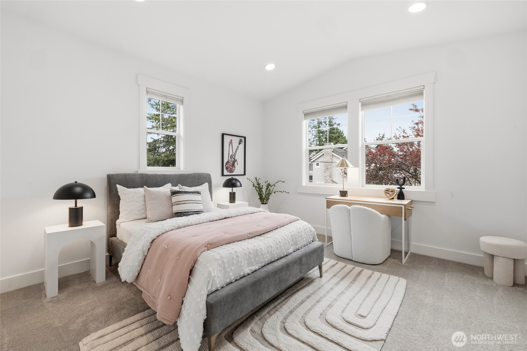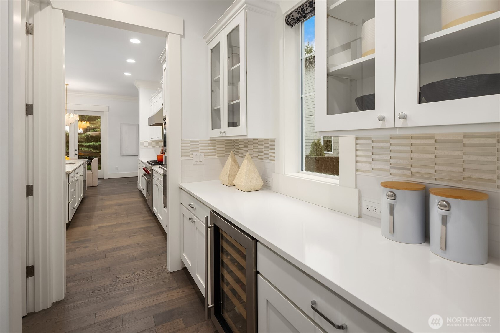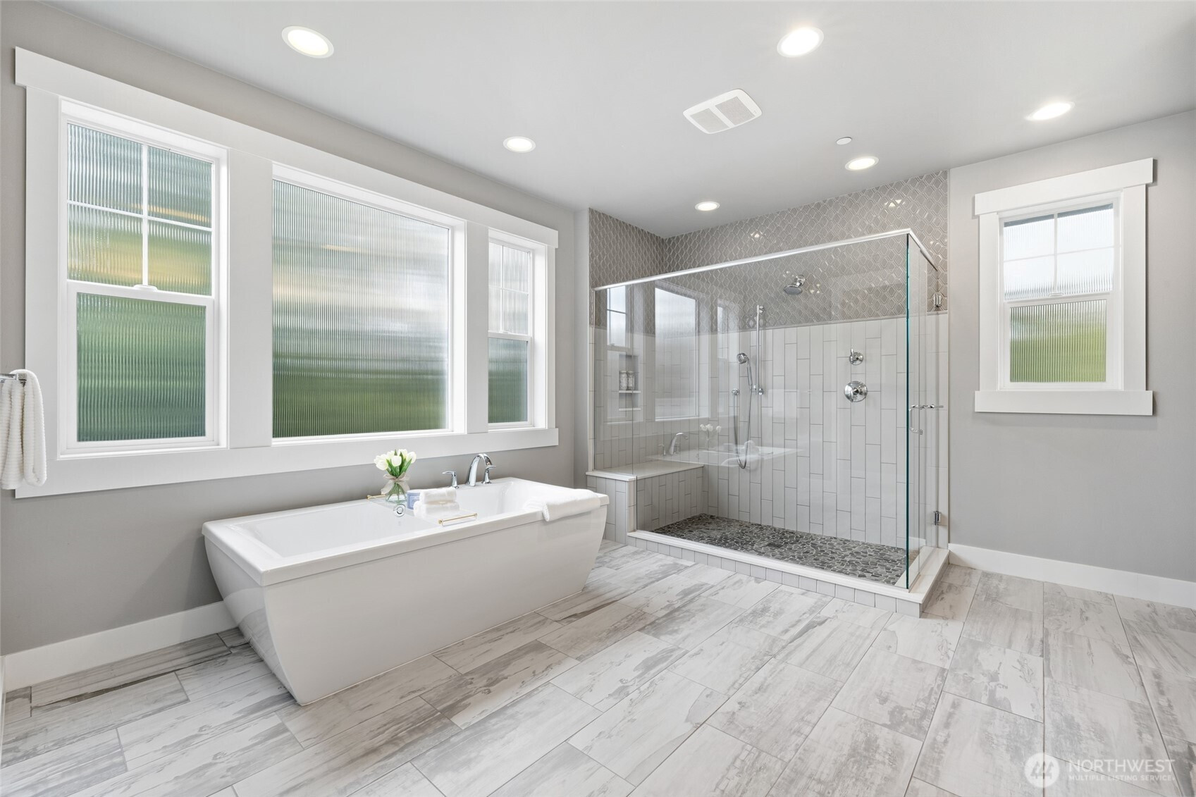 Exceptional JayMarc resale showcasing timeless craftsmanship and a thoughtful layout. Set on a private dead-end street just minutes from Downtown Bellevue’s premier dining, shopping, and amenities, this home offers both privacy and convenience. Designed for entertaining, the open great room flows to a large covered deck through French doors, creating effortless indoor-outdoor living. The chef’s kitchen features top-tier Sub-Zero and Wolf appliances, a butler’s pantry, and a casual dining area. An ocean wave–inspired natural stone island with a leathered finish serves as a one-of-a-kind centerpiece. Upstairs includes four spacious bedrooms and three baths, highlighted by a luxurious primary suite with a sitting area, a generously sized spa-like bath, and a walk-in closet, all framed by vaulted ceilings and bright, airy interiors. The refined lower level features a spacious rec room that opens to a flat, west-facing backyard, along with a private guest space and separate entrance—ideal for visitors or multigenerational living. Lush, mature landscaping is complemented by a full irrigation system and fully fenced grounds. Fresh interior paint enhances the home’s crisp, move-in-ready appeal. Additional highlights include a three-car garage with EV charging and dual-zone heating and cooling for year-round comfort. Ideally located just a short stroll from the Bellevue Farmers Market.