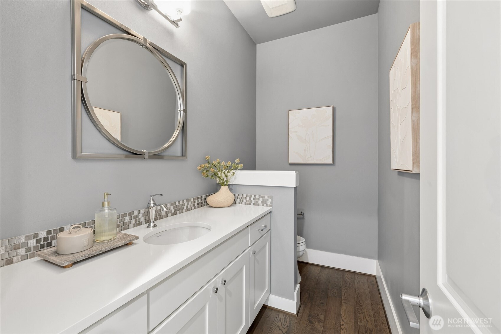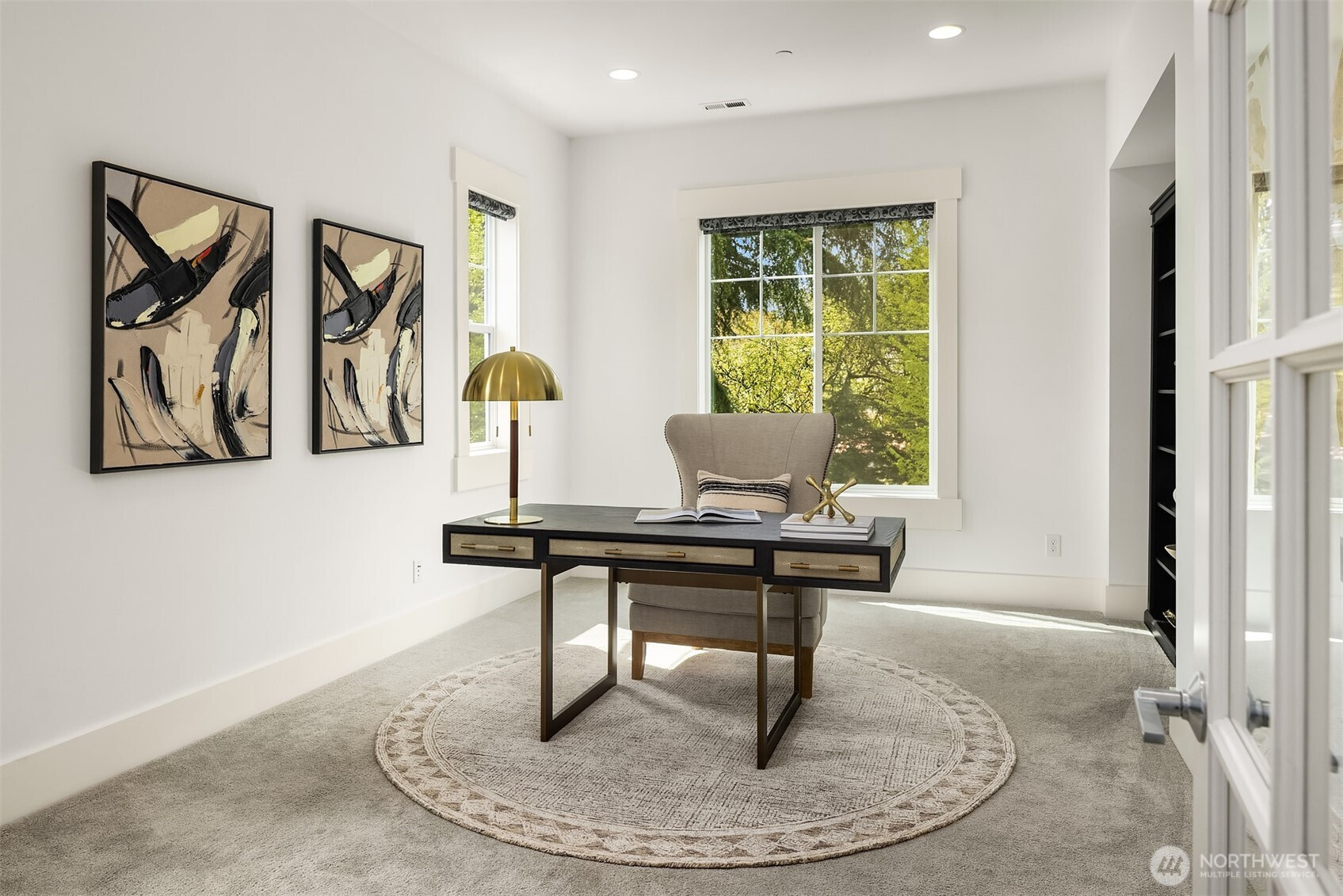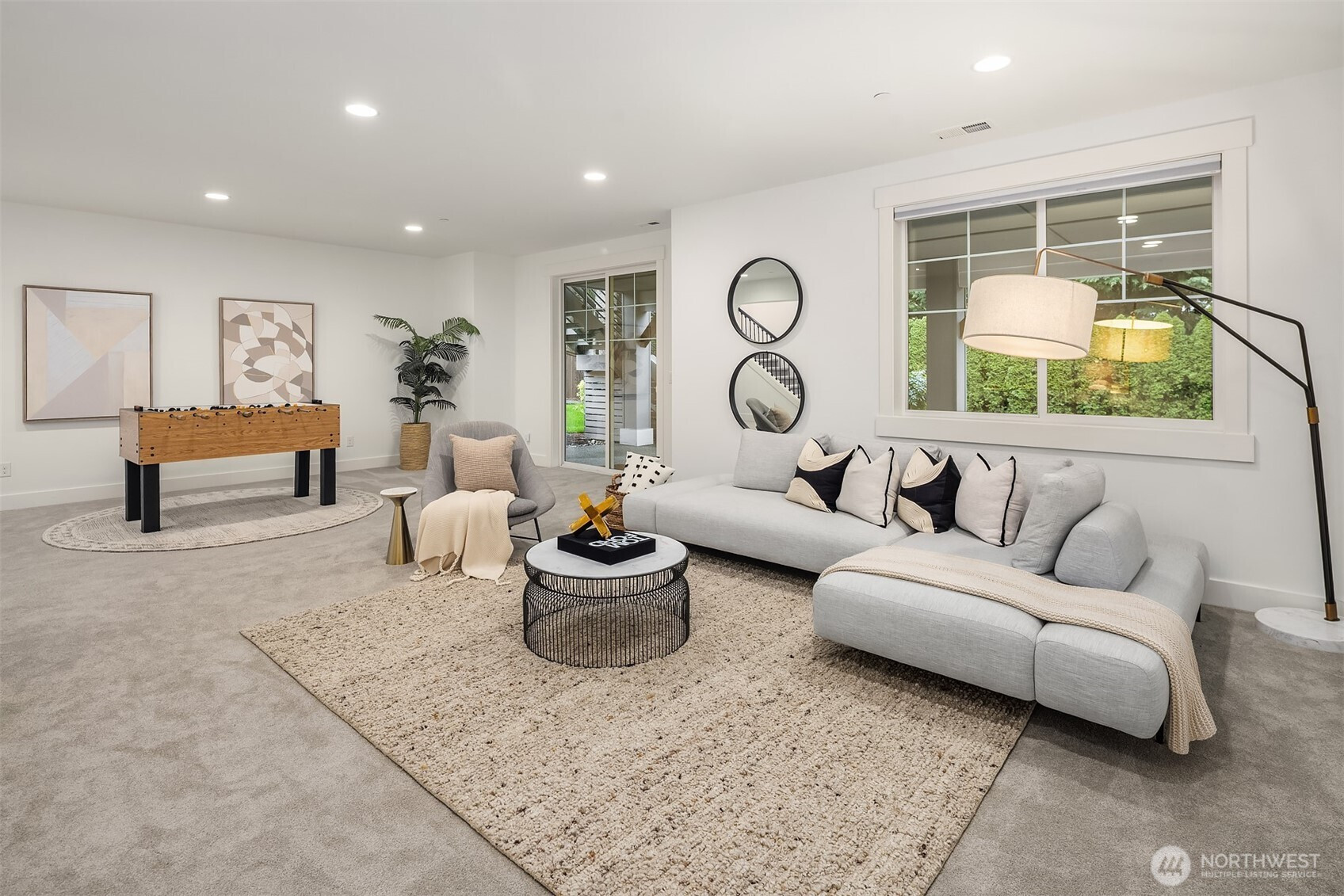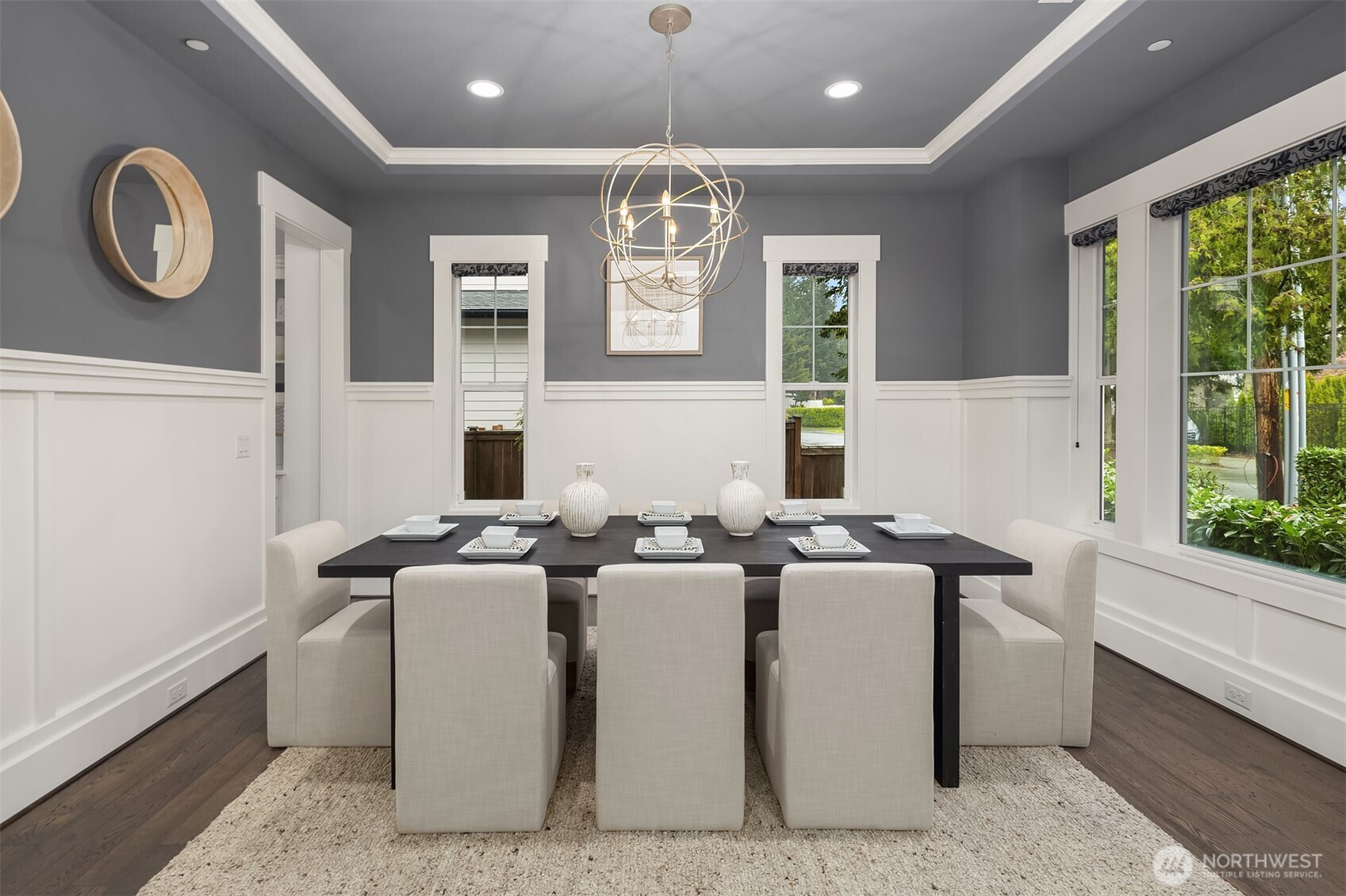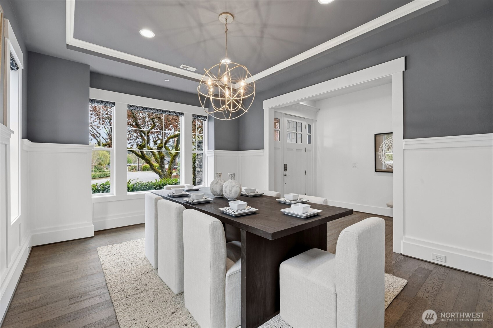 Exceptional JayMarc resale showcasing timeless craftsmanship and a thoughtful layout. Set on a private dead-end street just minutes from Downtown Bellevue’s premier dining, shopping, and amenities, this home offers both privacy and convenience. Designed for entertaining, the open great room flows to a large covered deck through French doors, creating effortless indoor-outdoor living. The chef’s kitchen features top-tier Sub-Zero and Wolf appliances, a butler’s pantry, and a casual dining area. An ocean wave–inspired natural stone island with a leathered finish serves as a one-of-a-kind centerpiece. Upstairs includes four spacious bedrooms and three baths, highlighted by a luxurious primary suite with a sitting area, a generously sized spa-like bath, and a walk-in closet, all framed by vaulted ceilings and bright, airy interiors. The refined lower level features a spacious rec room that opens to a flat, west-facing backyard, along with a private guest space and separate entrance—ideal for visitors or multigenerational living. Lush, mature landscaping is complemented by a full irrigation system and fully fenced grounds. Fresh interior paint enhances the home’s crisp, move-in-ready appeal. Additional highlights include a three-car garage with EV charging and dual-zone heating and cooling for year-round comfort. Ideally located just a short stroll from the Bellevue Farmers Market.