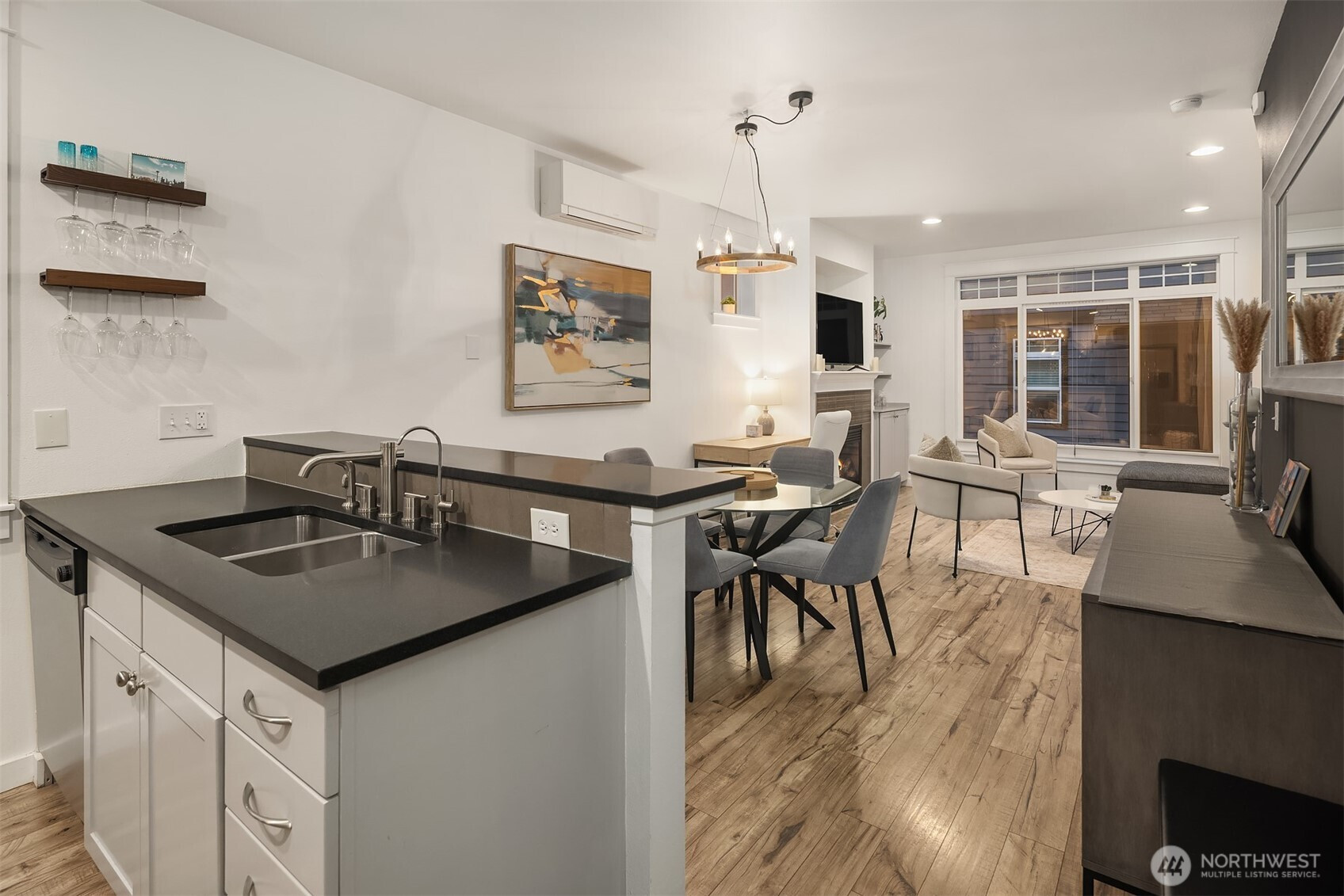 This Eastlake townhome combines thoughtful design with everyday livability in a prime location just steps from cafes, restaurants, and Lake Union. Step inside to an open layout with abundant natural light creating a welcoming flow. The kitchen—anchored by a peninsula island with bar seating and a gas range—serves as a natural gathering spot. Enjoy your evenings and settle in by the gas fireplace, a subtle comfort that makes the space feel instantly like home. Upstairs, the primary suite provides a quiet retreat with a spa-inspired bath and generous closet. A versatile second bedroom easily adapts as a guest room or home office, complemented by a full bath and convenient upper-level laundry. Outside, the fully fenced front patio provides space for a small garden, afternoon reading, or relaxing at the end of the day. Complete with efficient mini-split AC/heat, a lower-level third bedroom, and an attached garage offering abundant storage, this home delivers effortless comfort, urban accessibility, and that signature Eastlake charm you won't want to miss.