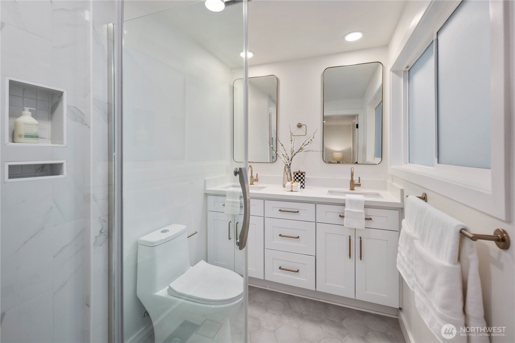 (503) 893-8874Stunning mid-century remodel in sought-after Lochmoor with sweeping Cascade views and an open, light-filled design. The heart of the home is a modern kitchen with quartz counters, stainless appliances, and an induction cooktop, seamlessly blending style and function. Recent upgrades include newer windows, A/C, furnace, PVC roof, garage doors, waterproof engineered hardwoods, plus refreshed baths, electrical, water heater, doors, and hardware. The lower level offers a spacious bonus room with a cozy fireplace. Outside, enjoy a private fenced backyard and deck. All within the top-rated Bellevue School District and close to Crossroads, parks, shops, dining, and major freeways.