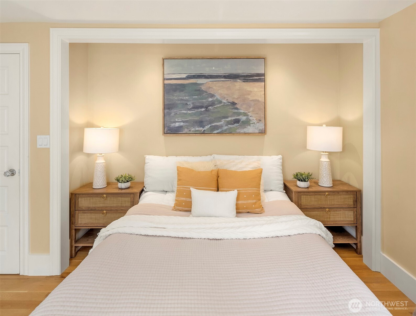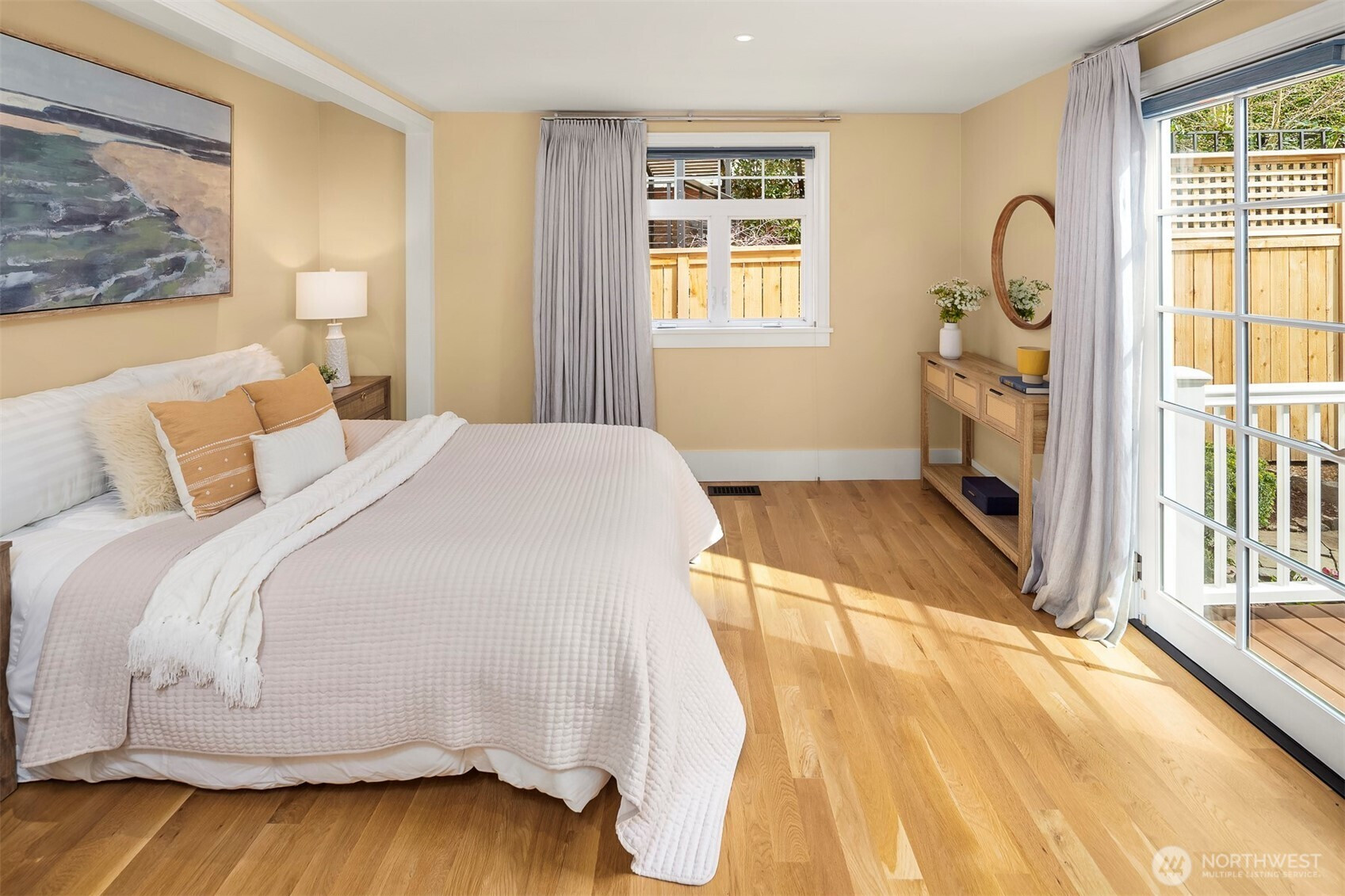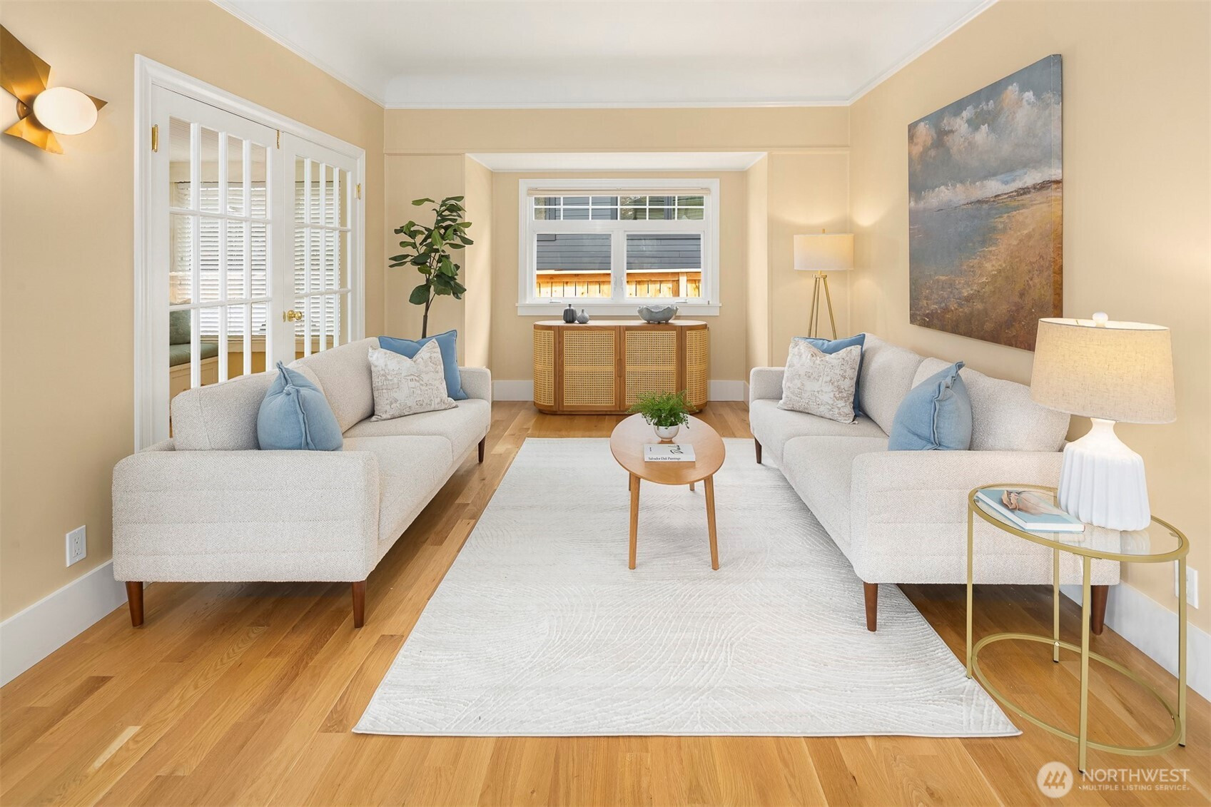 Phinney Ridge charmer meets award-winning transformation. This 1908 four-bedroom is the recipient of a 2024 Remodeling Excellence (REX) Award, earned through a $650k+ whole-house remodel by Jackson Design/Build — featured in 425 Magazine. Light-filled rooms flow from a beautifully reimagined entryway through the living and dining rooms, into a completely new kitchen and stunning remodeled bath. White oak hardwood floors grace the entire main level and stairwell. Custom entryway cabinetry, curated light fixtures, and thoughtful tile selections throughout — contemporary finishes that honor the home's early 1900s soul without moving a single wall. Lower bedrooms feature brand-new carpet. Freshly painted exterior. Entertain from two distinct outdoor spaces: a generous front deck with sweeping neighborhood views, and a private flagstone patio accessed directly off the primary bedroom — fully fenced and beautifully landscaped. The systems match the finishes: new electrical panel with upgraded wiring, heat pump (2019), tankless water heater (2020), professionally designed hardscaping and landscaping, and an irrigation system covering front, side, and portions of the back yard. Two blocks from Woodland Park Zoo's north entrance. Walkable to Phinney Ave's best restaurants, coffee shops, and boutiques. Walk score 86.