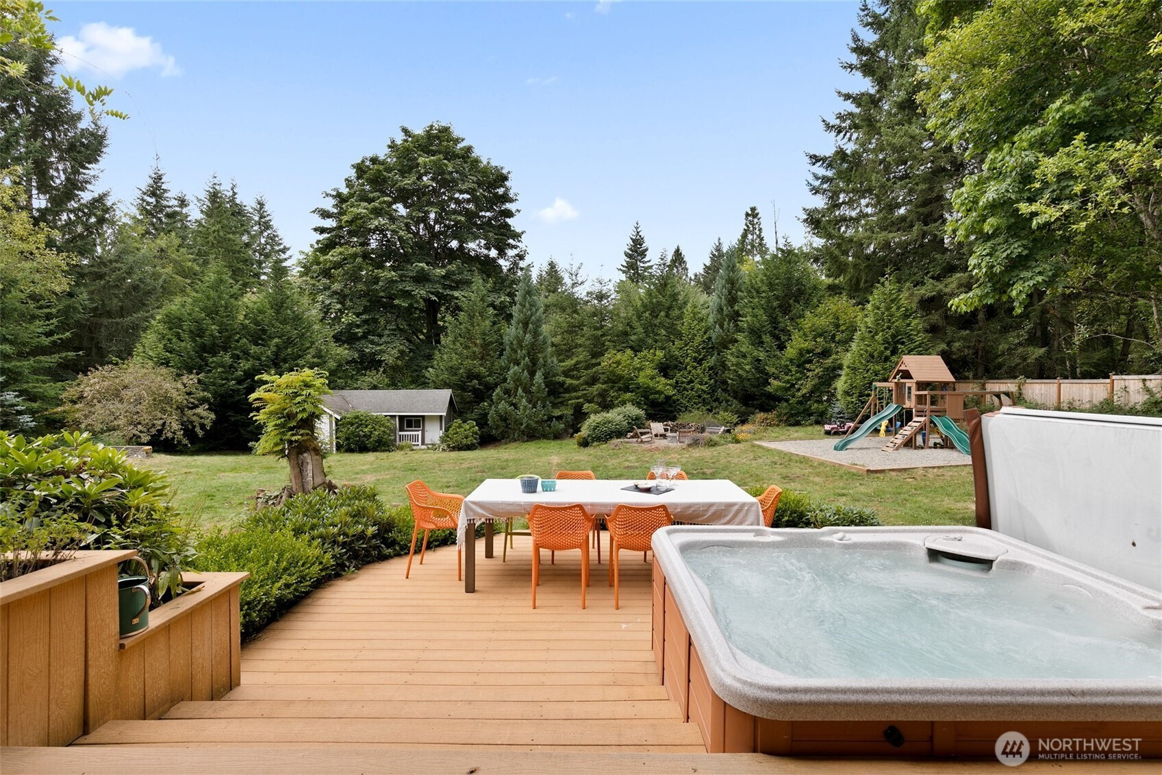 A stunning NW contemporary retreat, remodeled in 2024. Designed with modern comforts and timeless style, this home sits on 1.26 acres of landscaped, fully fenced grounds within the desirable Tahoma School District. Be captivated by soaring vaulted ceilings, new hardwood flooring, and a chef’s kitchen designed for both function and style. French doors lead to an expansive deck with tranquil views—an entertainer’s dream. The main floor primary suite boasts an updated 5-piece bath, dual walk-in closets, and private hot tub access. Upstairs offers a spacious loft, versatile flex space, 3 bedrooms, and a full bath. Peaceful yet minutes from Hwy 169, shopping, & trails. Mortgage savings may be available for buyers of this listing. Welcome home!