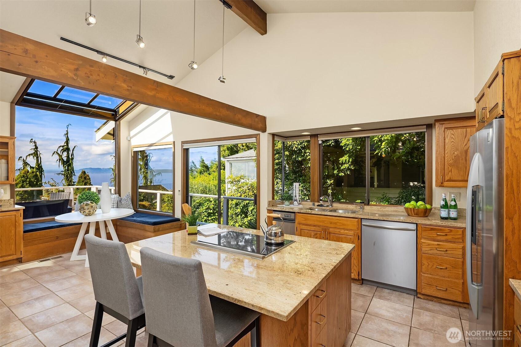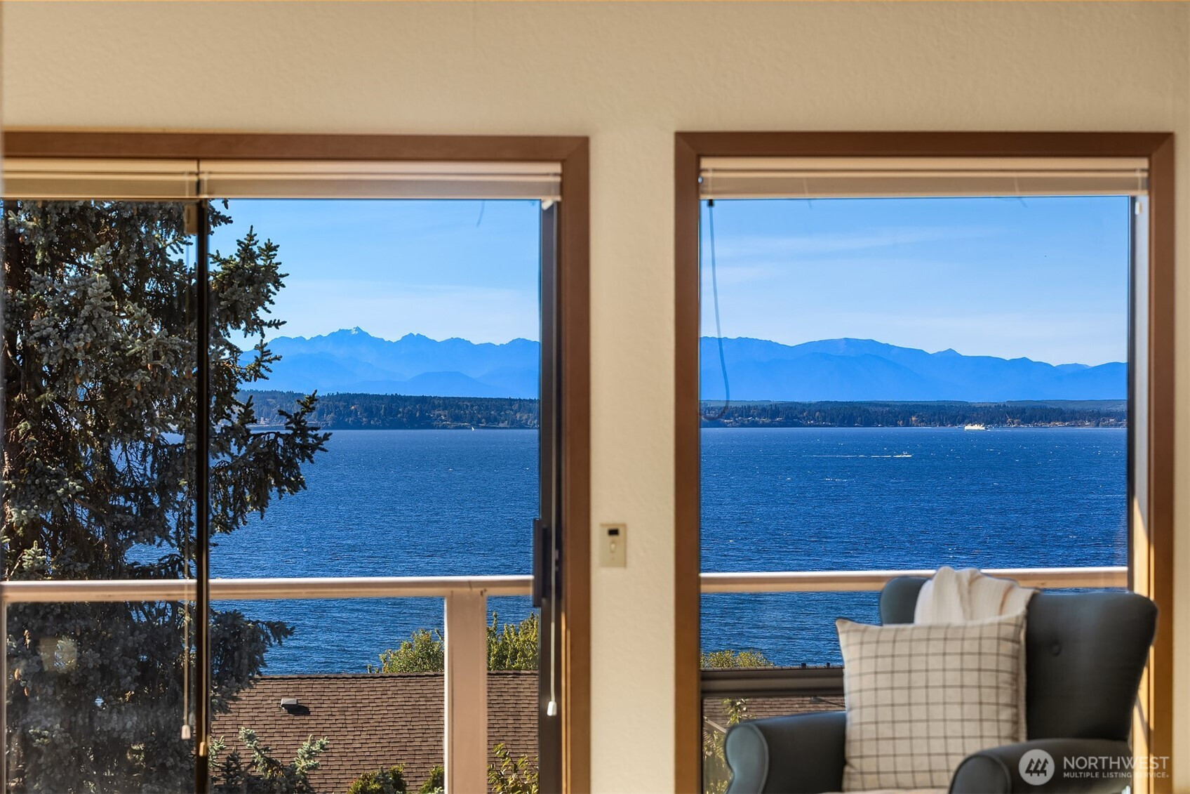 Panoramic Sound and mountain views take center stage in this smartly designed Richmond Beach home. Walls of west-facing windows and expansive decks capture stunning sunsets from nearly every room. The light-filled main level features vaulted ceilings, skylights, and clerestory windows, plus an open, spacious layout positioned to take in the views and a convenient bedroom wing. Retreat to the upper-level primary suite with private deck, spa-like bath, and professionally outfitted closet. The bright lower level offers a large family room, bedroom, bath, and private access—ideal for guests or multigenerational living. The quiet, unbeatable location is minutes away from amenities, including the Richmond Beach Saltwater Park. Pre-inspected.