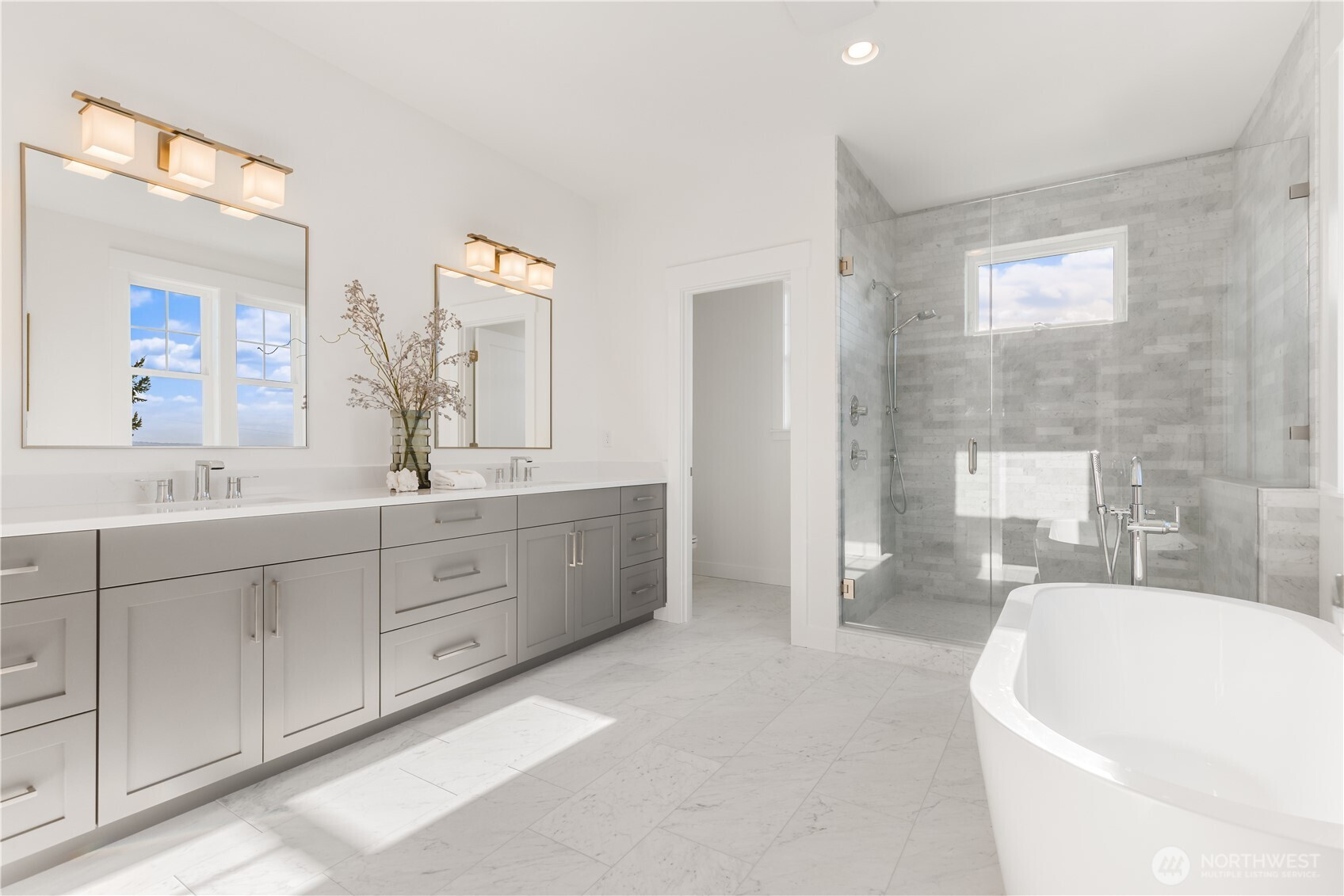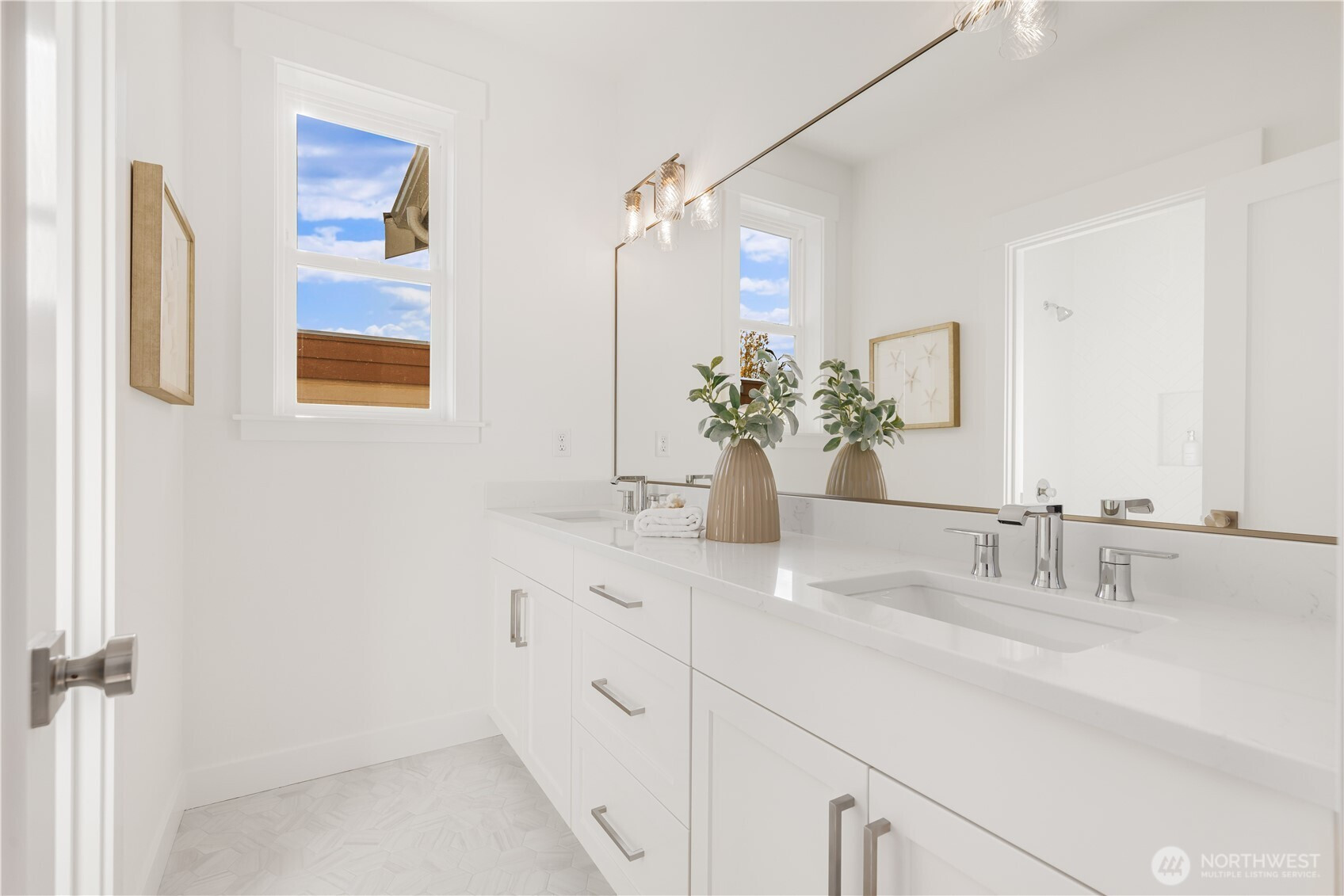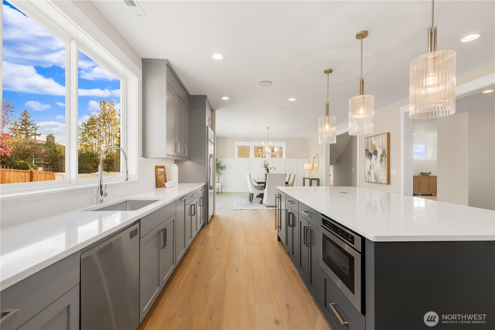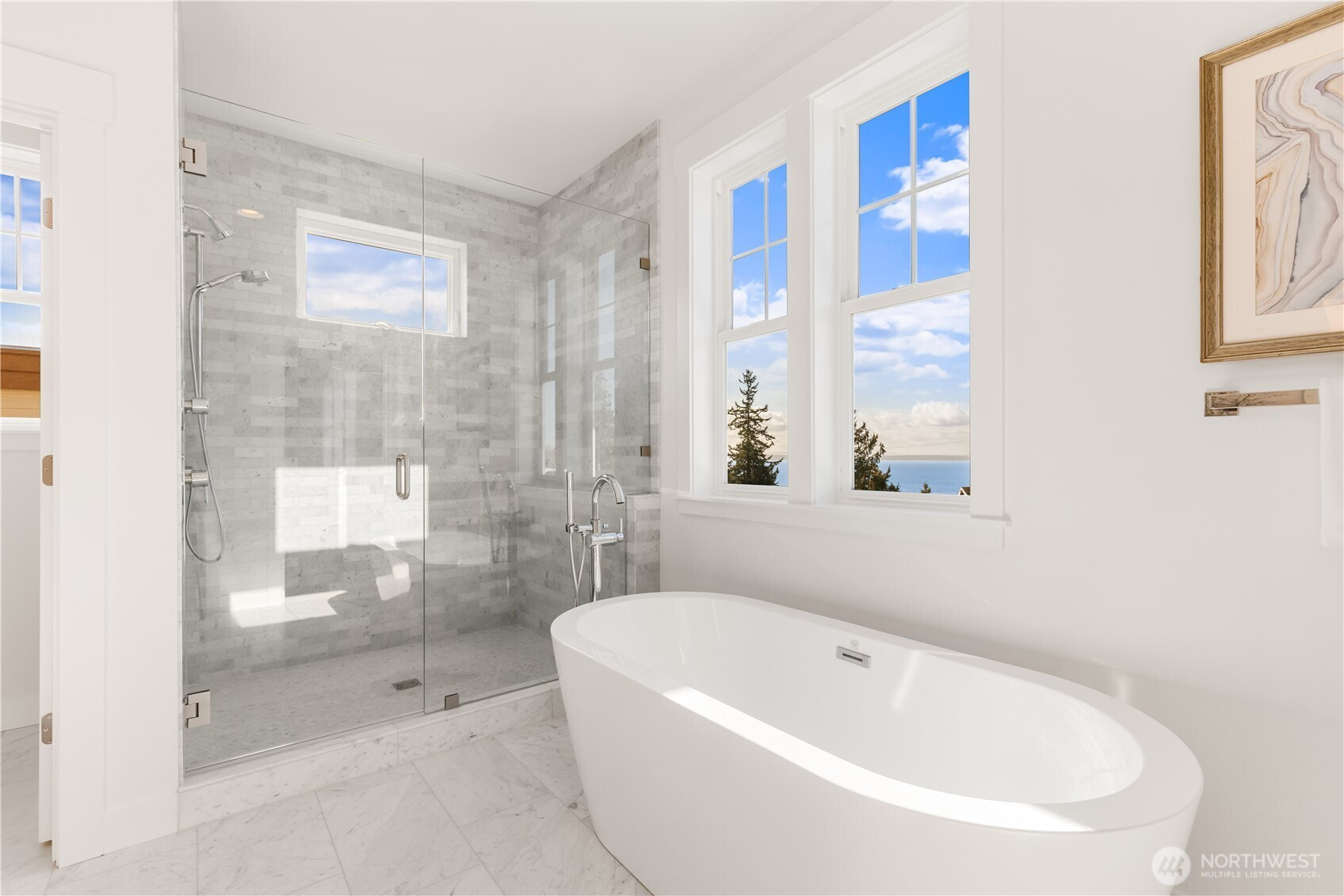 Winfield Homes presents modern design in the heart of Richmond Beach with Sound and Olympic Mountain views. This new construction showcases soaring ceilings and stacking glass doors that open to a covered view deck for seamless indoor-outdoor living. Enjoy wide-plank hardwood floors, a chef’s kitchen with oversized quartz island, custom cabinetry, and designer lighting. The spa-inspired primary bath features heated floors and elegant finishes. The lower level includes a spacious rec room, guest suite, and full bath. Fully fenced yard, smart wiring, security system, and pre-wired surround sound complete this exceptional home.
