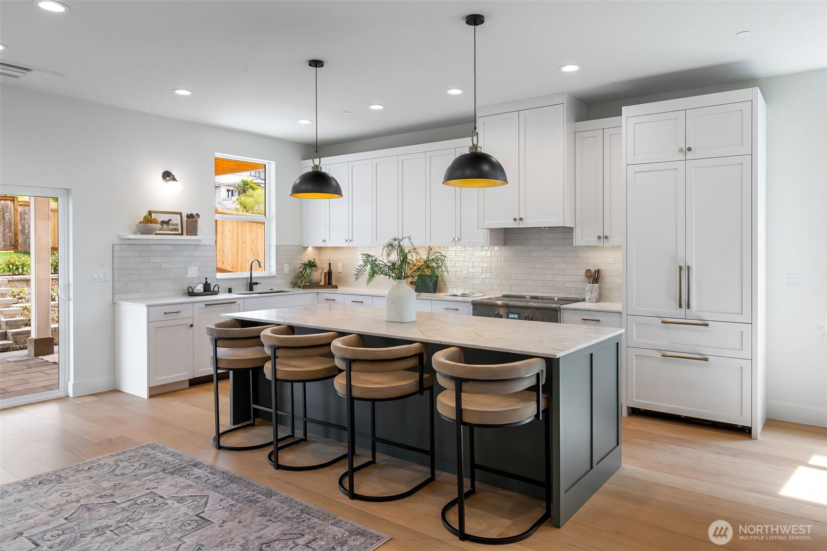 Nestled in the sought-after Richmond Beach community, this brand-new home showcases the signature craftsmanship of a boutique local builder known for exceptional quality, refined details, and elevated finishes. Thoughtfully designed with six bedrooms and four bathrooms, including three ensuite retreats, the home features an open-concept layout enhanced by custom millwork, bespoke cabinetry, and layered lighting that brings warmth and sophistication to every space. The gourmet kitchen is a true focal point, appointed with a premium Thermador appliance package, paneled refrigerator and dishwasher, a statement 4-door refrigerator with water and ice, and a 36” induction range seamlessly integrated into the design. Dual primary suites offer a spa-like experience with heated bathroom floors and curated finishes, blending comfort with understated luxury. Just moments from beaches, parks, and neighborhood favorites, this home reflects a seamless balance of thoughtful design, enduring quality, and relaxed coastal living.