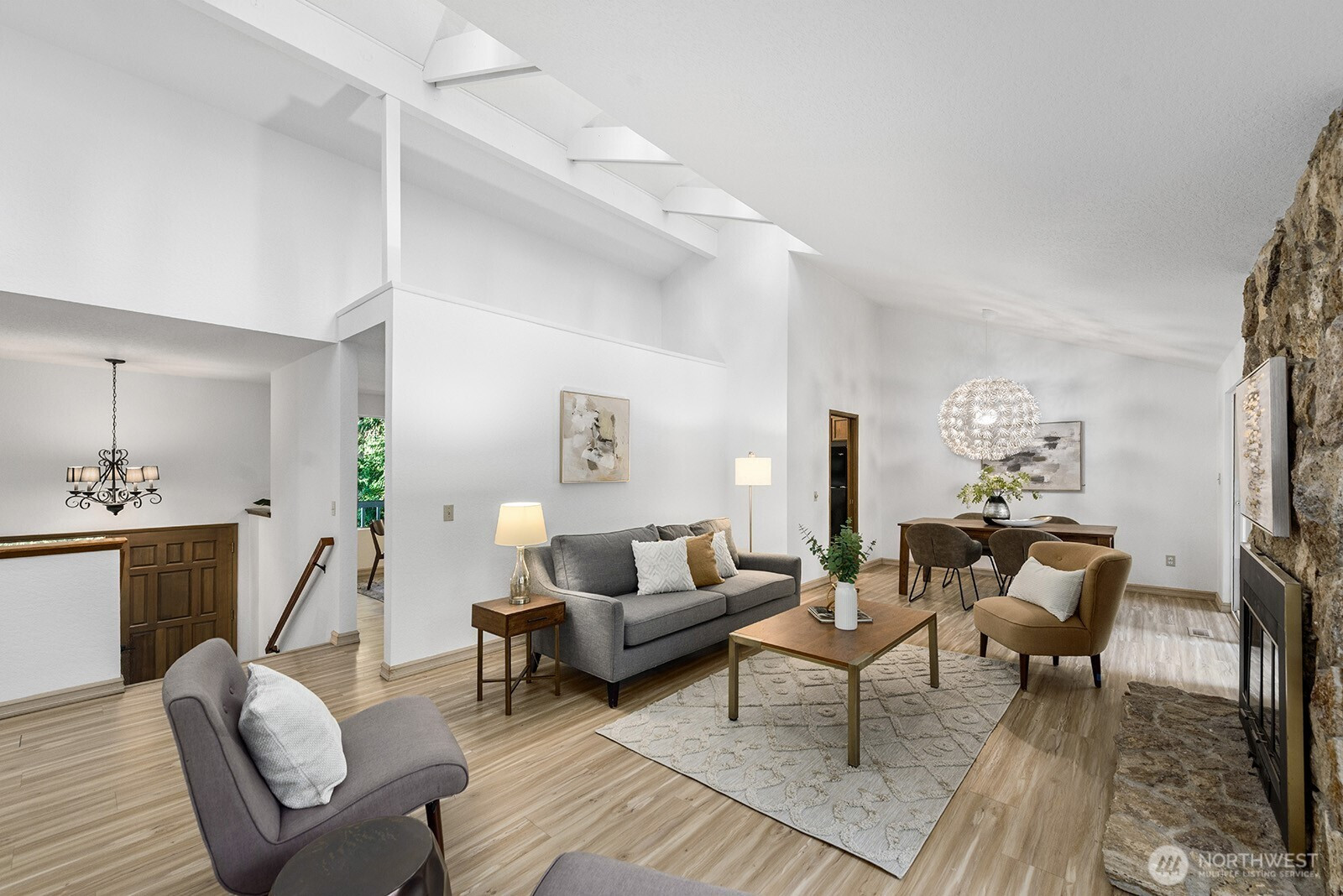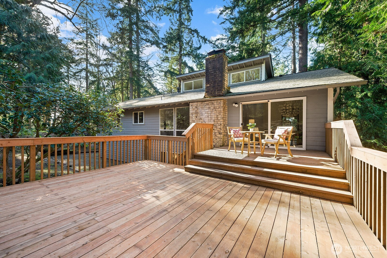 Perfectly set at the end of a quiet cul-de-sac in the special Sammamish Woods community. The main floor features open living and dining space warmed by a fireplace and accented by lovely high ceilings and transom windows. A significant new deck accessed from this space. The kitchen offers counter seating and space for family room or kitchen table gathering around the kitchen. A deck off the kitchen brings sunshine, a breeze and easy bbq access. Three bedrooms on main level including a true primary with 3/4 bathroom. Expansive lower level has a flex space to use in a variety of ways, convenient laundry room and a 4th bedroom. Fabulous large lot with mature trees and plantings. Seller provided inspection and septic report available as a convenience to buyer.