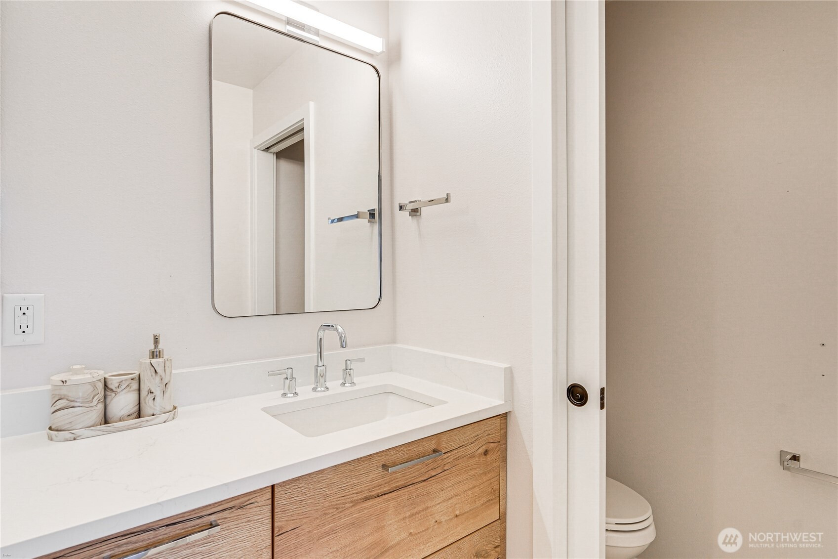 Discover refined living at the edge of Capitol Hill and Madrona. Each of the three bedrooms features a private en-suite bath for comfort and privacy. The home offers two-car off-street parking with both garage and driveway spaces, plus an EV charger. Modern architecture and high-end finishes create a seamless flow of natural light framing stunning city and mountain views. The chef-inspired kitchen with walk-in pantry is perfect for entertaining. Enjoy a rooftop deck, lower patio, and garden area. The lower level includes a bedroom and bath with private access—ideal as a guest, in-law, or flexible private suite with separate entry. Steps to grocery stores, cafés, and restaurants—luxury and walkable living perfectly combined.