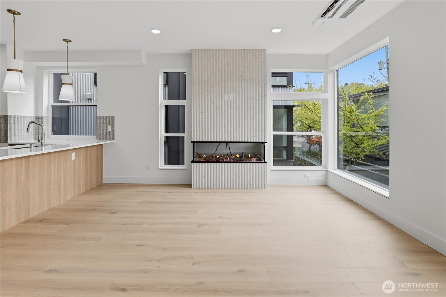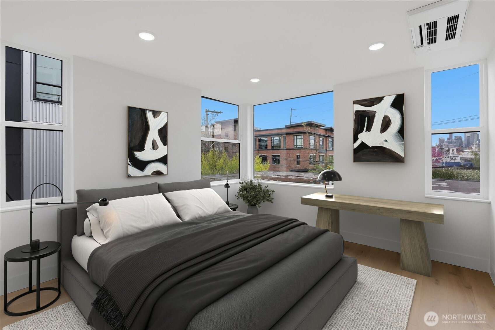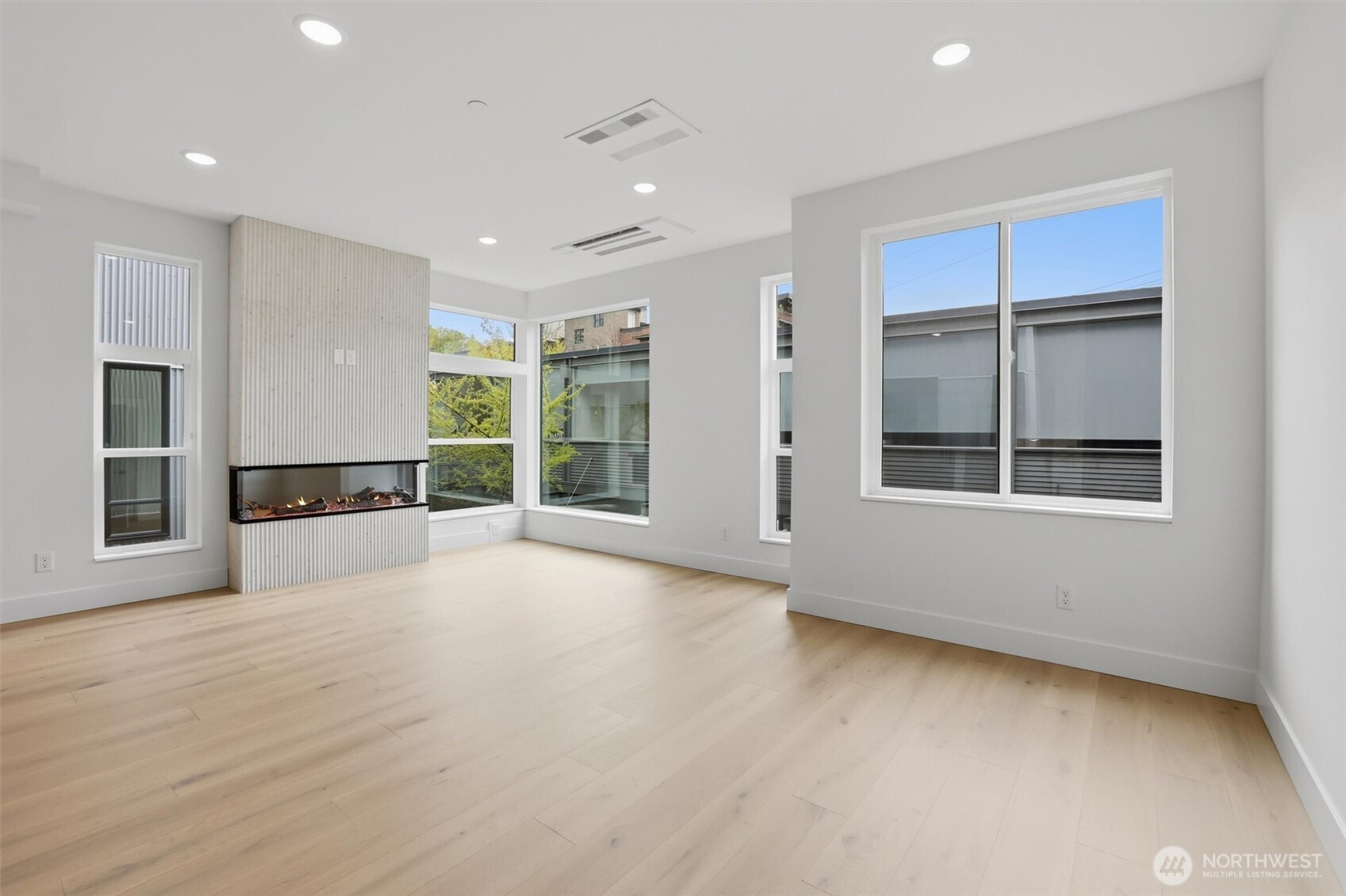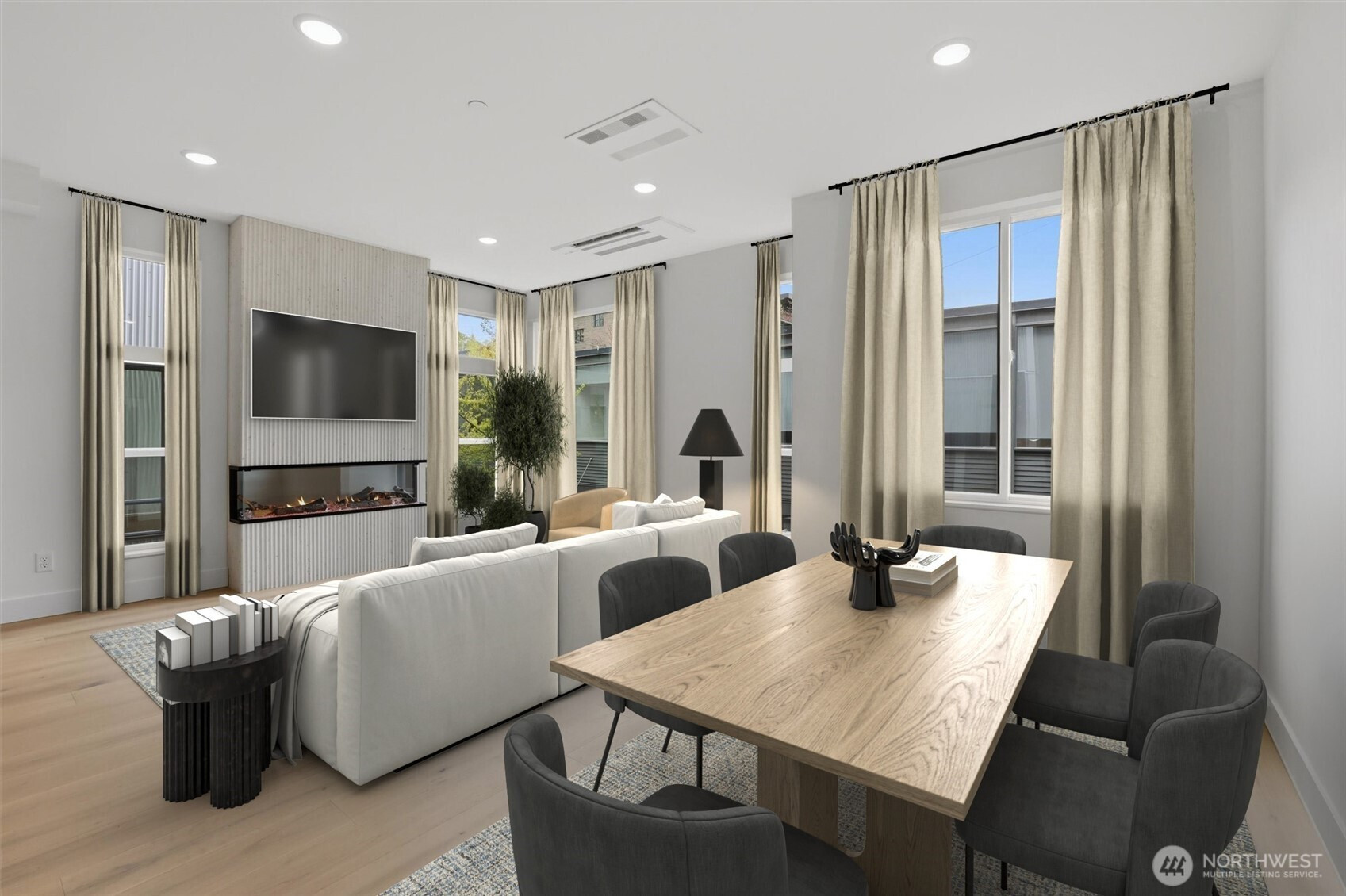 Positioned in the heart of Eastlake, this 2 bed, 2.5 bath residence at Harbor 26 offers 1,307 sqft of well-balanced living with a focus on comfort and function. The open-concept main level connects living, dining, and kitchen spaces seamlessly, finished with clean lines, modern materials, and a thoughtful, livable design. Both bedrooms are generously sized, each with its own bath, while a powder room on the main level adds everyday convenience. The primary suite is set apart with sweeping city views, bringing in natural light and creating a calm, elevated retreat above it all. Upstairs, a private rooftop deck extends your living space outdoors, capturing expansive views of Lake Union and the Seattle skyline—ideal for hosting or unwinding. Set within a gated community and complete with secured garage parking, this home offers a more refined, low-maintenance take on waterfront-adjacent living. Crafted by DEP Homes Eastlake, known for consistent quality and intentional design.