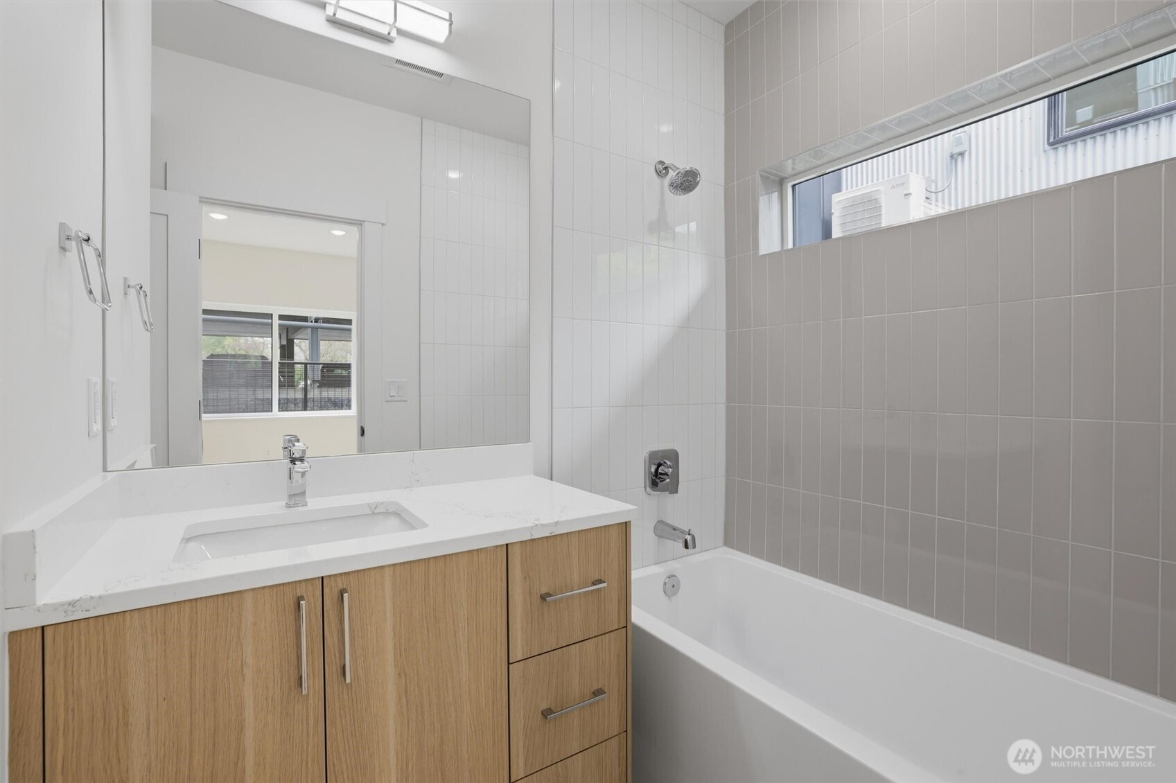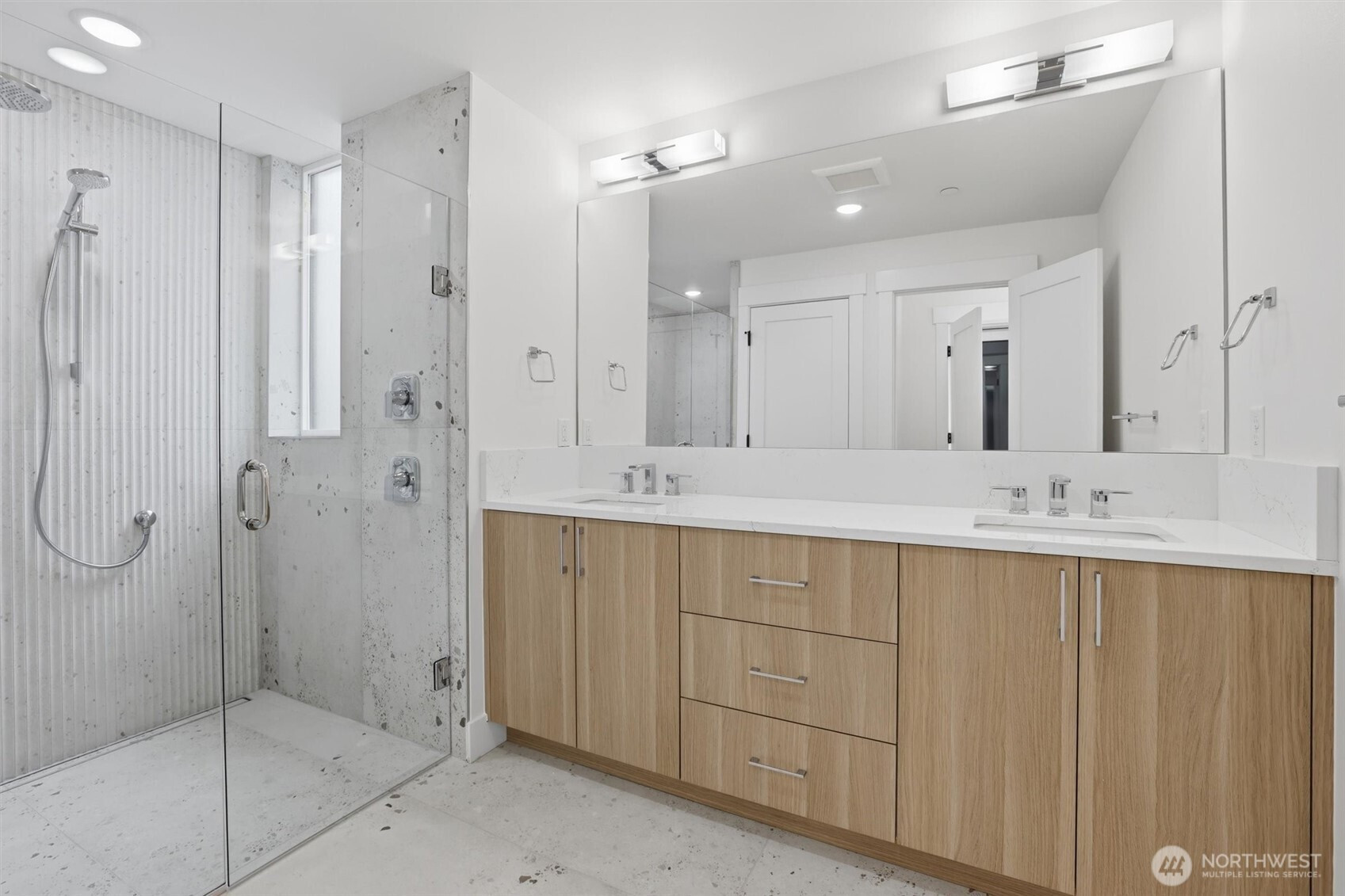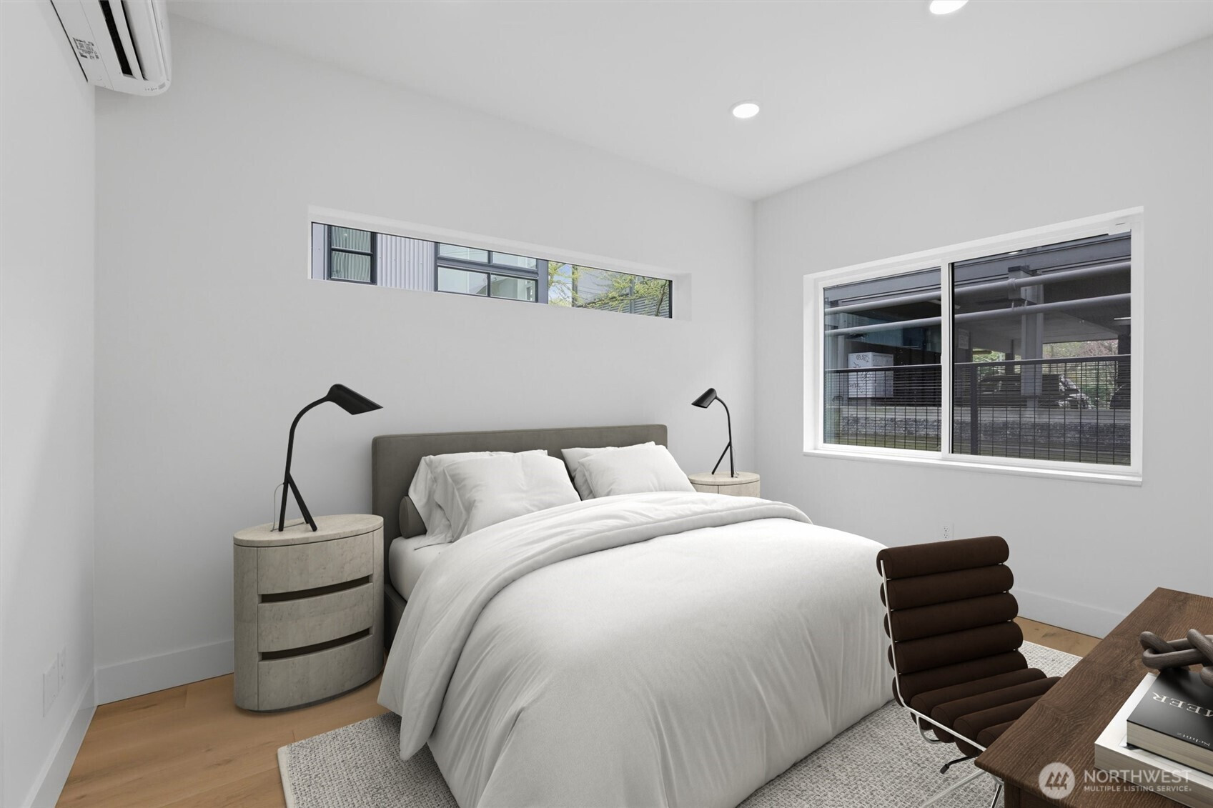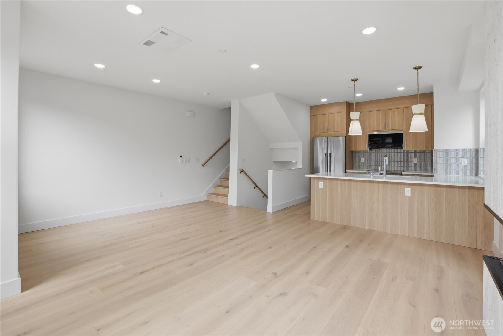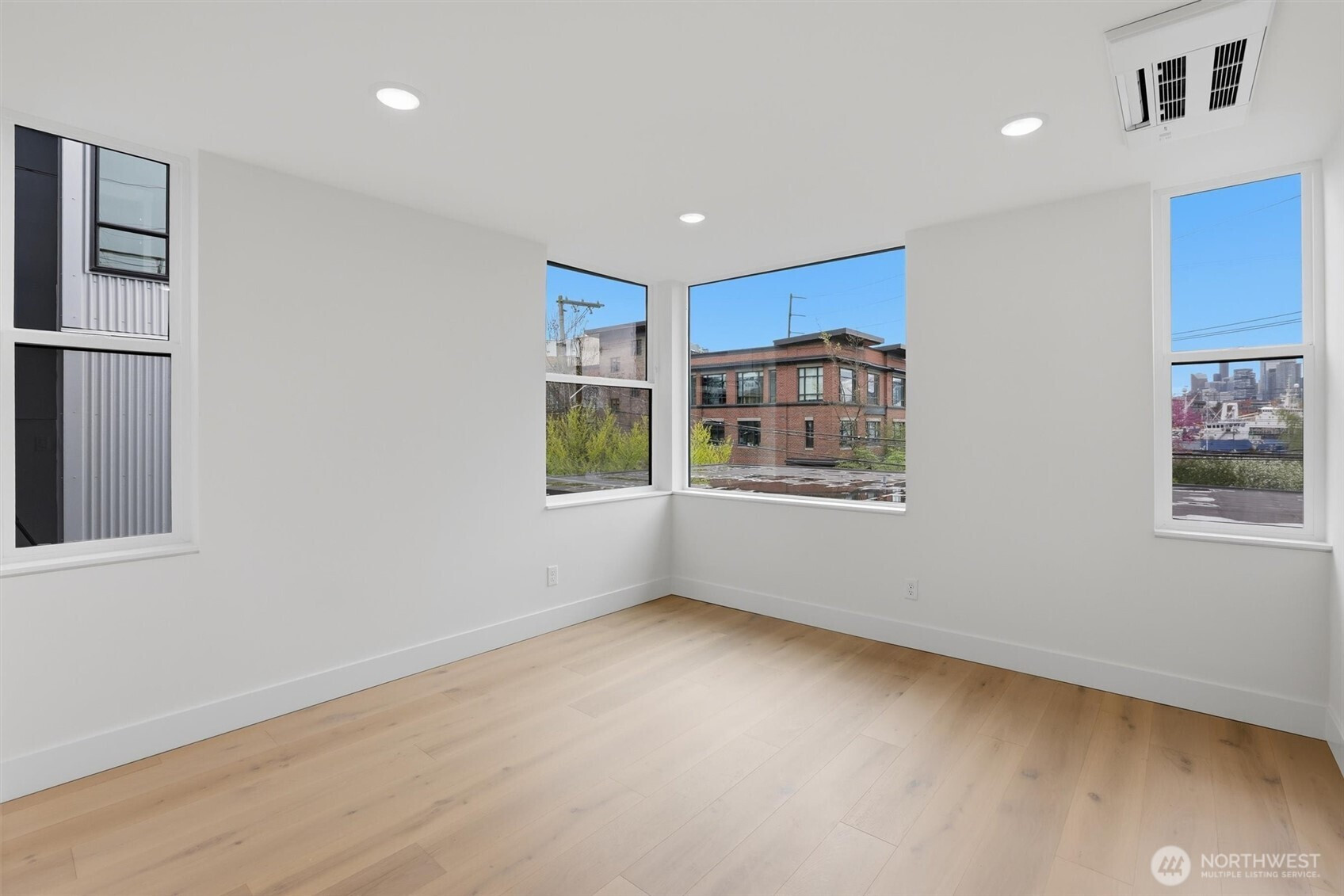 Positioned in the heart of Eastlake, this 2 bed, 2.5 bath residence at Harbor 26 offers 1,307 sqft of well-balanced living with a focus on comfort and function. The open-concept main level connects living, dining, and kitchen spaces seamlessly, finished with clean lines, modern materials, and a thoughtful, livable design. Both bedrooms are generously sized, each with its own bath, while a powder room on the main level adds everyday convenience. The primary suite is set apart with sweeping city views, bringing in natural light and creating a calm, elevated retreat above it all. Upstairs, a private rooftop deck extends your living space outdoors, capturing expansive views of Lake Union and the Seattle skyline—ideal for hosting or unwinding. Set within a gated community and complete with secured garage parking, this home offers a more refined, low-maintenance take on waterfront-adjacent living. Crafted by DEP Homes Eastlake, known for consistent quality and intentional design.