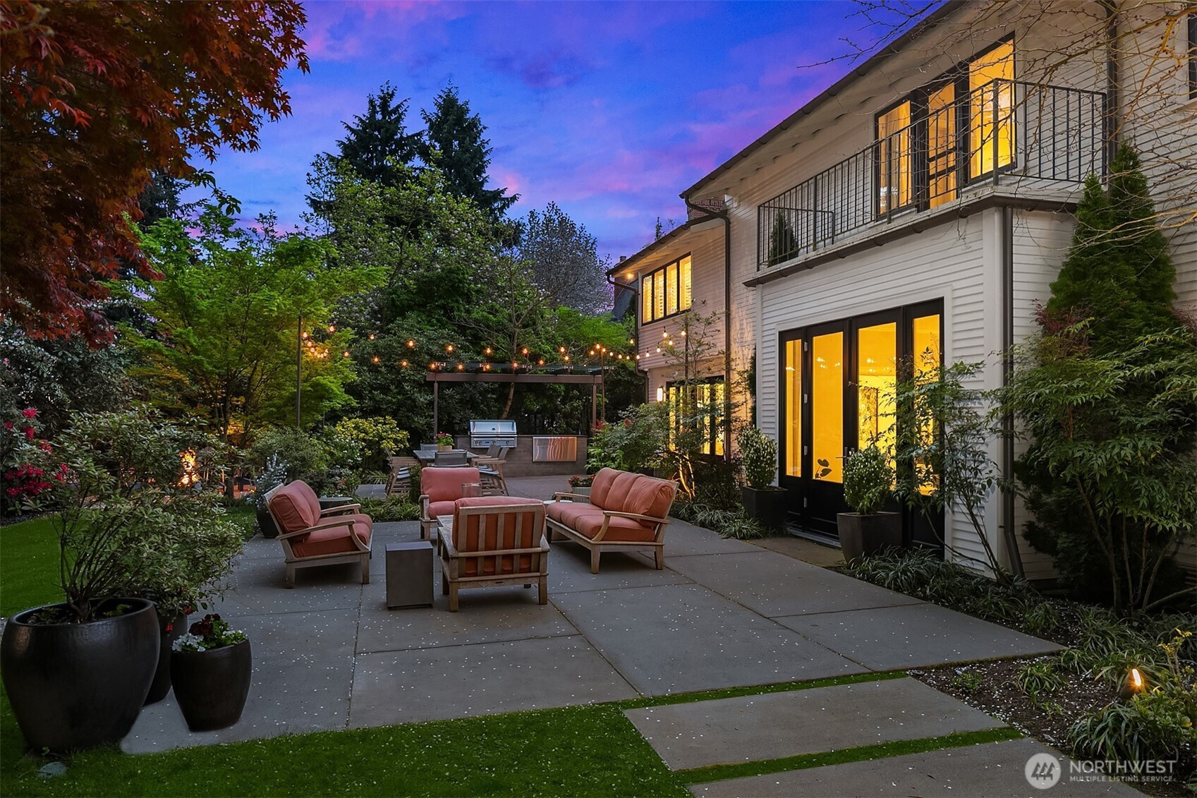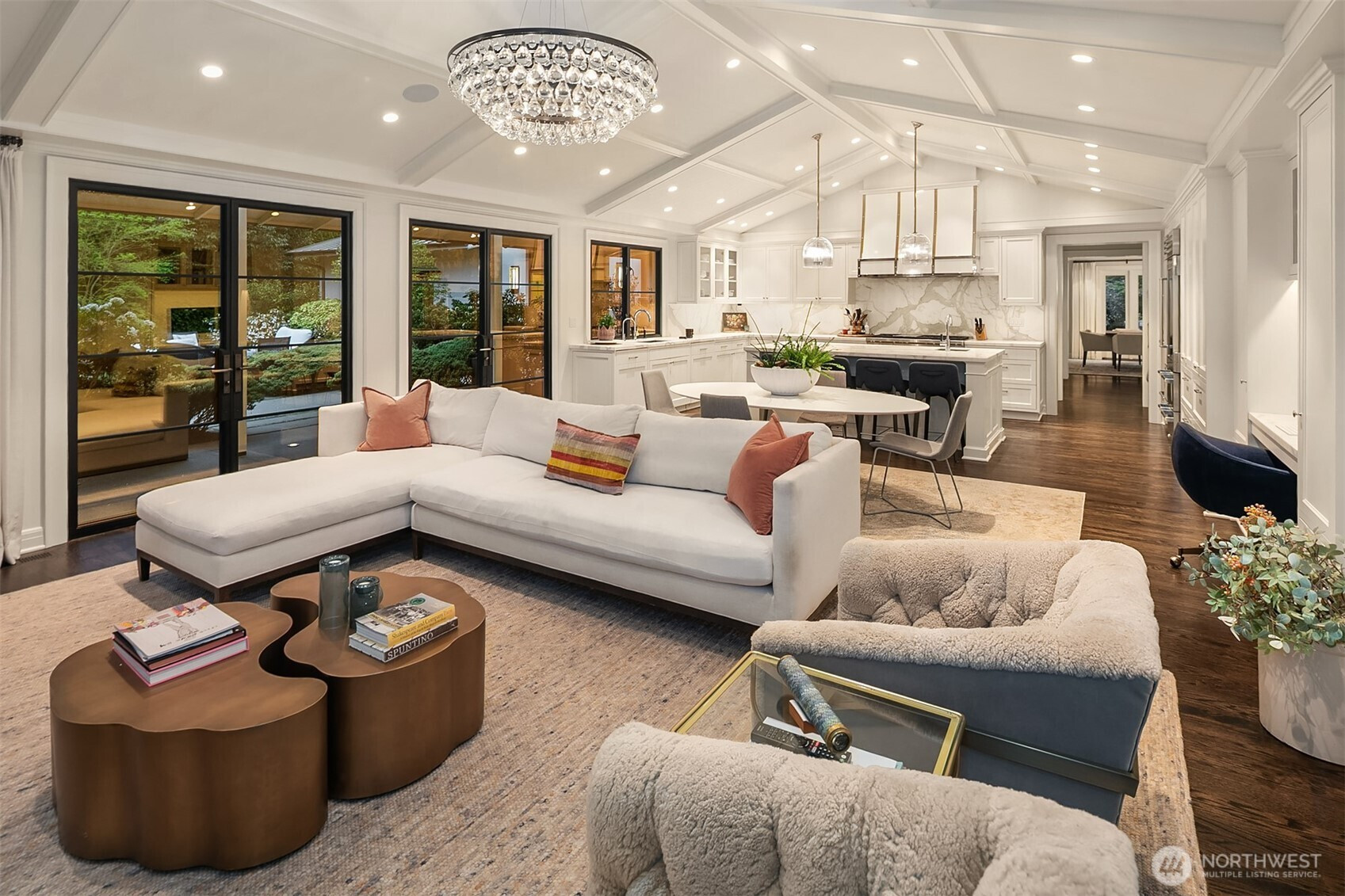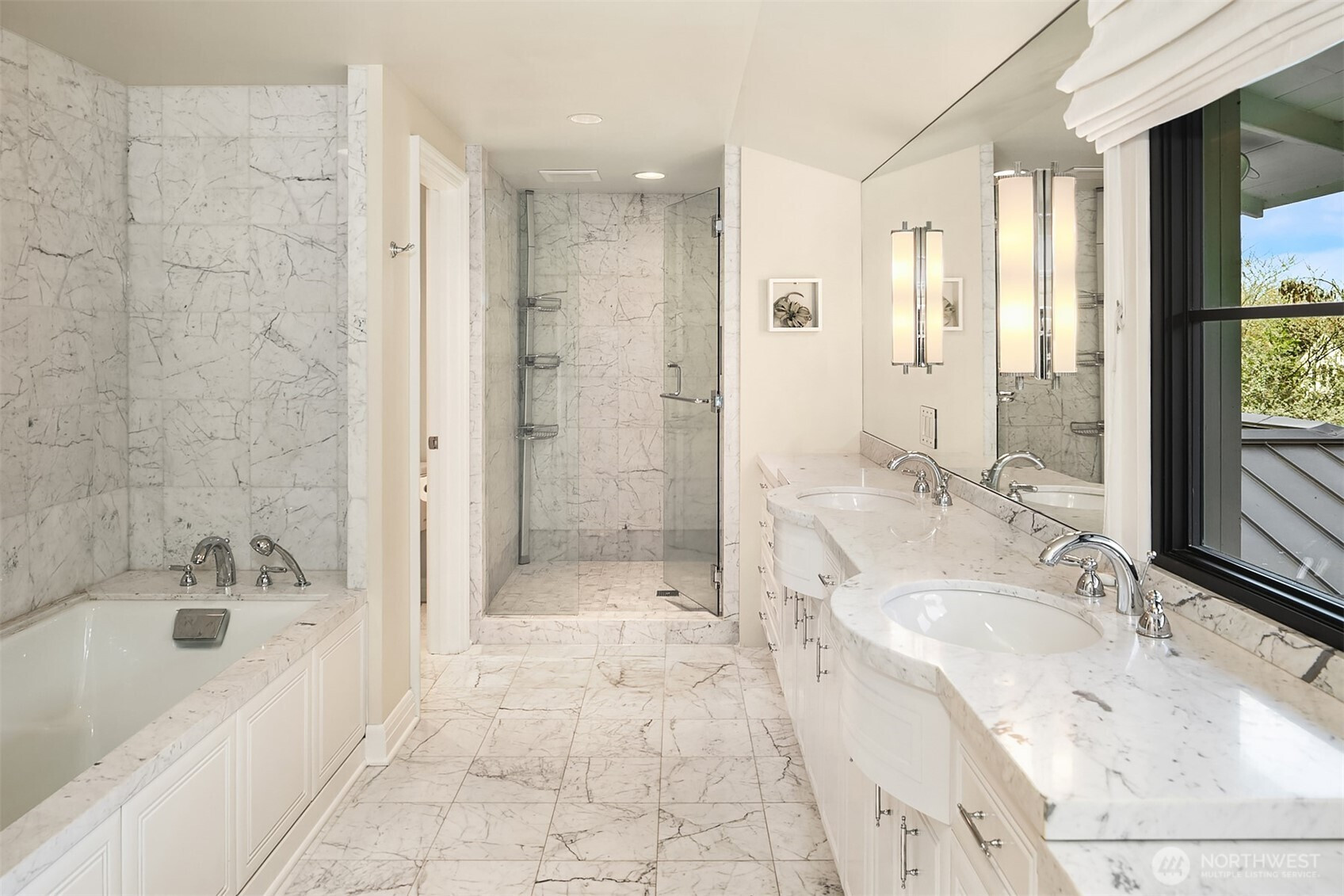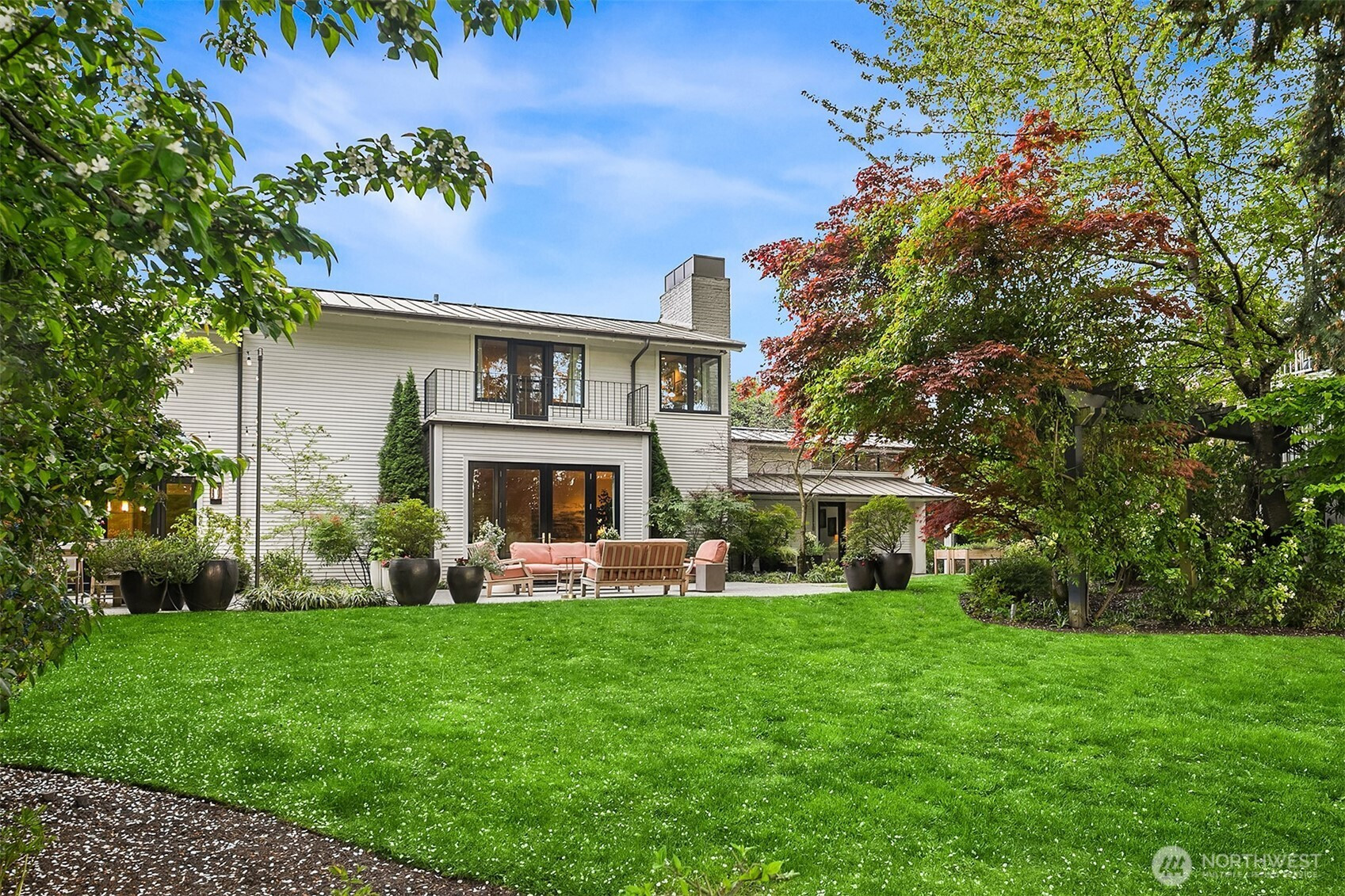 Rarely do grace and elegance converge so seamlessly as in this thoughtfully sited Broadmoor home on a coveted double lot, designed for elevated everyday living and effortless entertaining—where light-filled interiors and curated outdoor spaces unfold in harmony with tranquil golf course vistas and enduring architecture. Defined by clean lines, vaulted ceilings, and walls of windows, it offers a sense of quiet luxury with interiors that feel both refined and inviting. A private courtyard entry creates a warm and gracious arrival, revealing spaces that move naturally from intimate moments to lively gatherings. Formal living and dining rooms and a signature bar set the tone for entertaining, while the sunlit gourmet kitchen with marble counters, professional grade appliances, and casual dining with sitting area opens fluidly to the outdoors. A main-level ensuite bedroom offers flexibility for transitional living. Upstairs, a split staircase introduces both architectural interest and functional separation. Two bedrooms connected by a Jack-and-Jill bath create a private wing, while the primary suite occupies its own retreat—generous in scale and positioned to capture the view, offering a true sense of sanctuary. The lower level offers a bonus room, wine storage, fitness or guest space, bath, and abundant storage. All this in Seattle’s only gated community, moments to the Arboretum, Madison Park, downtown, and SR 520—an exceptional offering of lifestyle, setting, and convenience.