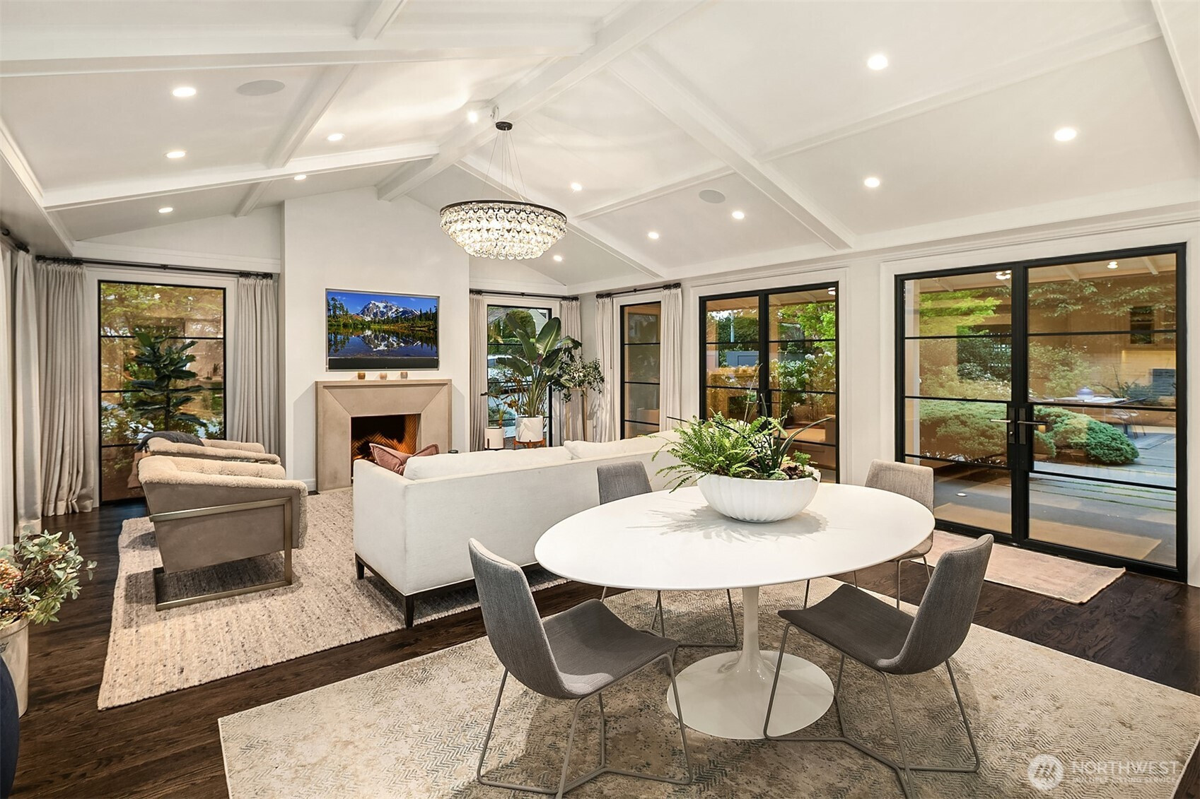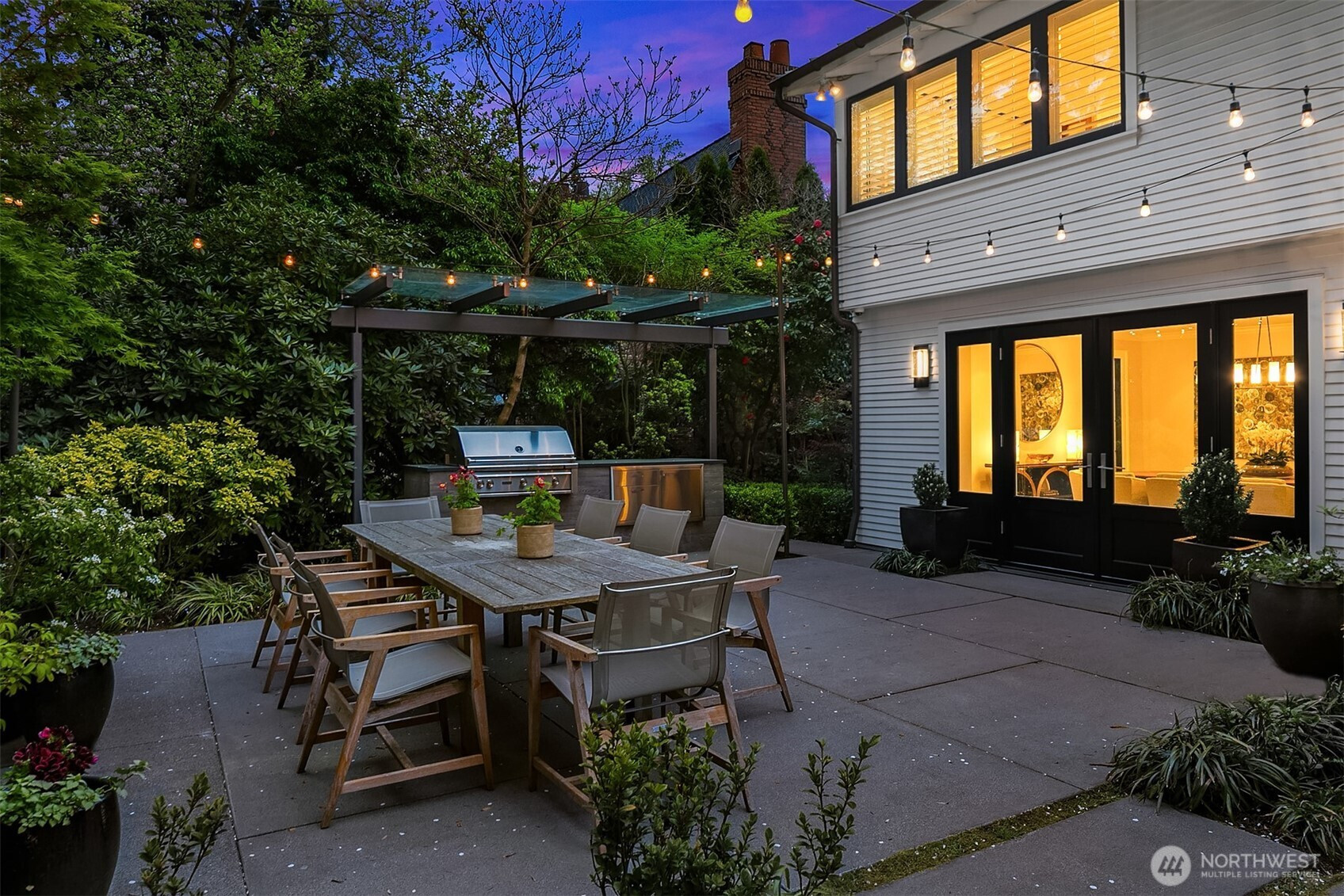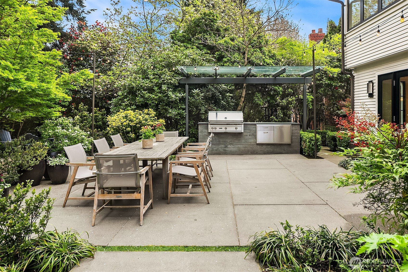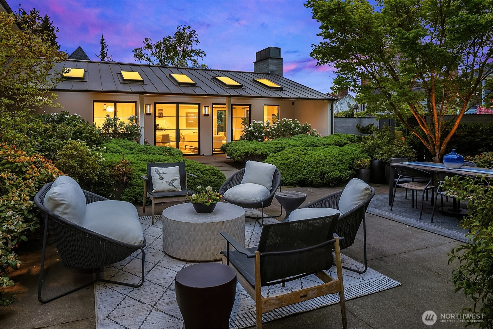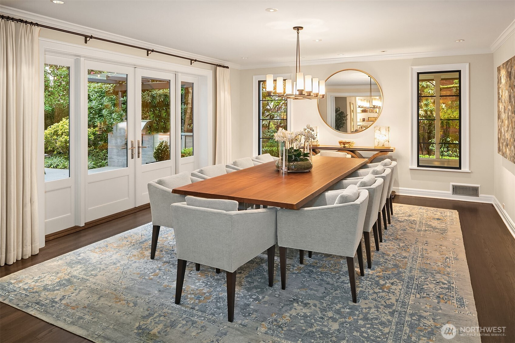 Rarely do grace and elegance converge so seamlessly as in this thoughtfully sited Broadmoor home on a coveted double lot, designed for elevated everyday living and effortless entertaining—where light-filled interiors and curated outdoor spaces unfold in harmony with tranquil golf course vistas and enduring architecture. Defined by clean lines, vaulted ceilings, and walls of windows, it offers a sense of quiet luxury with interiors that feel both refined and inviting. A private courtyard entry creates a warm and gracious arrival, revealing spaces that move naturally from intimate moments to lively gatherings. Formal living and dining rooms and a signature bar set the tone for entertaining, while the sunlit gourmet kitchen with marble counters, professional grade appliances, and casual dining with sitting area opens fluidly to the outdoors. A main-level ensuite bedroom offers flexibility for transitional living. Upstairs, a split staircase introduces both architectural interest and functional separation. Two bedrooms connected by a Jack-and-Jill bath create a private wing, while the primary suite occupies its own retreat—generous in scale and positioned to capture the view, offering a true sense of sanctuary. The lower level offers a bonus room, wine storage, fitness or guest space, bath, and abundant storage. All this in Seattle’s only gated community, moments to the Arboretum, Madison Park, downtown, and SR 520—an exceptional offering of lifestyle, setting, and convenience.