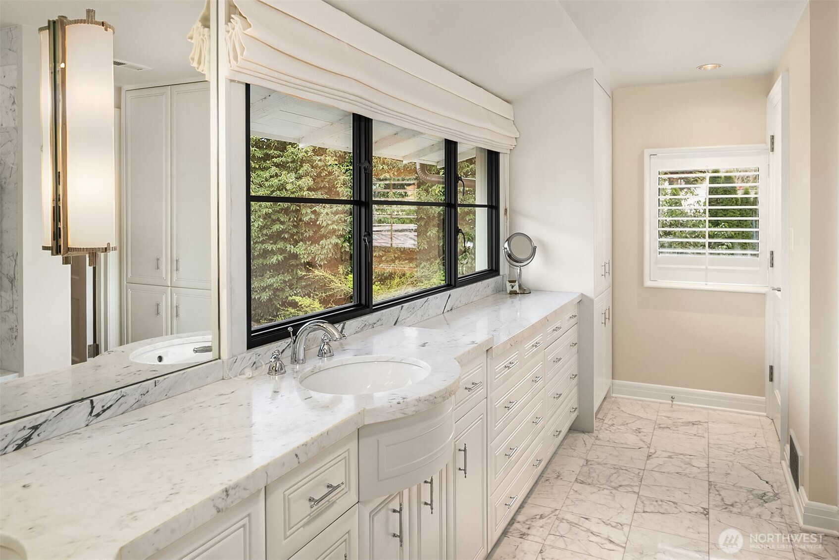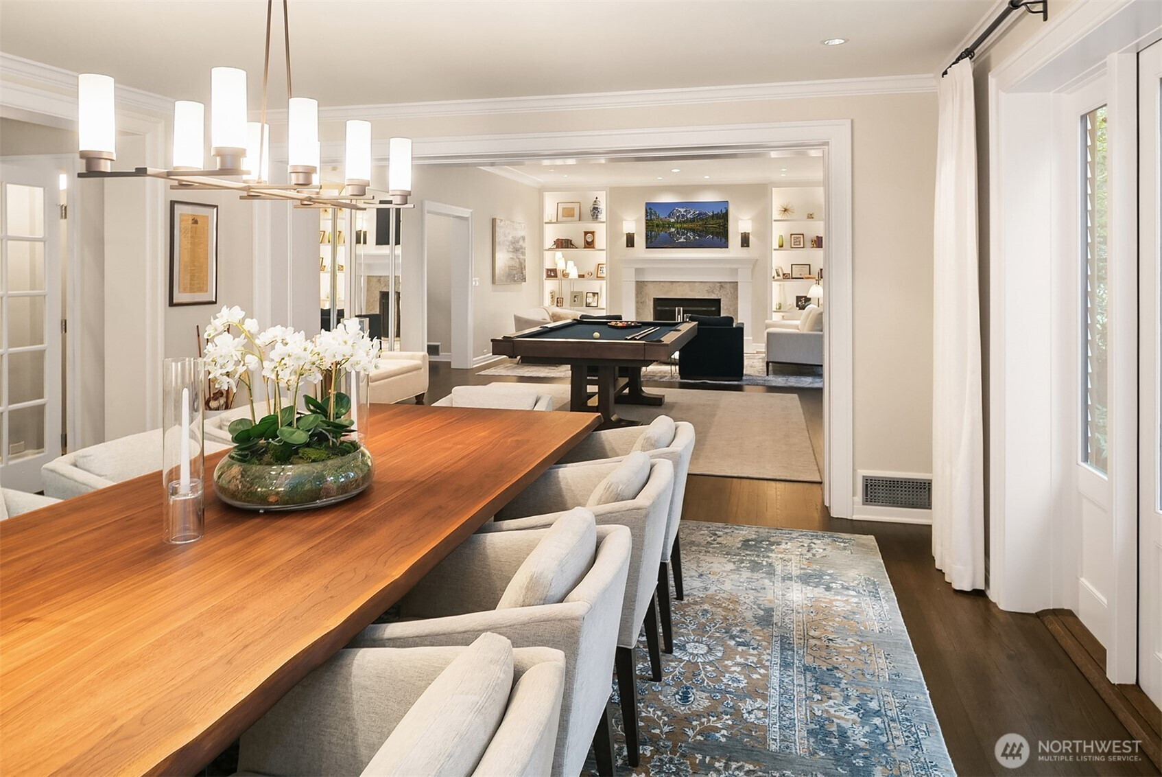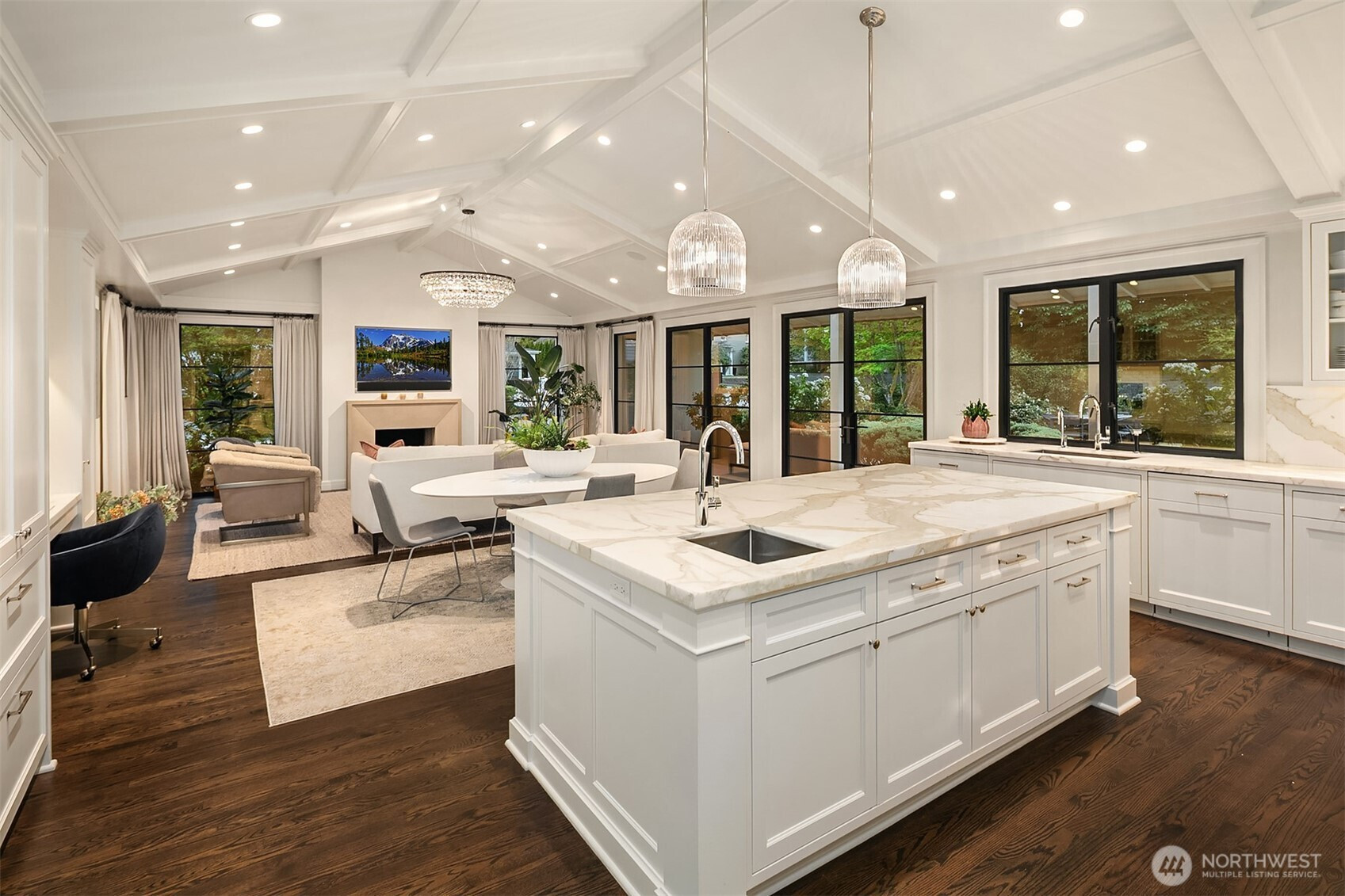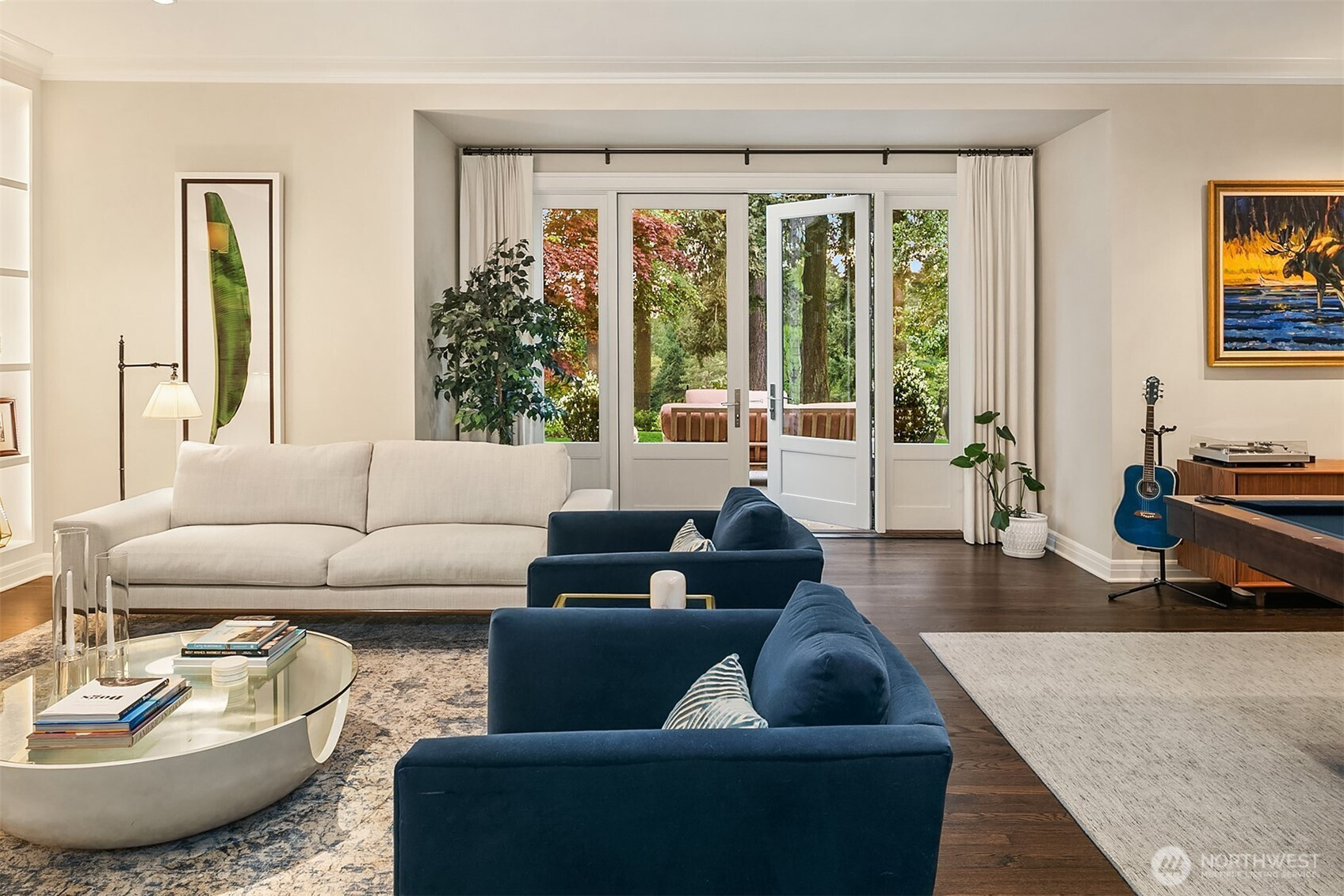 Rarely do grace and elegance converge so seamlessly as in this thoughtfully sited Broadmoor home on a coveted double lot, designed for elevated everyday living and effortless entertaining—where light-filled interiors and curated outdoor spaces unfold in harmony with tranquil golf course vistas and enduring architecture. Defined by clean lines, vaulted ceilings, and walls of windows, it offers a sense of quiet luxury with interiors that feel both refined and inviting. A private courtyard entry creates a warm and gracious arrival, revealing spaces that move naturally from intimate moments to lively gatherings. Formal living and dining rooms and a signature bar set the tone for entertaining, while the sunlit gourmet kitchen with marble counters, professional grade appliances, and casual dining with sitting area opens fluidly to the outdoors. A main-level ensuite bedroom offers flexibility for transitional living. Upstairs, a split staircase introduces both architectural interest and functional separation. Two bedrooms connected by a Jack-and-Jill bath create a private wing, while the primary suite occupies its own retreat—generous in scale and positioned to capture the view, offering a true sense of sanctuary. The lower level offers a bonus room, wine storage, fitness or guest space, bath, and abundant storage. All this in Seattle’s only gated community, moments to the Arboretum, Madison Park, downtown, and SR 520—an exceptional offering of lifestyle, setting, and convenience.