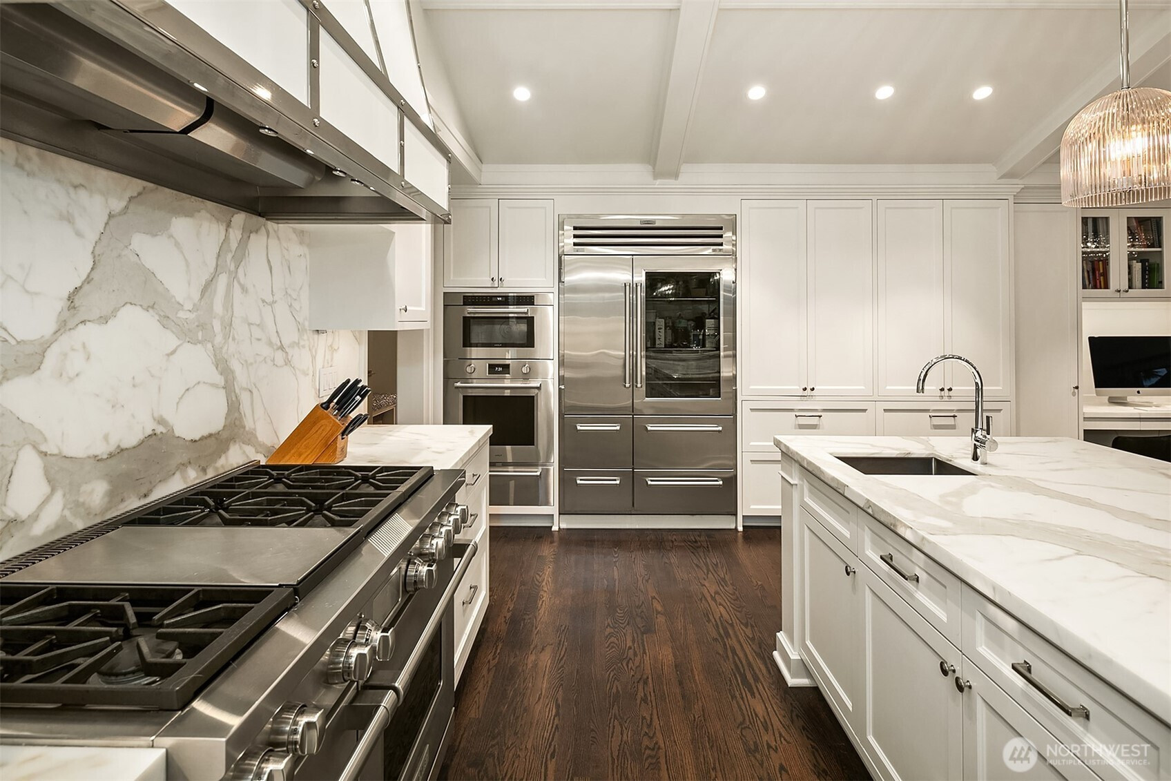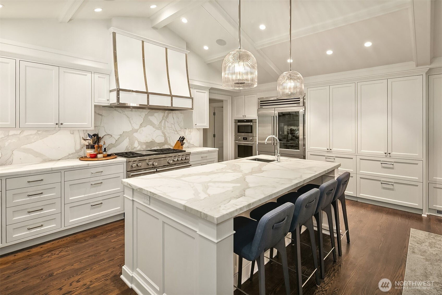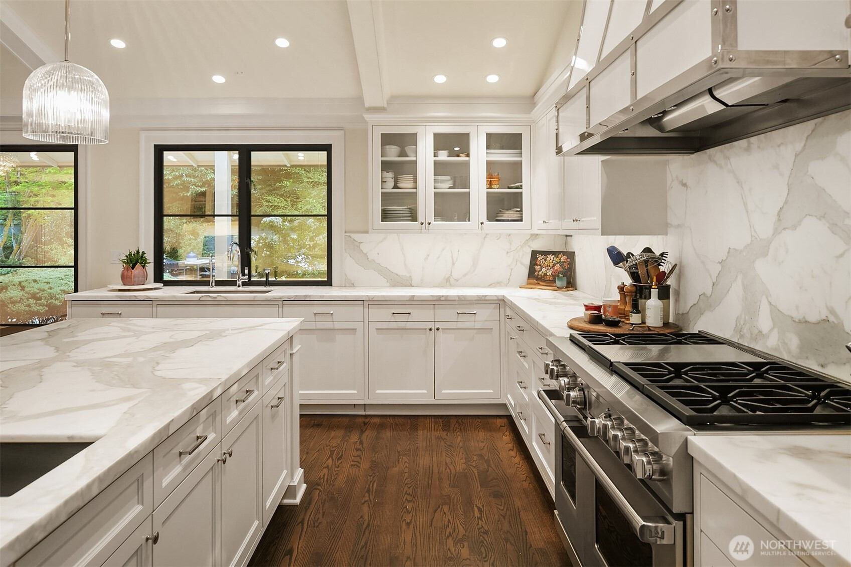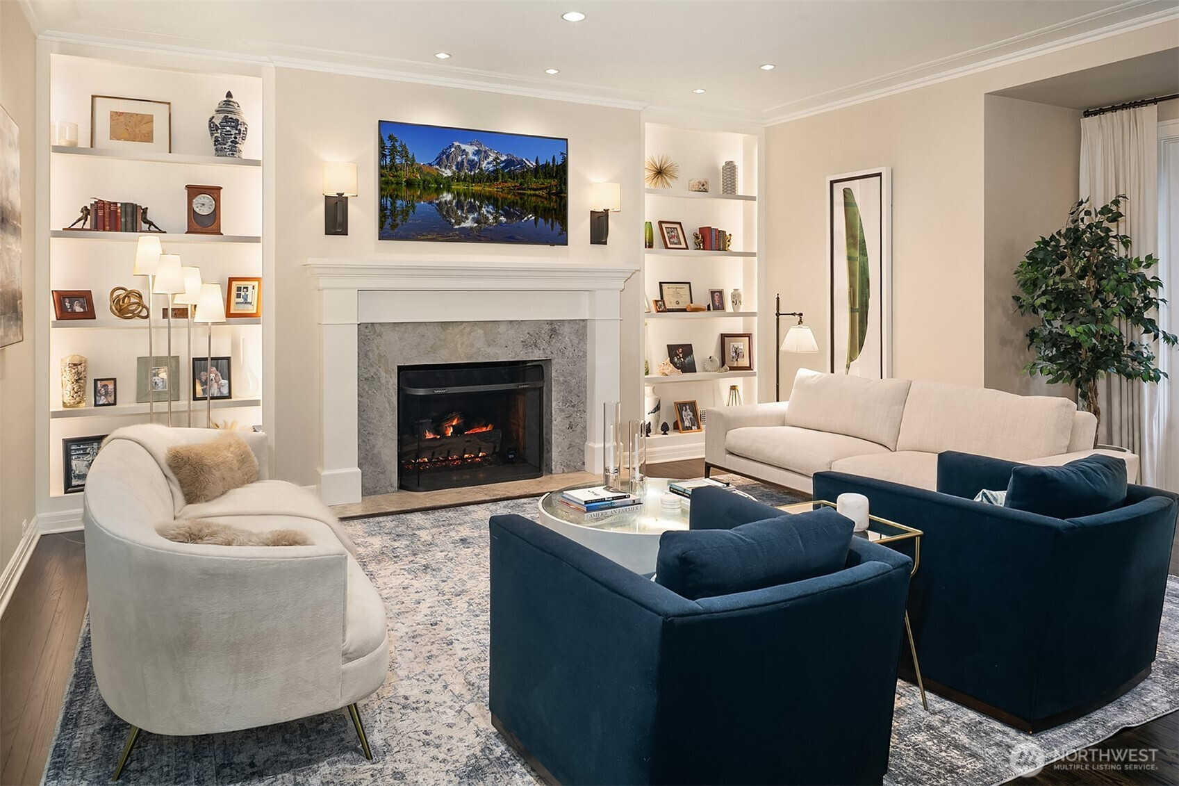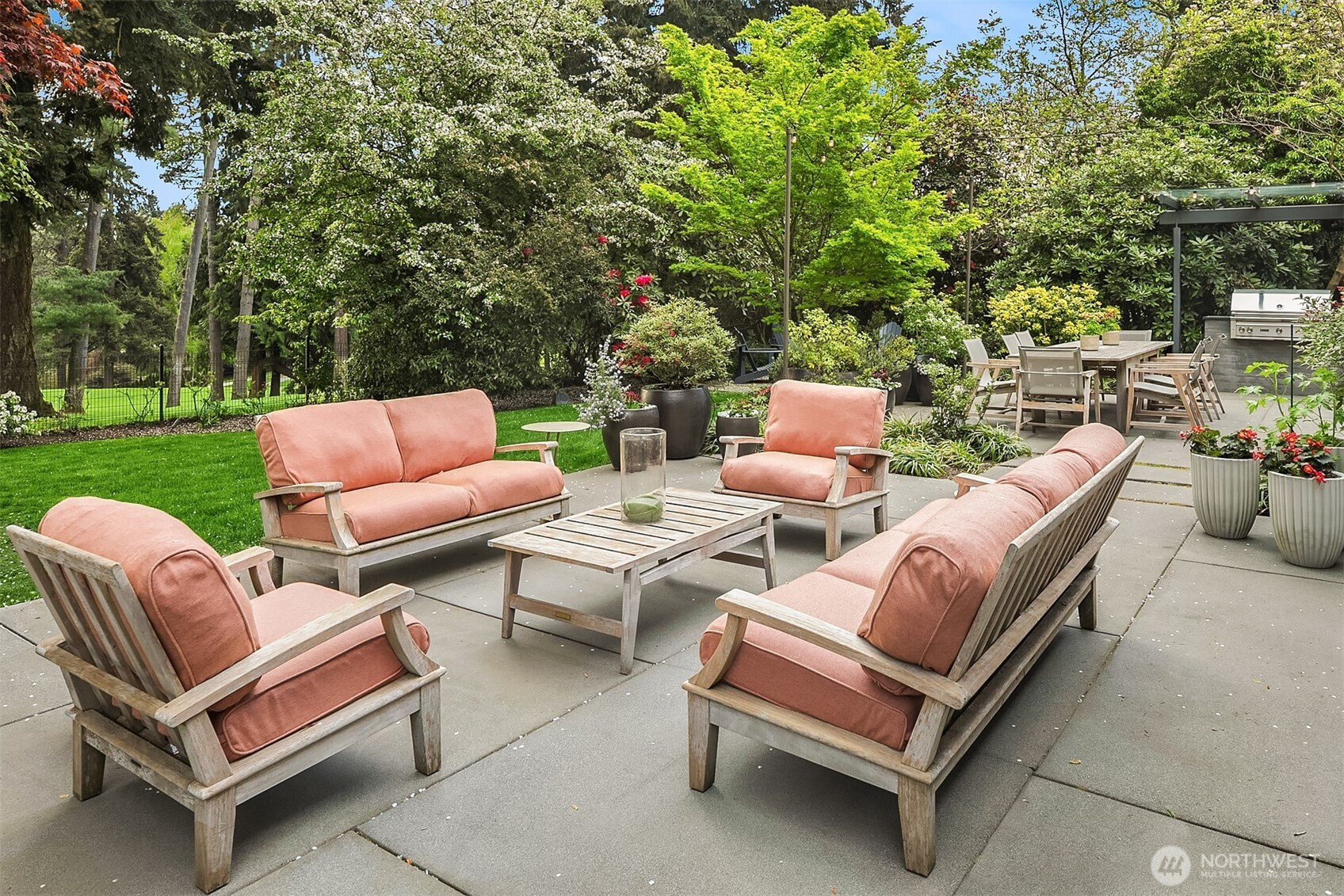 Rarely do grace and elegance converge so seamlessly as in this thoughtfully sited Broadmoor home on a coveted double lot, designed for elevated everyday living and effortless entertaining—where light-filled interiors and curated outdoor spaces unfold in harmony with tranquil golf course vistas and enduring architecture. Defined by clean lines, vaulted ceilings, and walls of windows, it offers a sense of quiet luxury with interiors that feel both refined and inviting. A private courtyard entry creates a warm and gracious arrival, revealing spaces that move naturally from intimate moments to lively gatherings. Formal living and dining rooms and a signature bar set the tone for entertaining, while the sunlit gourmet kitchen with marble counters, professional grade appliances, and casual dining with sitting area opens fluidly to the outdoors. A main-level ensuite bedroom offers flexibility for transitional living. Upstairs, a split staircase introduces both architectural interest and functional separation. Two bedrooms connected by a Jack-and-Jill bath create a private wing, while the primary suite occupies its own retreat—generous in scale and positioned to capture the view, offering a true sense of sanctuary. The lower level offers a bonus room, wine storage, fitness or guest space, bath, and abundant storage. All this in Seattle’s only gated community, moments to the Arboretum, Madison Park, downtown, and SR 520—an exceptional offering of lifestyle, setting, and convenience.