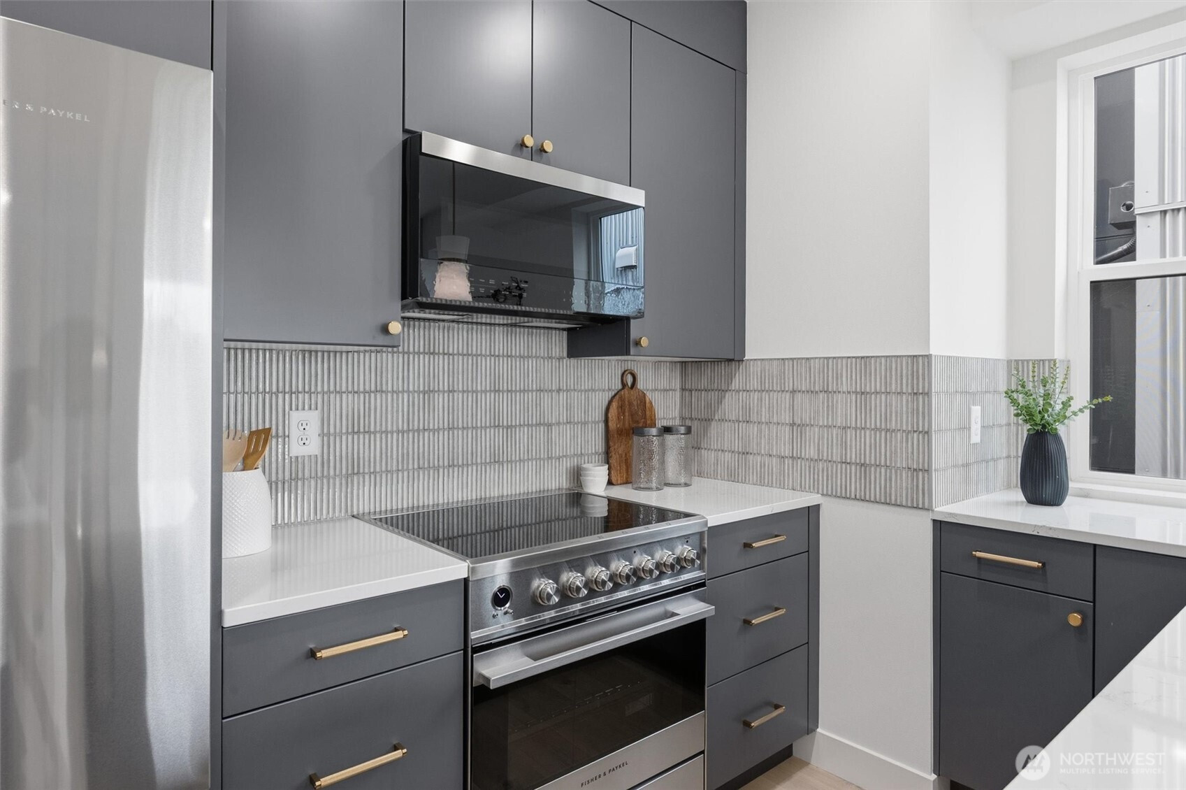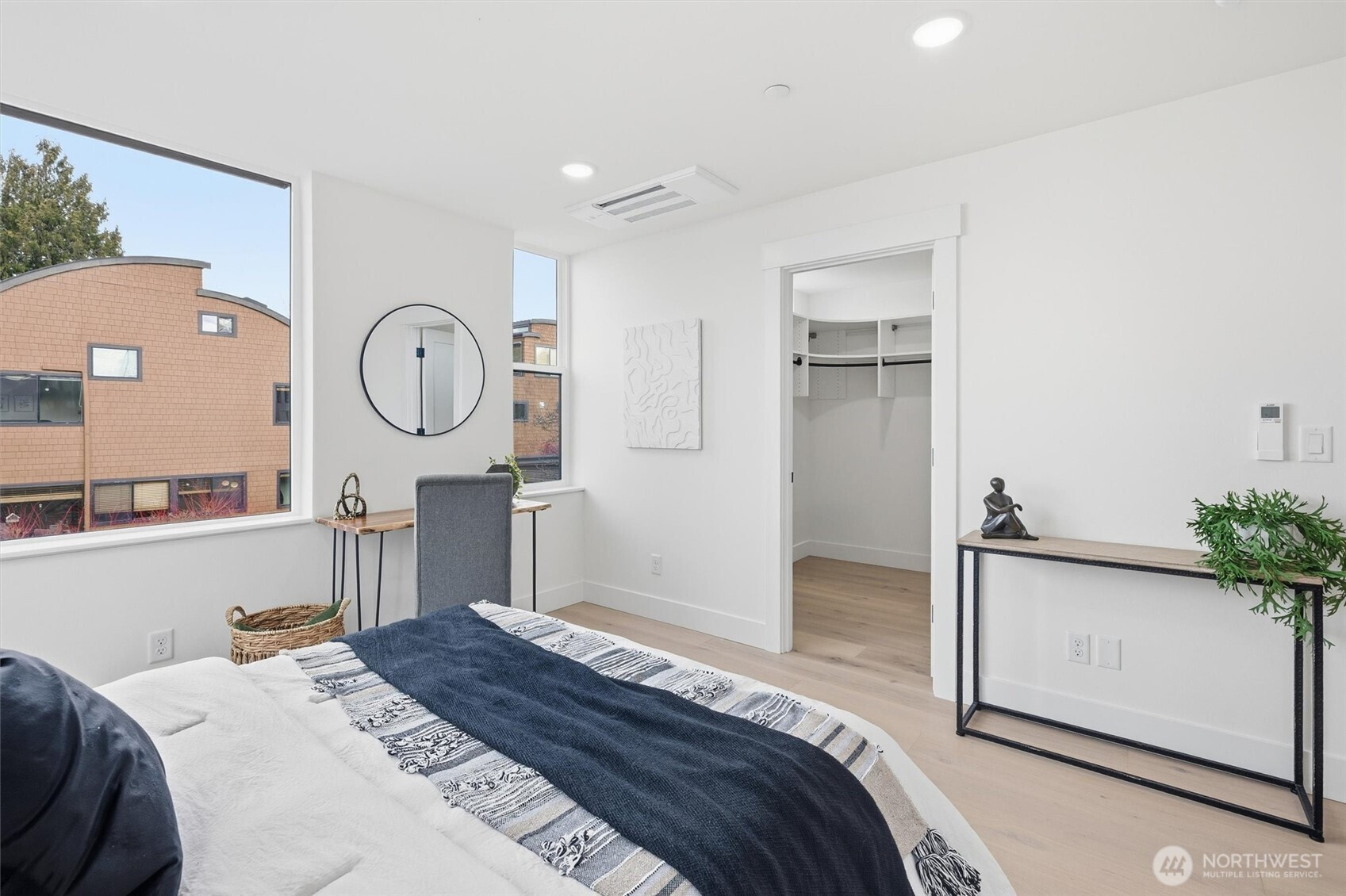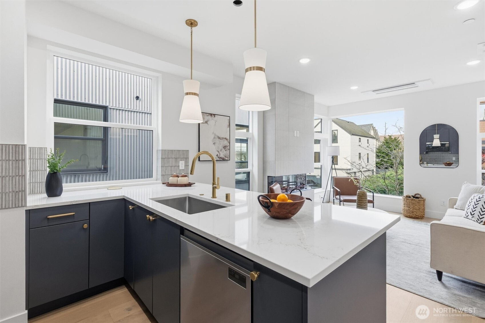 Positioned in the heart of Eastlake, this 2 bed, 2.5 bath residence at Harbor 26 offers 1,307 sqft of well-balanced living with a focus on comfort and function. The open-concept main level connects living, dining, and kitchen spaces seamlessly, with clean lines, modern finishes, and thoughtful design throughout. Both bedrooms are generously sized, each with its own bath, while the additional powder room adds everyday convenience. Above it all, a private rooftop deck captures expansive views of Lake Union and the Seattle skyline—an elevated extension of your living space. Located within a gated community and complete with secured garage parking, this home delivers a quieter, more refined take on waterfront-adjacent living. Crafted by DEP Homes Eastlake, known for consistent quality and intentional design.