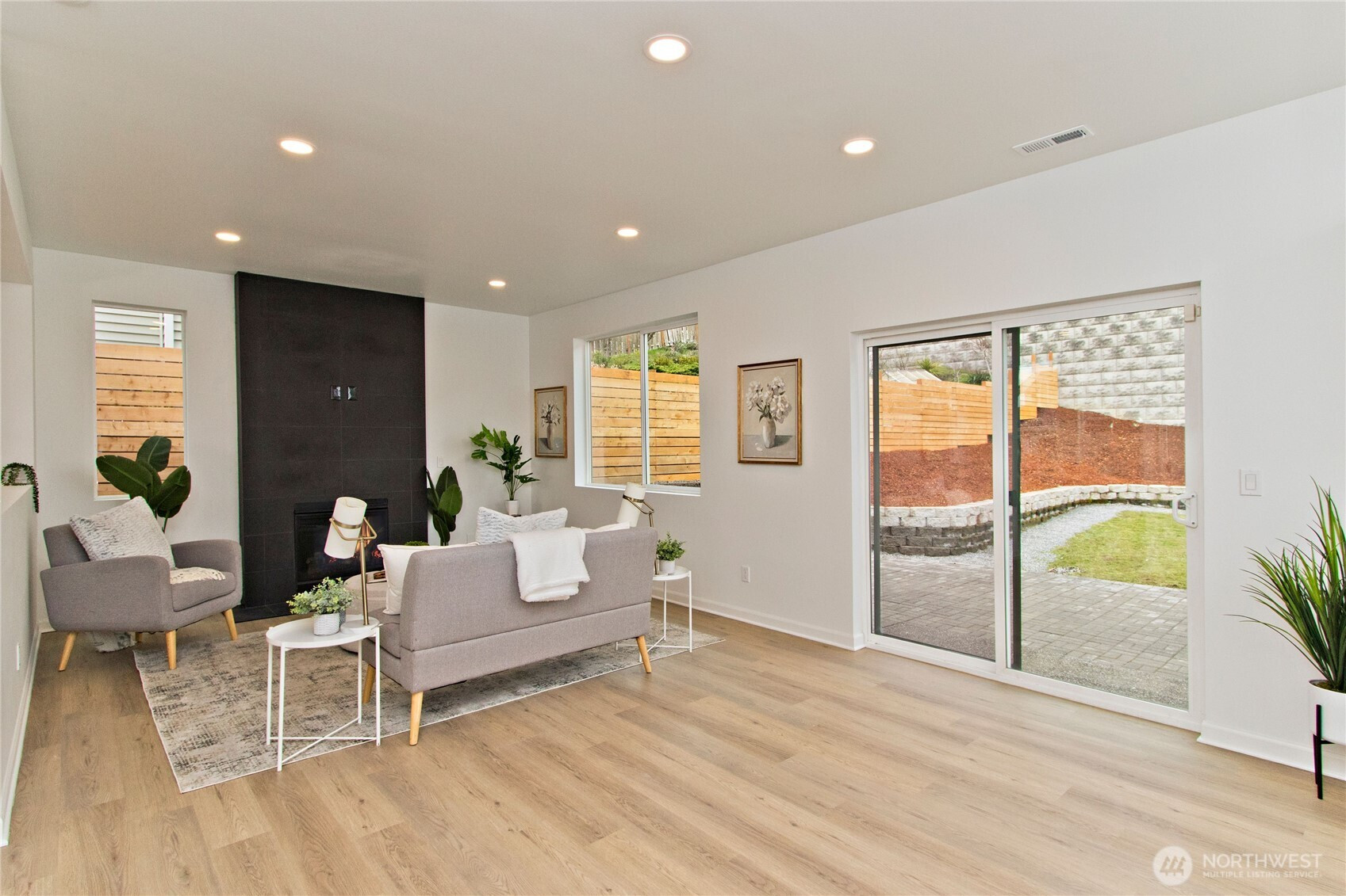 Stunning 1,620 SqFt home featuring 3 bedrooms and 2.5 baths. Step inside and fall in love with the open floor plan, vaulted ceilings, and designer finishes throughout. The main floor offers a spacious family room and dining area plus a beautiful living room with a tiled surround fireplace open to the brand-new kitchen featuring white cabinetry, quartz countertops, and stainless steel appliances. Head upstairs to the spacious primary bedroom with a large walk-in closet and private bath featuring a new quartz vanity and tiled tub surround. The second floor also features 9’ ceilings, two additional bedrooms, and a versatile bonus area. The main bath includes a new vanity and tiled tub surround. Additional upgrades include new flooring throughout, fresh interior paint, updated lighting, and modern fixtures. Enjoy the oversized back patio and fully fenced yard, perfect for entertaining. Conveniently located near schools, shopping, amenities, and easy access to Hwy 167 & 405.