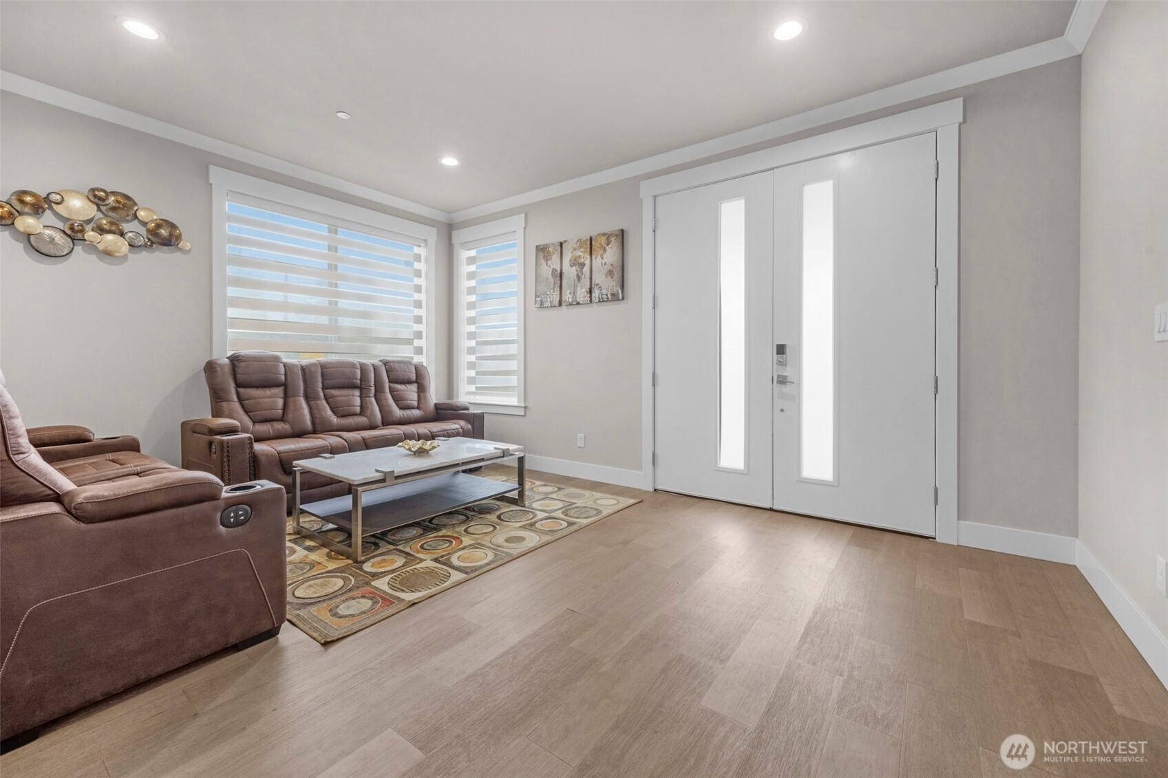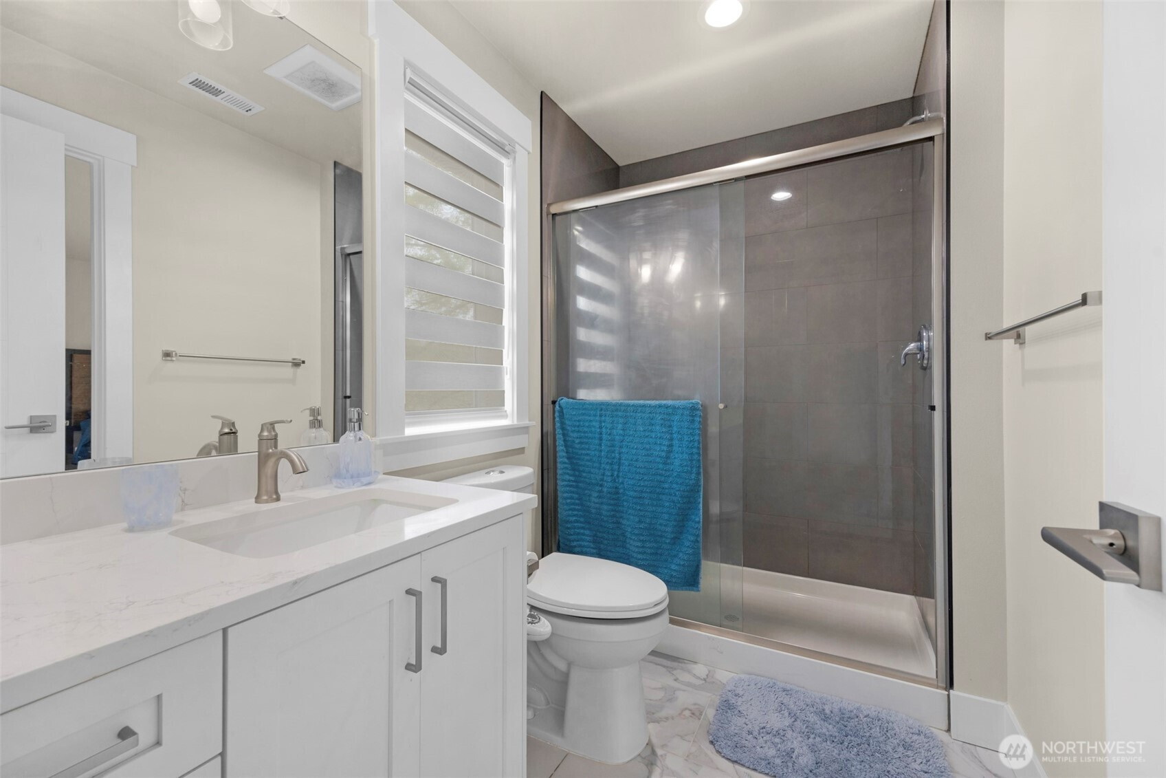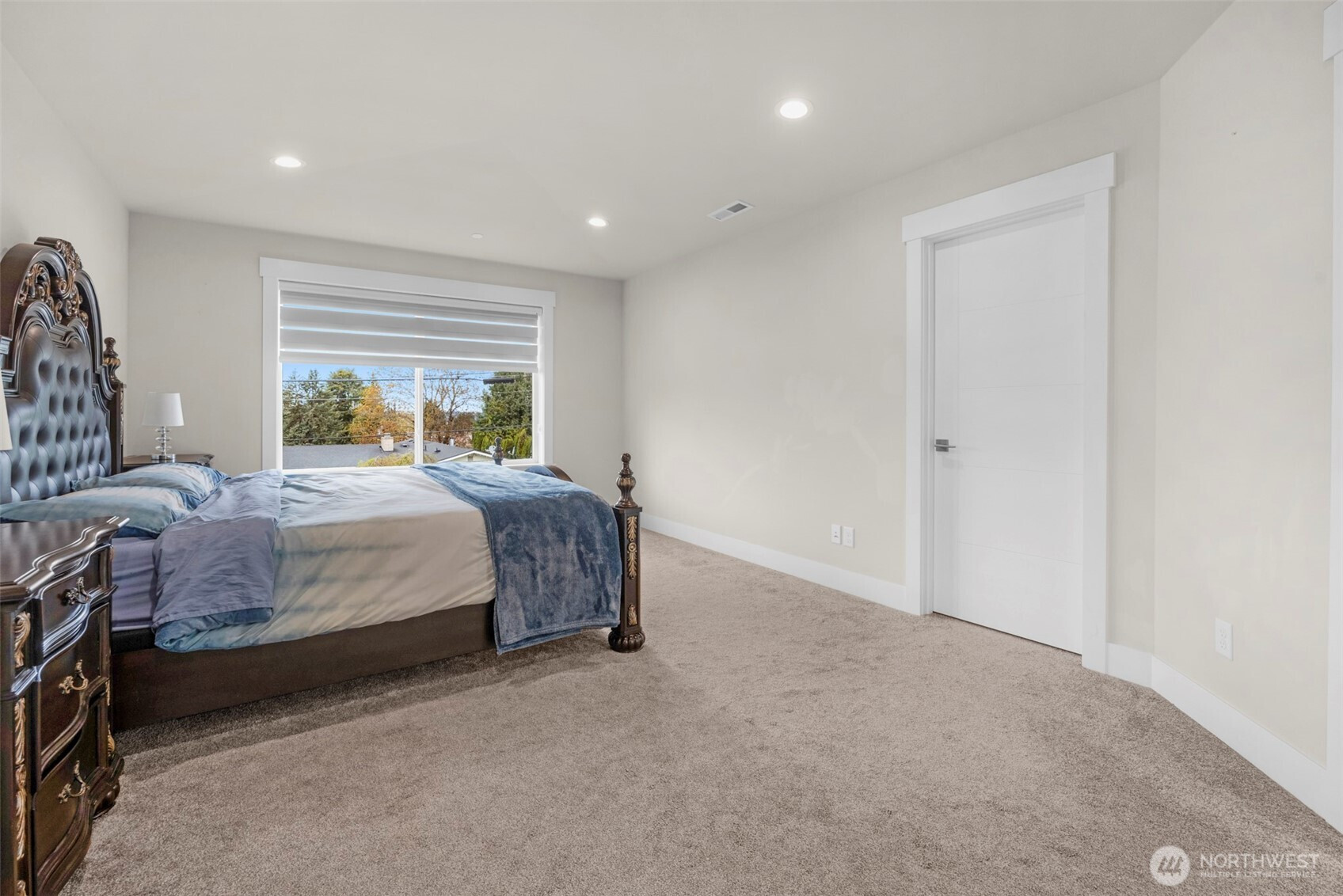 Modern elegance meets practical convenience—your dream home awaits! Tucked away yet within walking distance of the community center, shopping, city amenities, and a gym, this home offers it all. It features five bedrooms, each with its own bathroom. The open-concept kitchen includes a separate "spice kitchen" to keep cooking aromas contained. The main floor bedroom includes a 3/4 bathroom and views of the spacious backyard, which offers plenty of room for play, entertaining, and even RV parking. Located just 5 minutes from Hwy 167 and I-405, you are within 20 minutes of downtown Seattle, Bellevue, and SeaTac Airport. This is a must-see home!