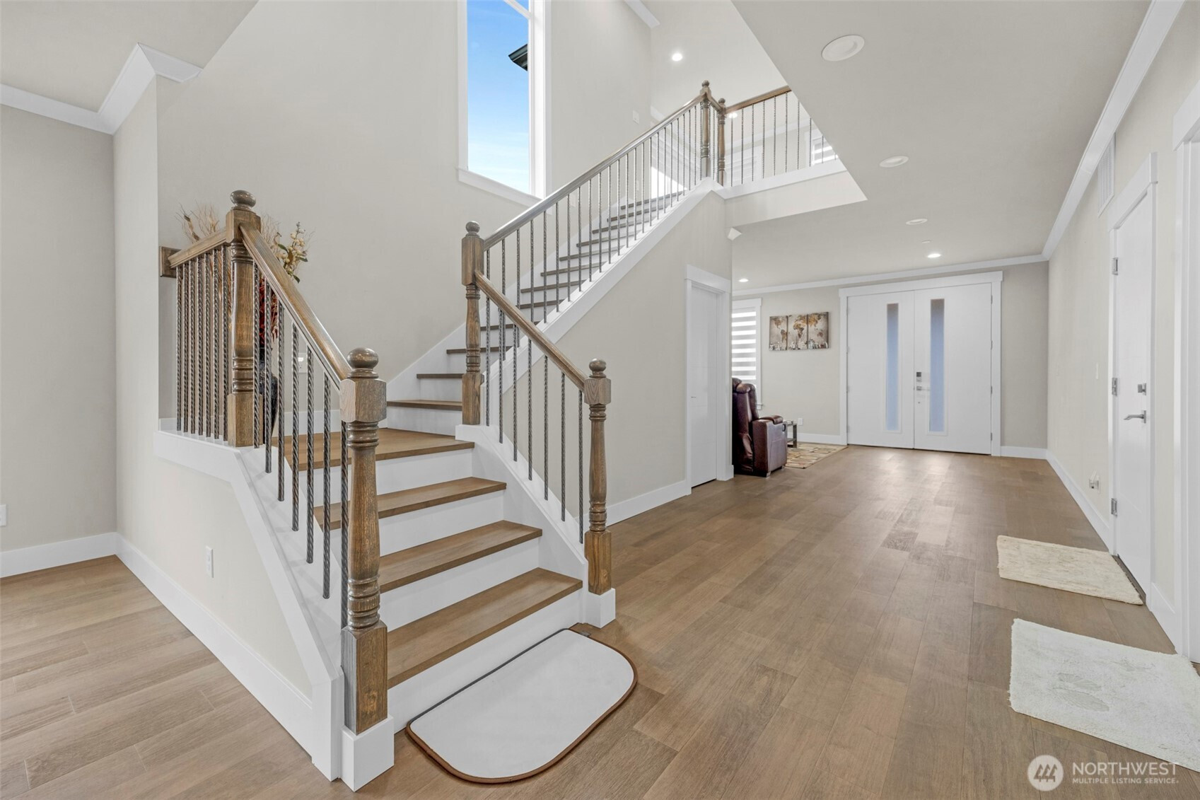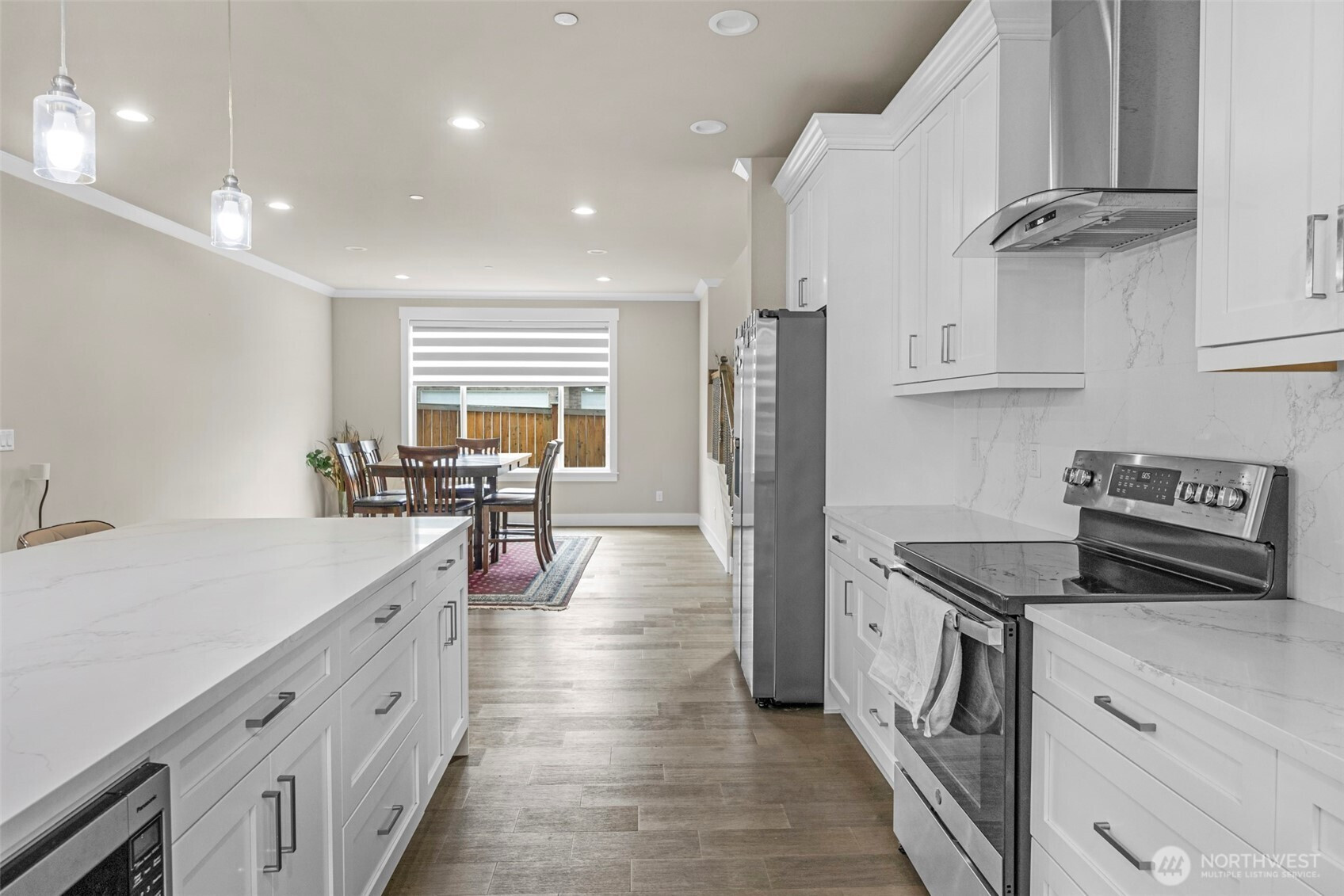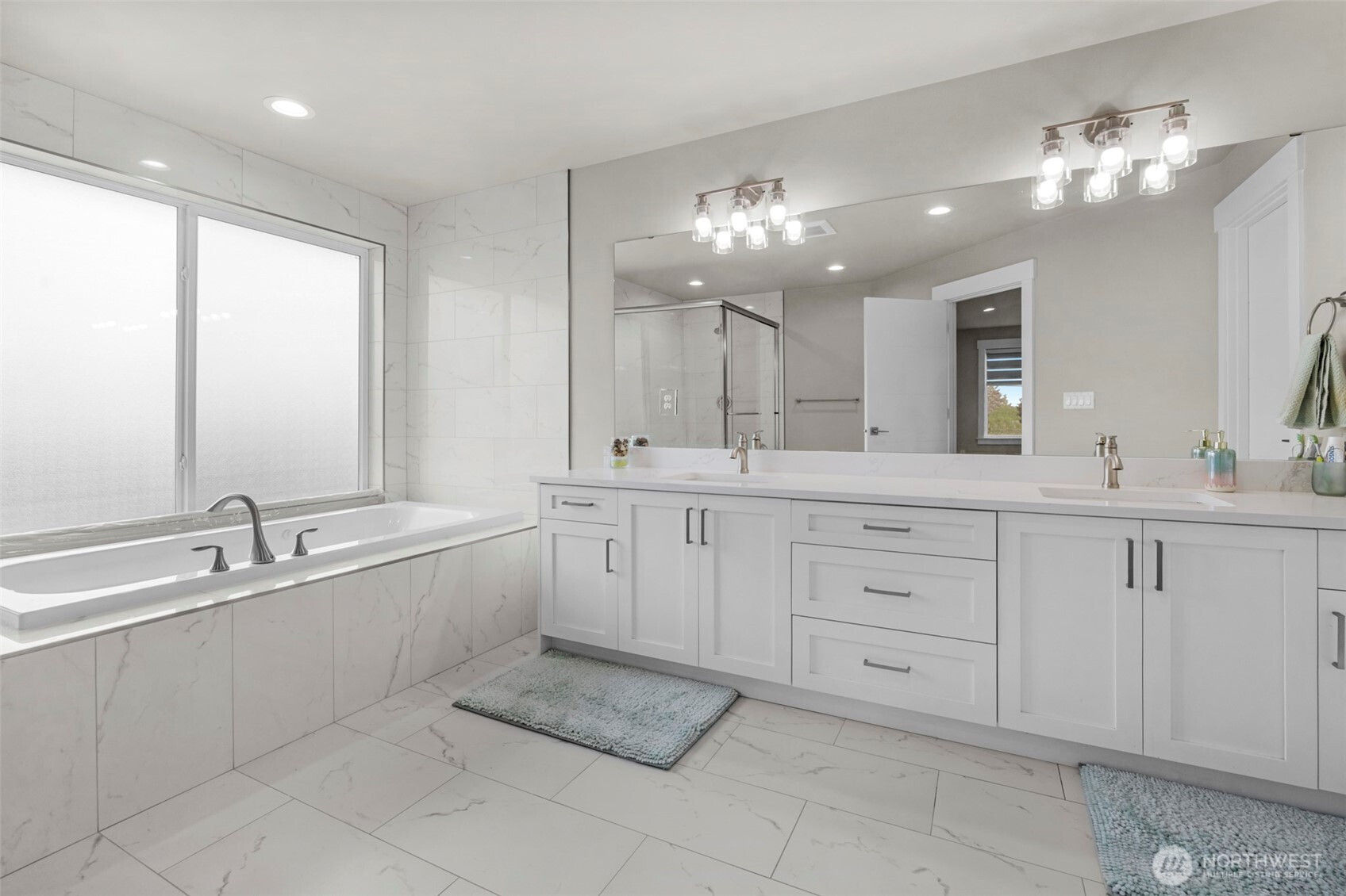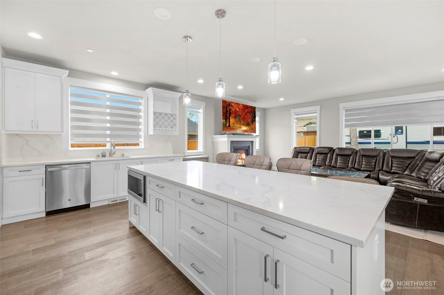 Modern elegance meets practical convenience—your dream home awaits! Tucked away yet within walking distance of the community center, shopping, city amenities, and a gym, this home offers it all. It features five bedrooms, each with its own bathroom. The open-concept kitchen includes a separate "spice kitchen" to keep cooking aromas contained. The main floor bedroom includes a 3/4 bathroom and views of the spacious backyard, which offers plenty of room for play, entertaining, and even RV parking. Located just 5 minutes from Hwy 167 and I-405, you are within 20 minutes of downtown Seattle, Bellevue, and SeaTac Airport. This is a must-see home!