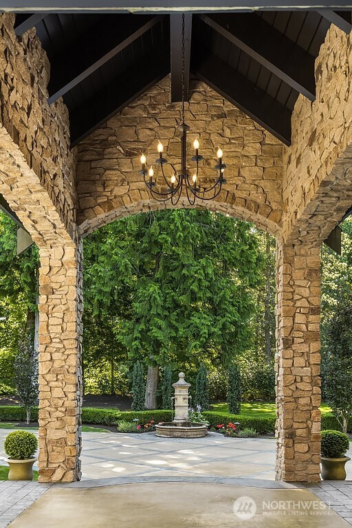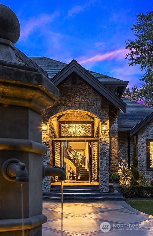 (503) 893-8874This gated, private Estate blends refined craftsmanship with modern elegance. Granite façade, leaded glass entry, and Renaissance water feature create grand first impression. Inside, soaring ceilings, curved floating staircase, herringbone hardwoods, and striking millwork define luxurious living. Primary spa bath w/Grecian marble shower, clawfoot tub, and heated travertine floors. Chef’s kitchen w/Calacatta marble island, mother-of-pearl backsplash, and Bertazzoni gas range extends to breathtaking grounds. Seamless indoor/outdoor flow to entertainment terrace, firepit, heated pool, pool house bath, and stone cabana. Moments from Woodinville’s top schools and wine country, this Estate offers elevated living in a truly exceptional setting.