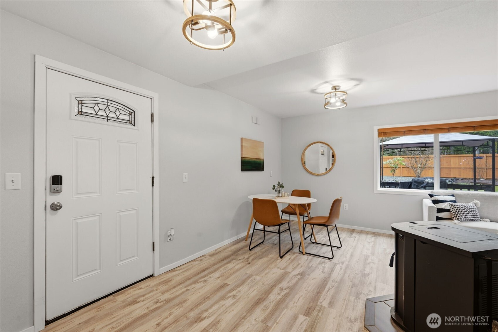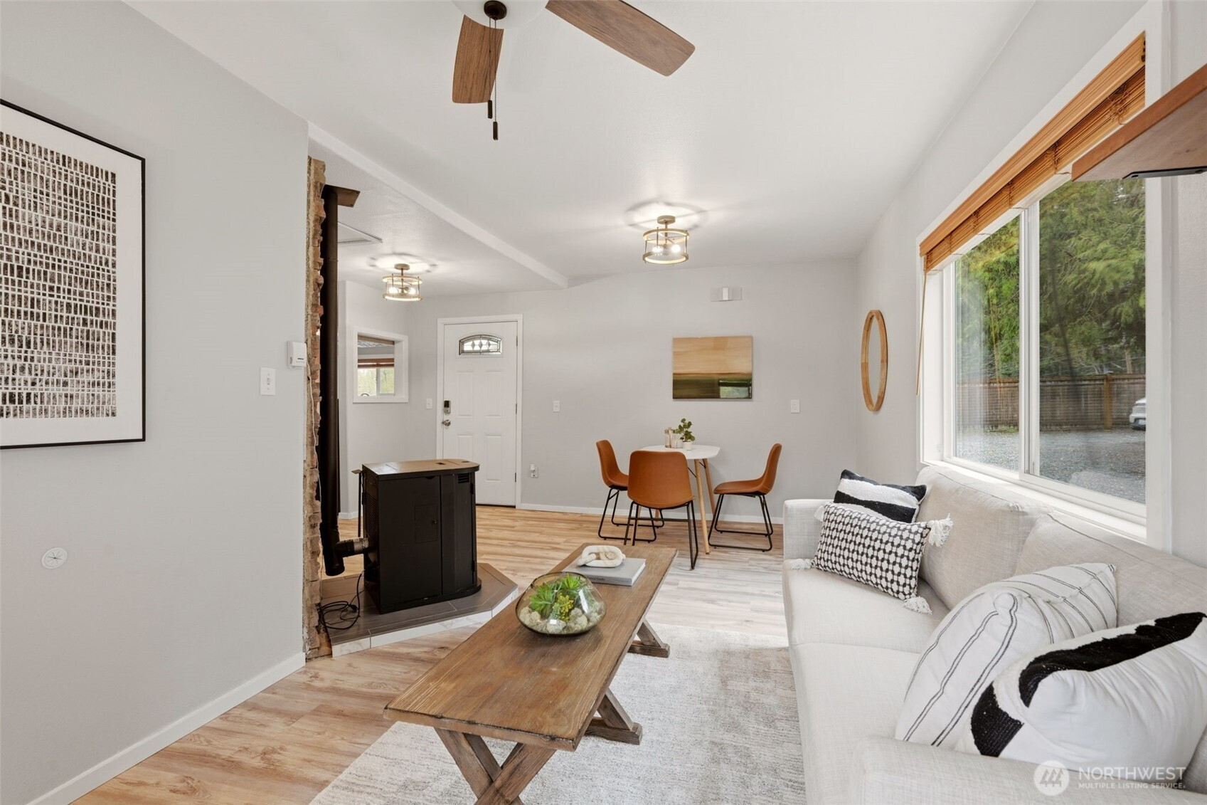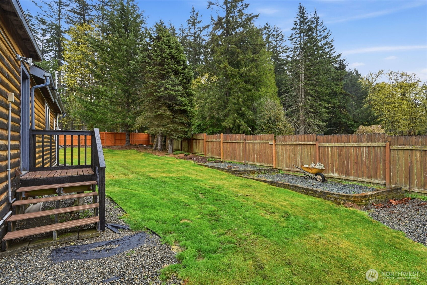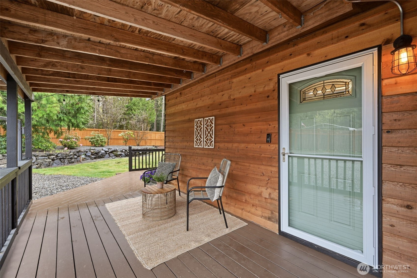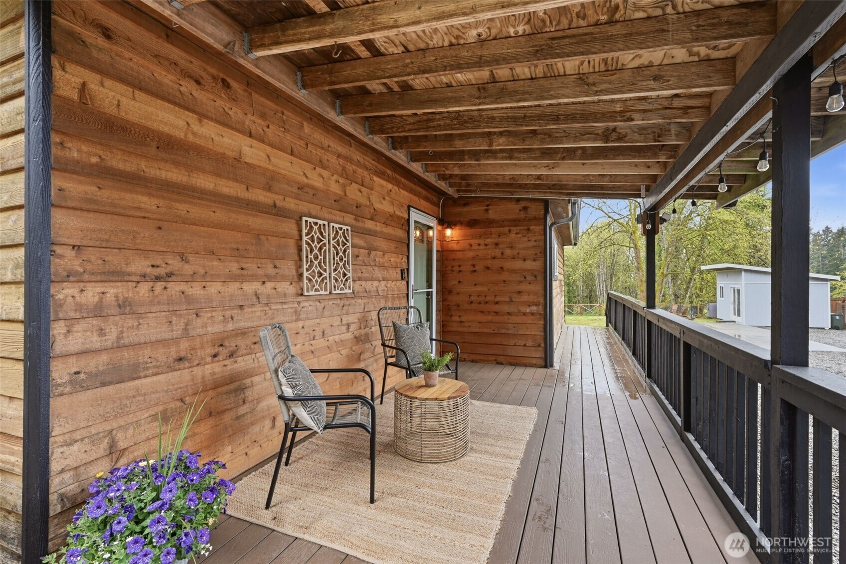 Welcome to your cozy cabin in the city. Wrapped in cedar siding and framed by towering evergreens, this 2-bed, 1-bath Kent retreat sits on 1.463 acres across two separate tax parcels — room to spread out and still have green space to spare. The covered wraparound deck with exposed beam ceiling and string lights sets the tone instantly — whether it's morning coffee, an evening around the fire pit, or simply soaking in the peaceful surroundings. The fully fenced backyard offers room to roam, the expansive gravel lot handles RV, boat, and trailer parking with ease, and a detached outbuilding adds storage or workspace. Inside, fresh LVP flooring, granite countertops, stainless appliances, a spa-inspired bath, and knotty pine barn doors make it warm and move-in ready. Immaculately maintained and lovingly cared for, every detail has been tended to. The pellet stove keeps you cozy all winter long. Steps from Lake Youngs Reservoir and miles of trails, yet minutes from shopping, dining, and commuter routes. Properties like this — truly one of a kind — rarely come to market. City convenience. Don't miss out on this one!