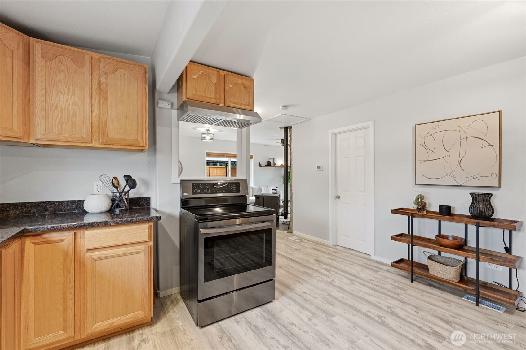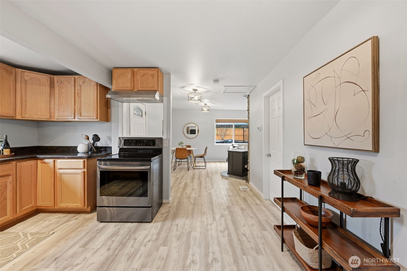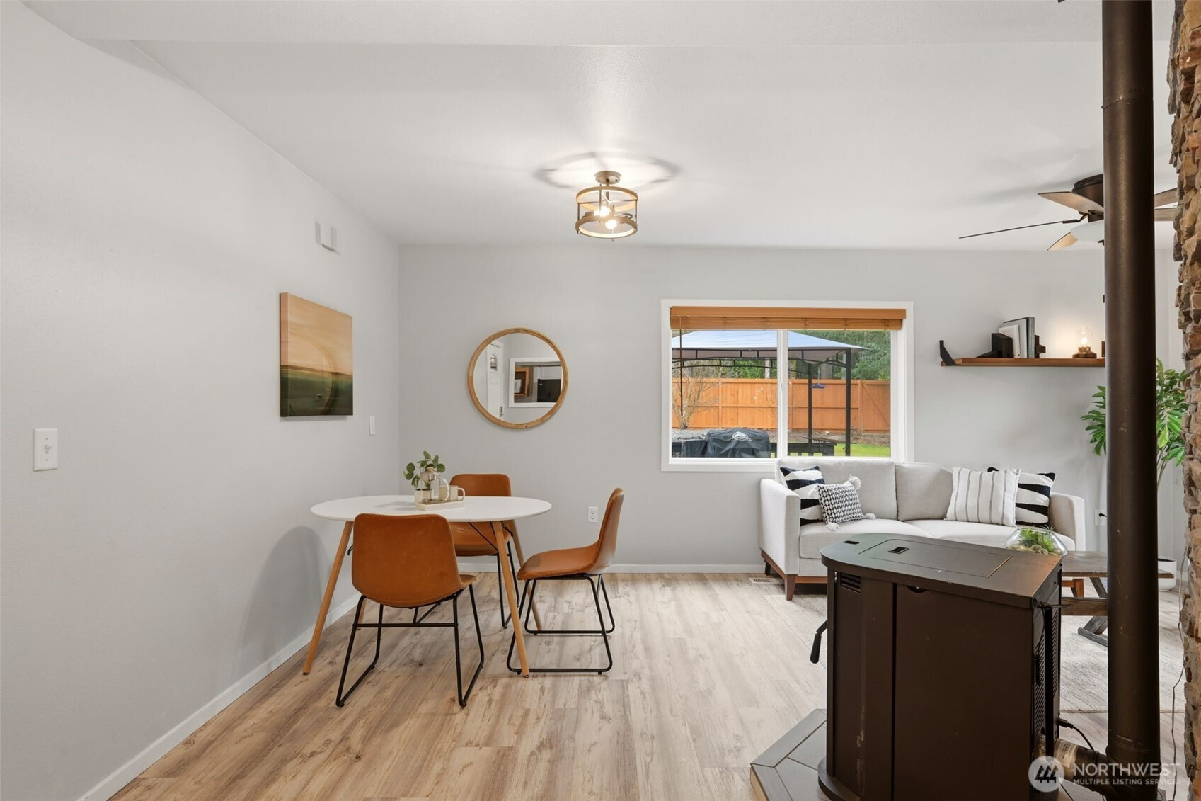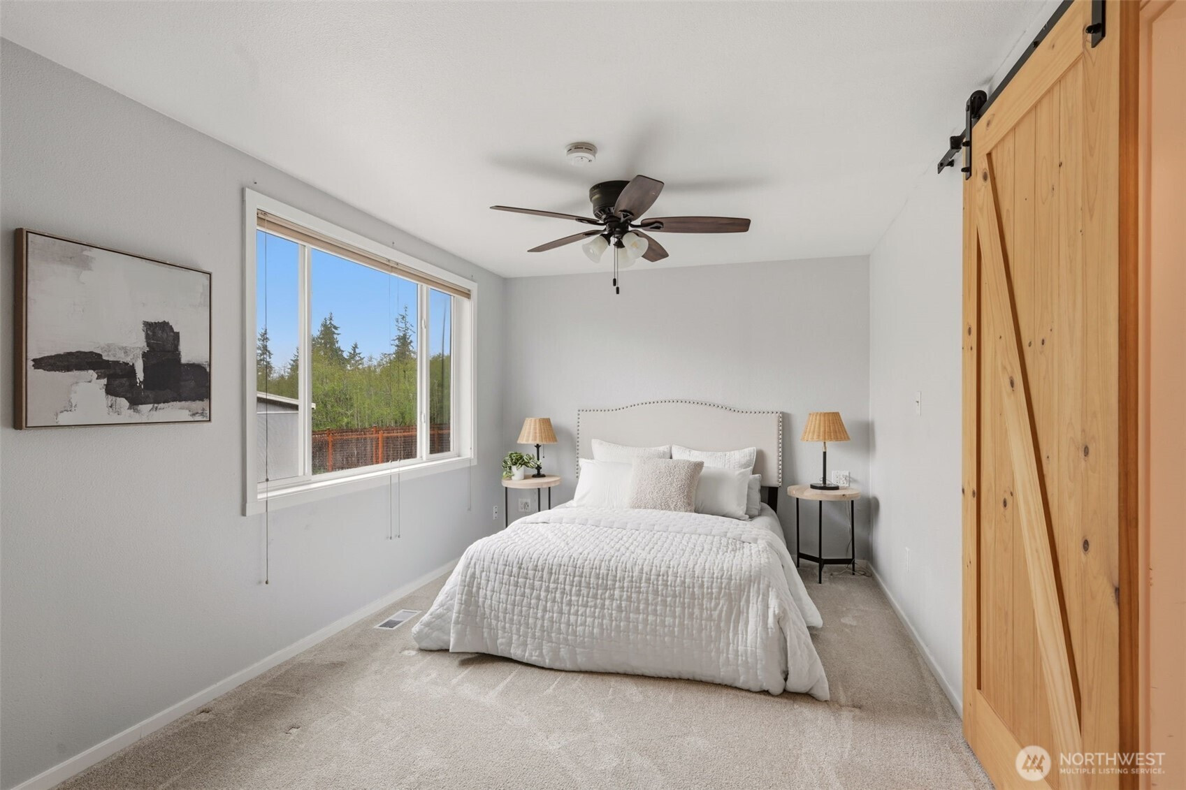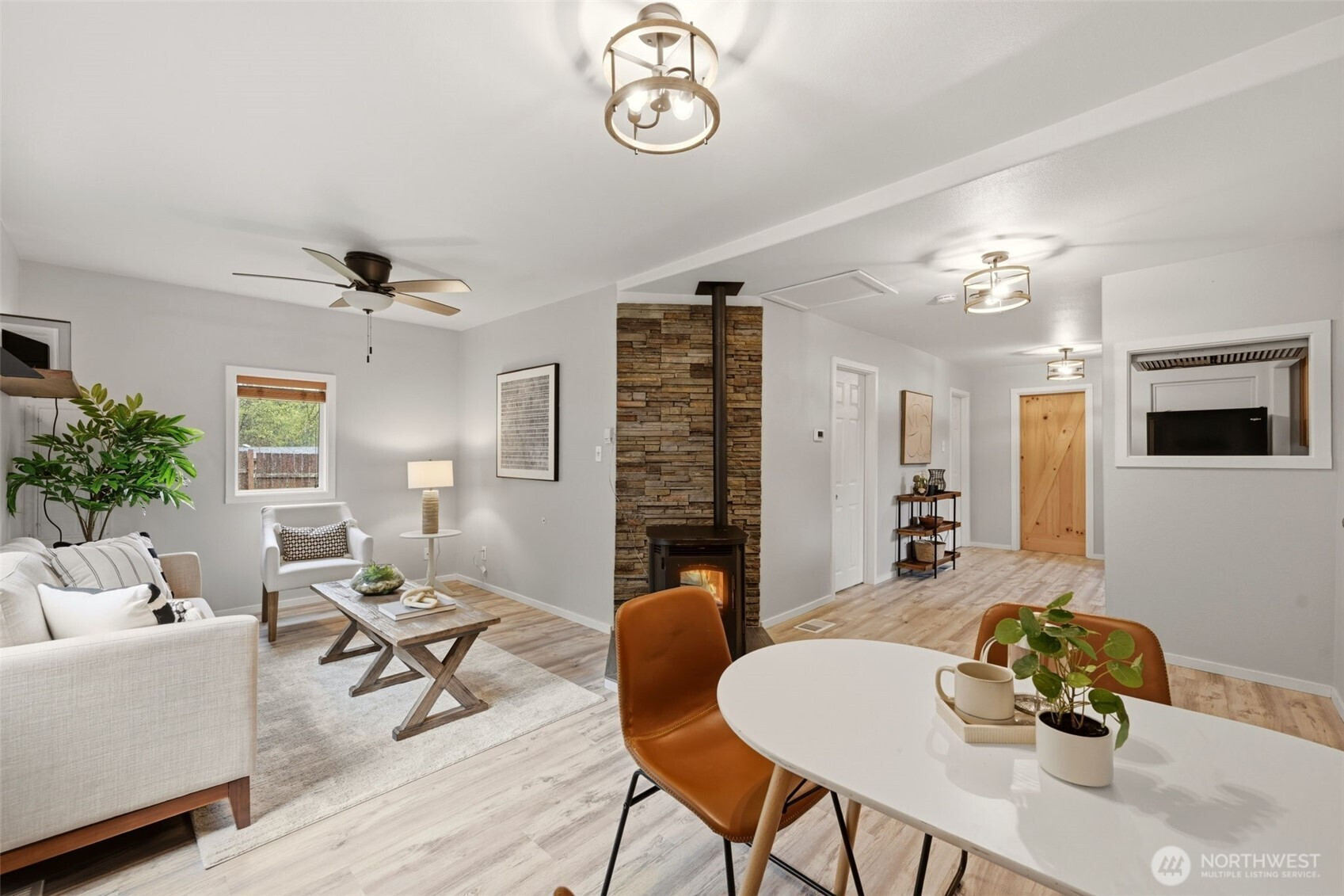 Welcome to your cozy cabin in the city. Wrapped in cedar siding and framed by towering evergreens, this 2-bed, 1-bath Kent retreat sits on 1.463 acres across two separate tax parcels — room to spread out and still have green space to spare. The covered wraparound deck with exposed beam ceiling and string lights sets the tone instantly — whether it's morning coffee, an evening around the fire pit, or simply soaking in the peaceful surroundings. The fully fenced backyard offers room to roam, the expansive gravel lot handles RV, boat, and trailer parking with ease, and a detached outbuilding adds storage or workspace. Inside, fresh LVP flooring, granite countertops, stainless appliances, a spa-inspired bath, and knotty pine barn doors make it warm and move-in ready. Immaculately maintained and lovingly cared for, every detail has been tended to. The pellet stove keeps you cozy all winter long. Steps from Lake Youngs Reservoir and miles of trails, yet minutes from shopping, dining, and commuter routes. Properties like this — truly one of a kind — rarely come to market. City convenience. Don't miss out on this one!