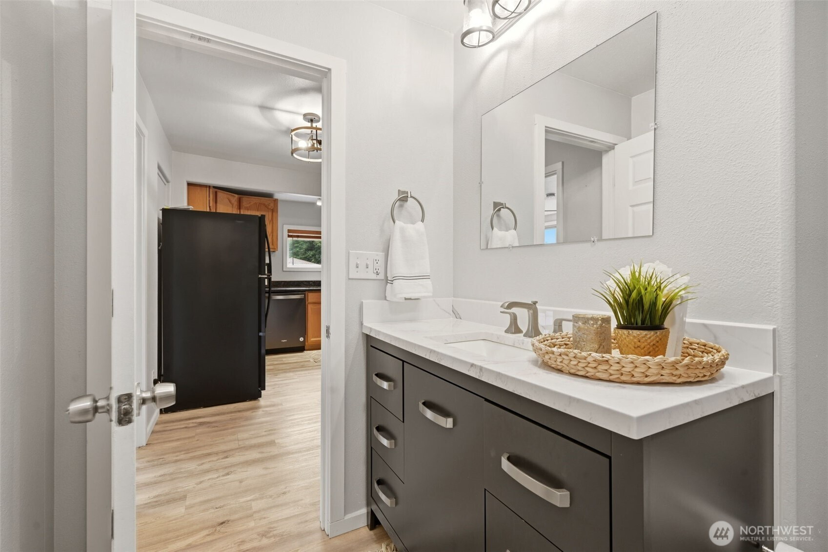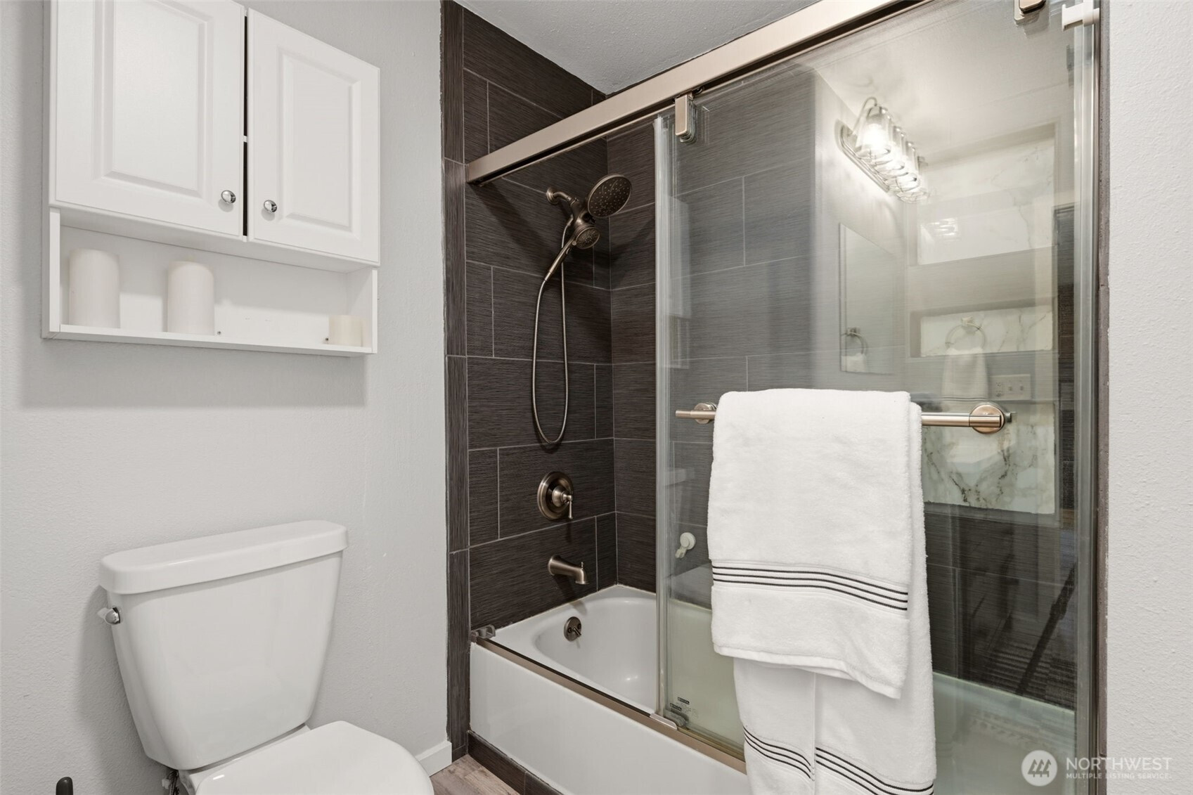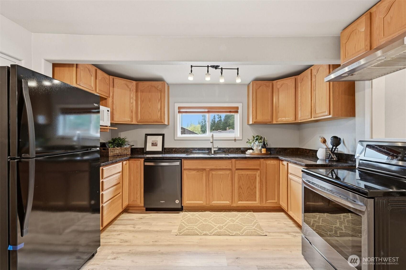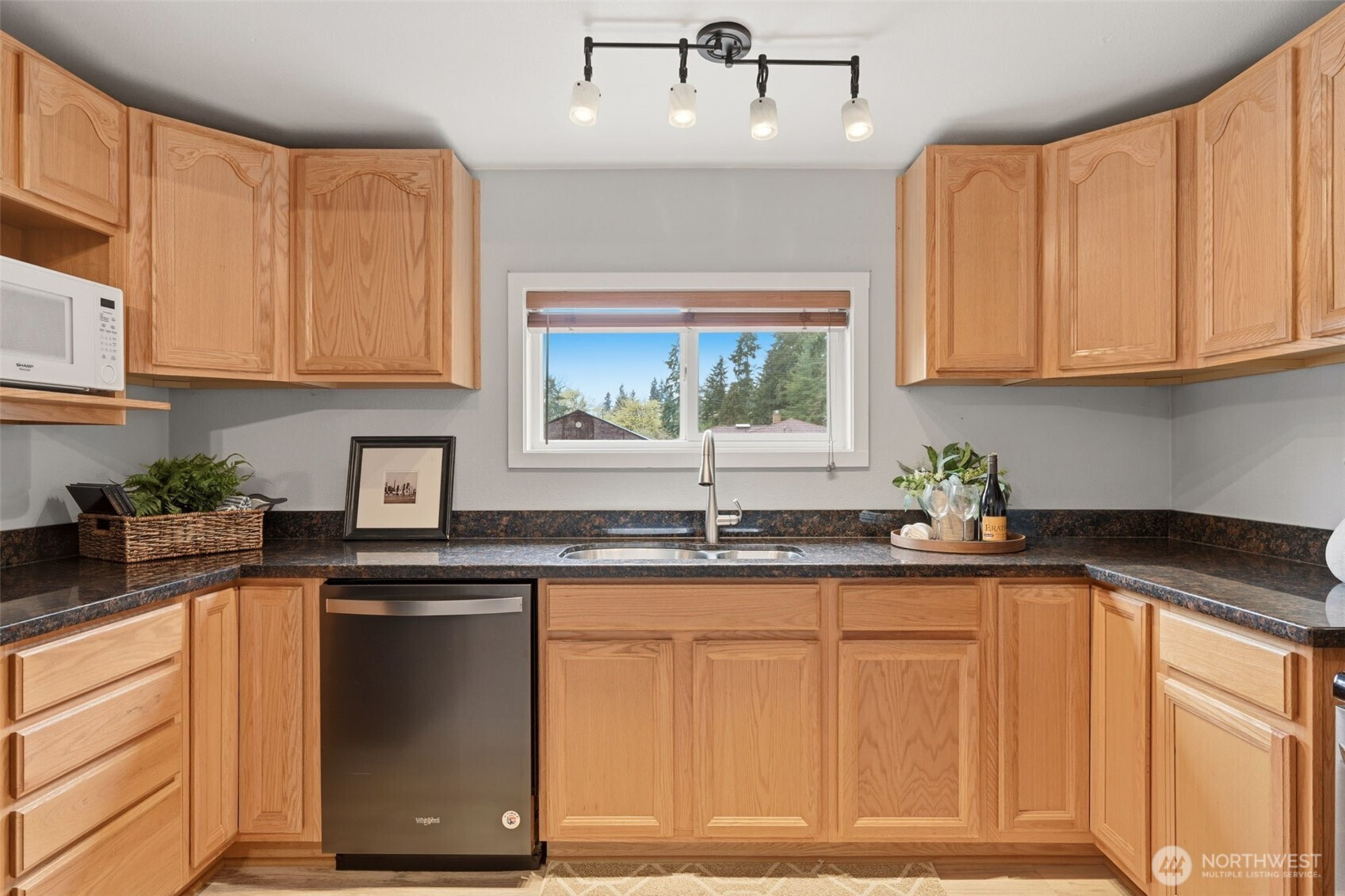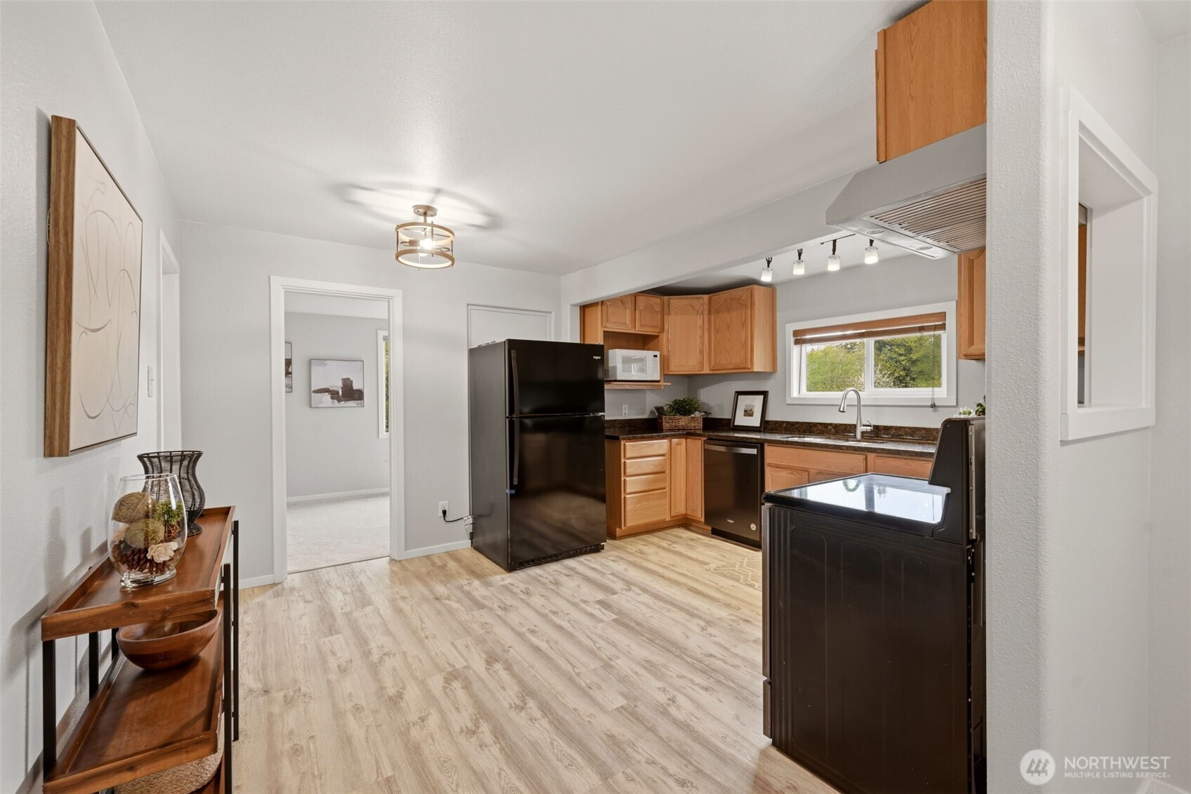 Welcome to your cozy cabin in the city. Wrapped in cedar siding and framed by towering evergreens, this 2-bed, 1-bath Kent retreat sits on 1.463 acres across two separate tax parcels — room to spread out and still have green space to spare. The covered wraparound deck with exposed beam ceiling and string lights sets the tone instantly — whether it's morning coffee, an evening around the fire pit, or simply soaking in the peaceful surroundings. The fully fenced backyard offers room to roam, the expansive gravel lot handles RV, boat, and trailer parking with ease, and a detached outbuilding adds storage or workspace. Inside, fresh LVP flooring, granite countertops, stainless appliances, a spa-inspired bath, and knotty pine barn doors make it warm and move-in ready. Immaculately maintained and lovingly cared for, every detail has been tended to. The pellet stove keeps you cozy all winter long. Steps from Lake Youngs Reservoir and miles of trails, yet minutes from shopping, dining, and commuter routes. Properties like this — truly one of a kind — rarely come to market. City convenience. Don't miss out on this one!