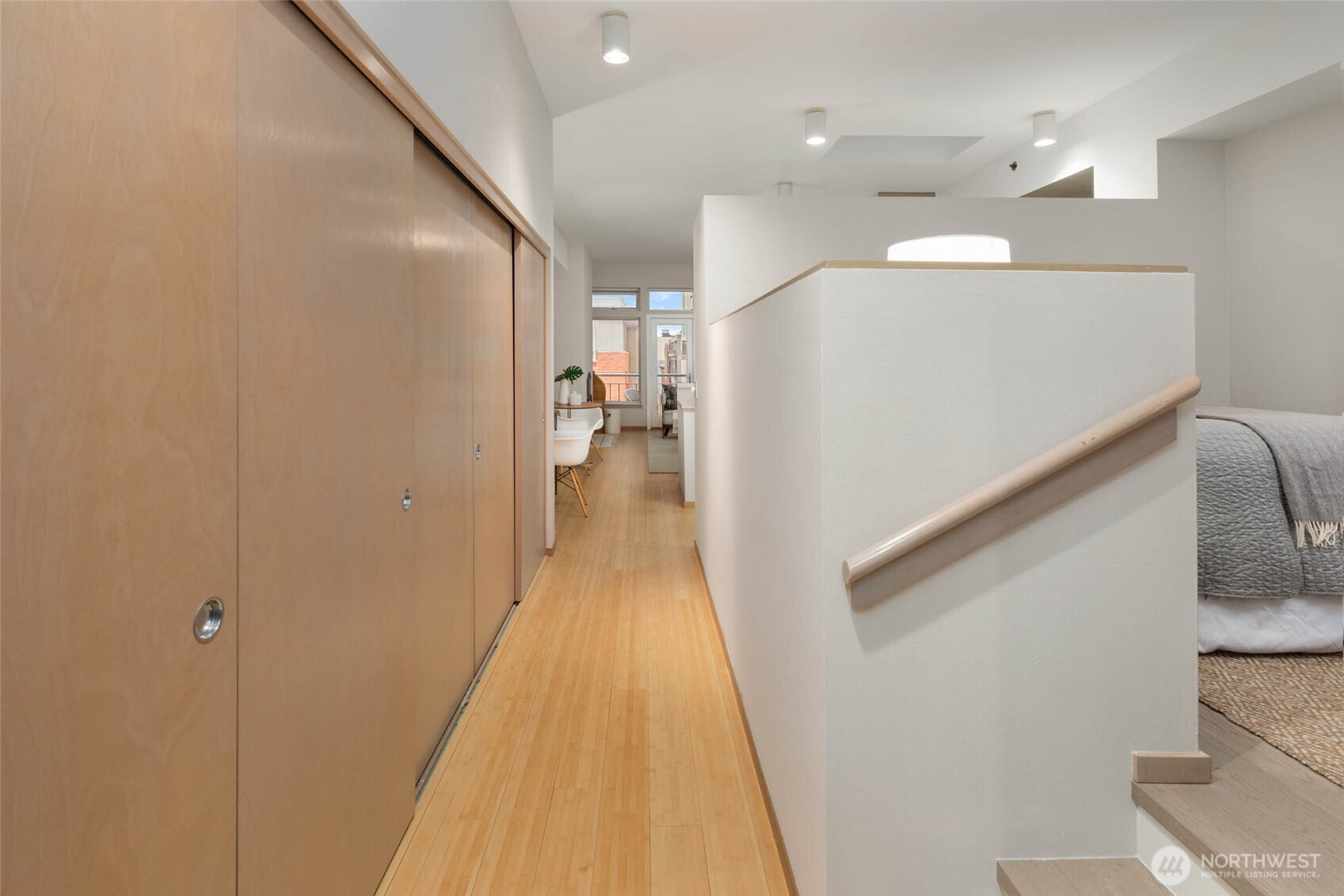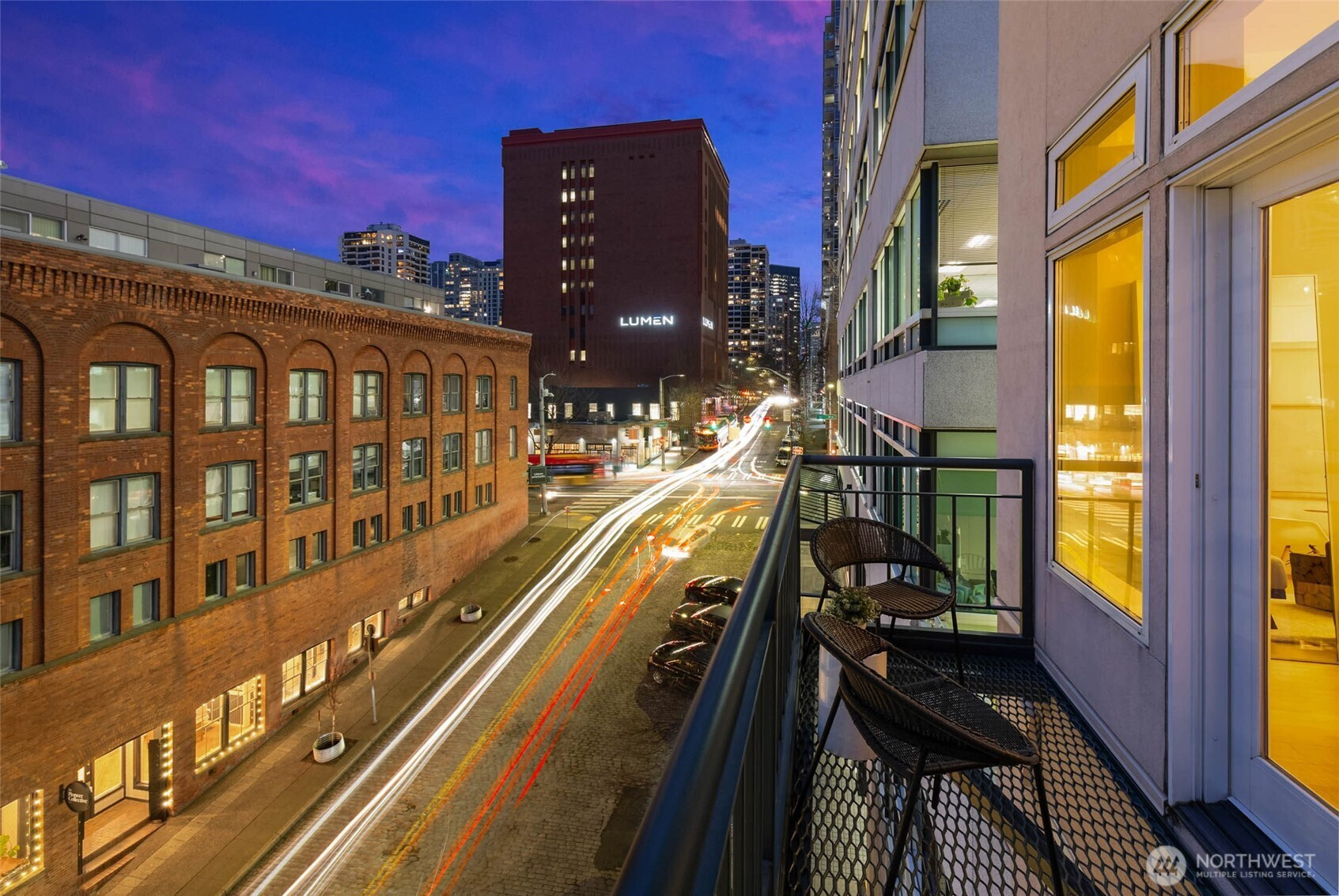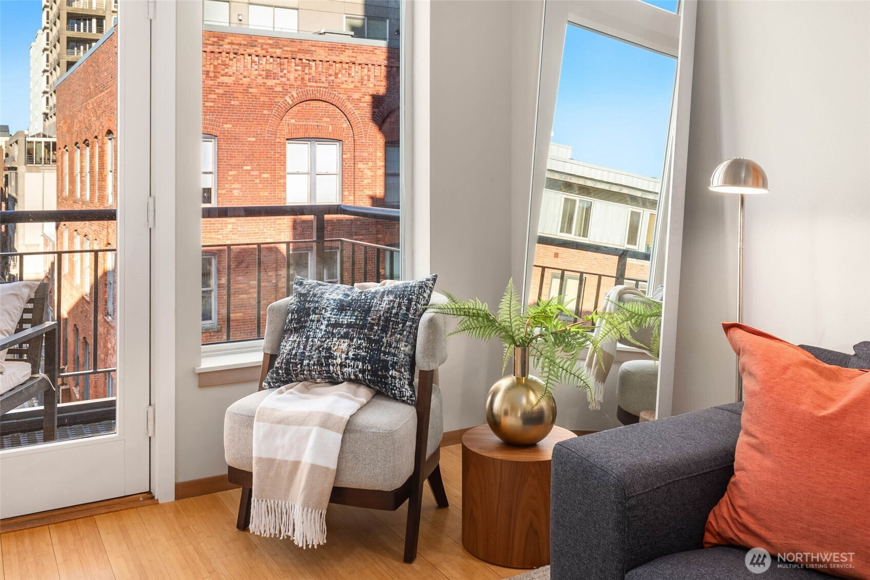 Tucked behind a secret Pike Alley entrance, this rare top-floor corner residence is a true in-city oasis—offering privacy, light, and iconic Seattle energy just outside your door. Set within one of Seattle’s most coveted buildings, tall airy ceilings, floor-to-ceiling picture windows, a skylight, and a rare wood-burning fireplace create a warm, elevated retreat, while French doors lead onto the private lanai, welcoming in the ocean breeze and capturing sweeping views of the Sound, glowing sunsets, and passing ferries. The spacious kitchen features abundant cabinetry and storage throughout, complemented by an in-unit washer and dryer and thoughtful extras like a garbage chute just down the hall. Enjoy deeded secure garage parking with a private EV charger, a secure storage unit, concierge entry, and exclusive access to a serene building patio with fountain and private Post Alley access. With Pike Place Market steps away, restaurants and pubs at the base of the building, walkable access to LINK light rail, and effortless strolls to parks, the waterfront, and all of downtown, this home delivers rare tranquility in the heart of it all. Building is FHA approved, and a lender credit is available for qualified buyers.