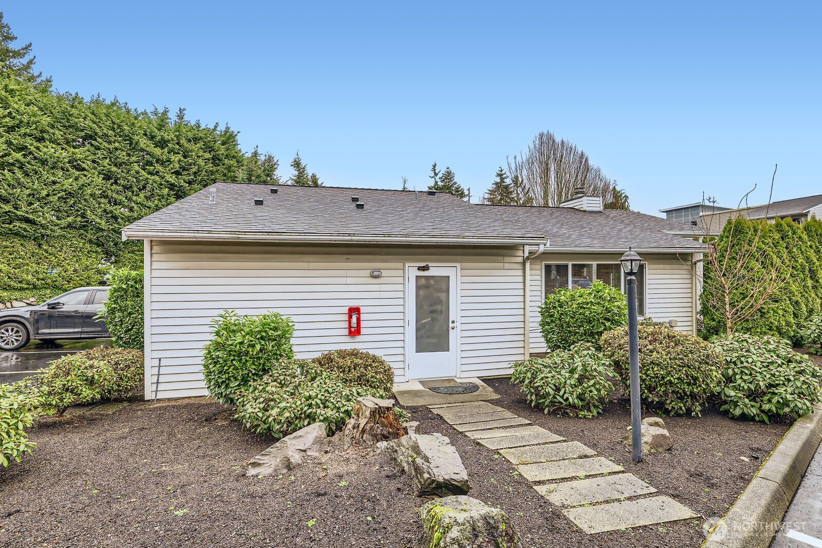 Huge Price Reduction! Experience the charm of a single-family home with the ease of condo living. This rare free-standing 2 bed, 2 bath condo offers 1,279 sq. ft. of well-designed space. Vaulted ceilings, tile entry, and a cozy wood-burning fireplace with crown molding create a warm, inviting feel. The open kitchen features a large island and stainless steel appliances, perfect for entertaining. The primary suite includes a walk-in closet and full en suite, with a second bedroom ideal for guests or an office. Enjoy a private covered patio, two parking spaces, no rental cap, and low-maintenance living, all minutes from I-5, light rail, and shopping.