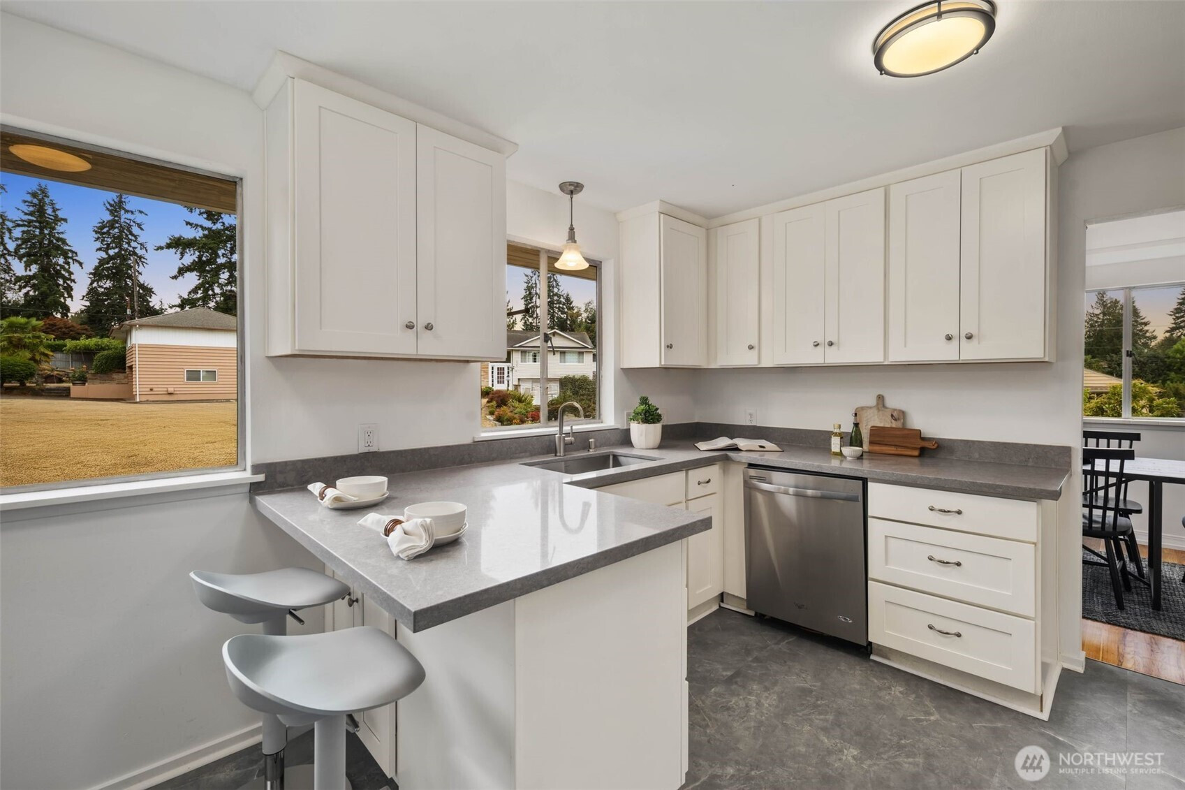 The Shoreline home you've been waiting for! Located in a quiet neighborhood and situated on a +10,000sqft corner lot. This 2703sqft daylight rambler features 3 bedrooms and 2 bathrooms upstairs plus a spacious walk-out basement with an additional bedroom/bathroom, kitchen, and living room. Loaded with amazing features including fresh paint inside and out, refinished original hardwood floors, modernized kitchen, two fireplaces, fully fenced backyard and tons of outdoor entertaining space. Ideal location on the edge of Shoreline and Edmonds, and just around the corner from Costco, Home Depot, restaurants, and all the conveniences. Large two car garage with spacious driveway parking, RV parking, and a detached shed. Pre-inspected and turn-key!