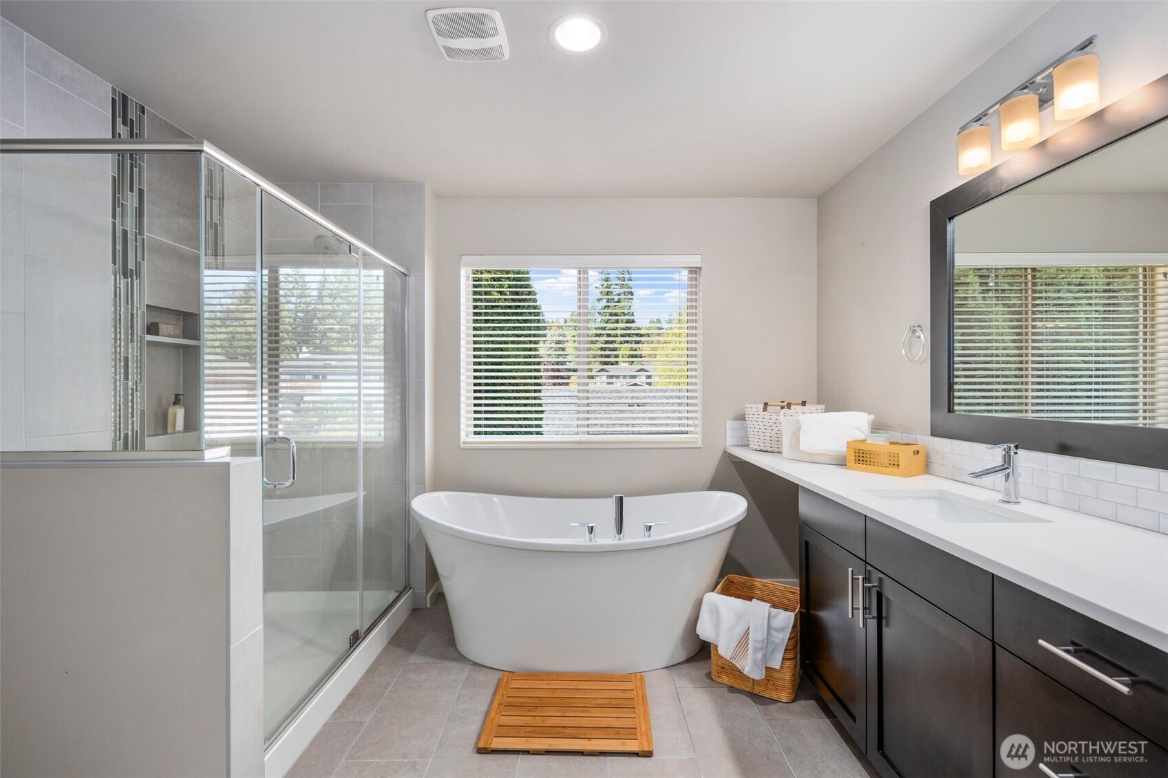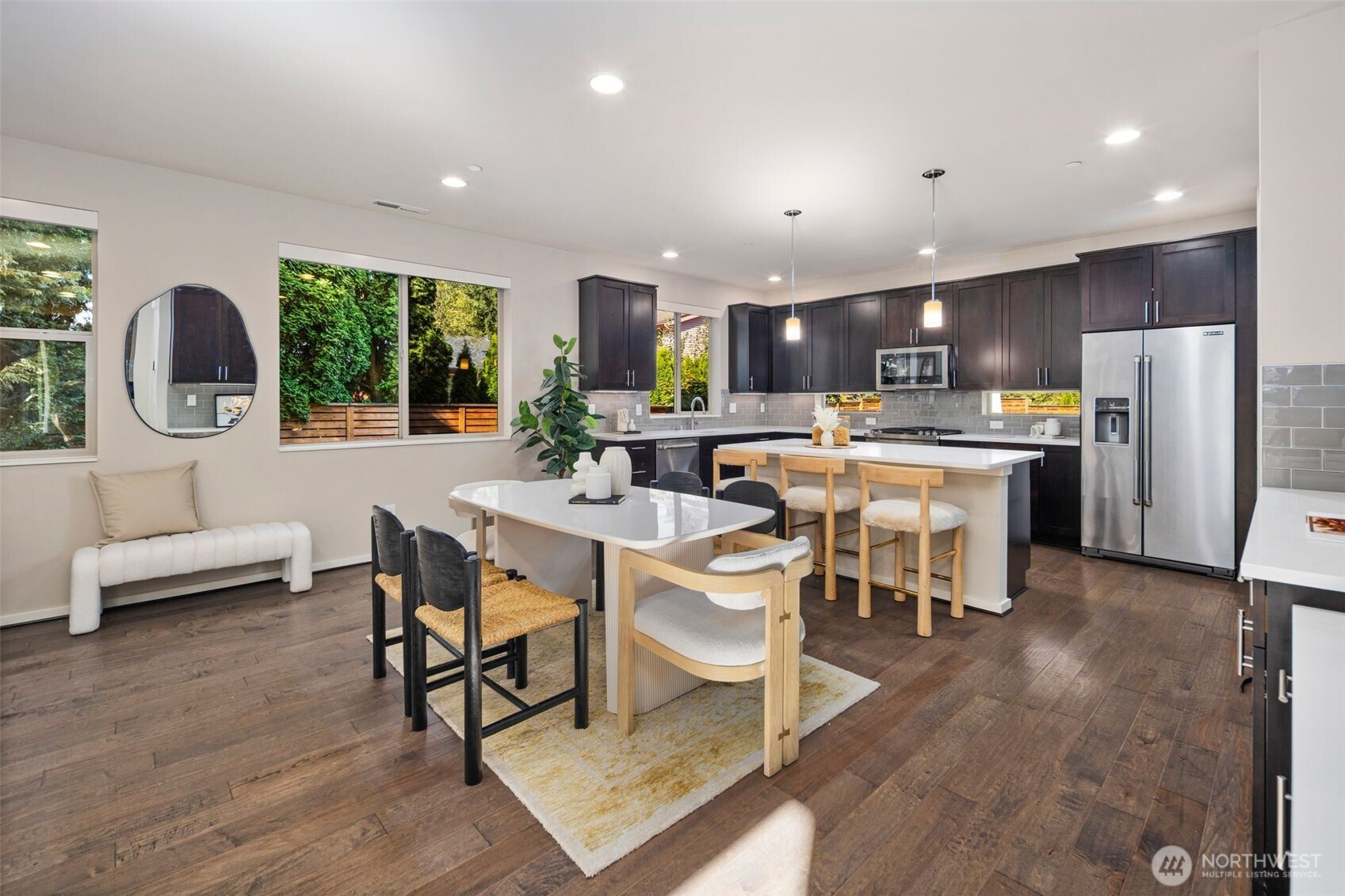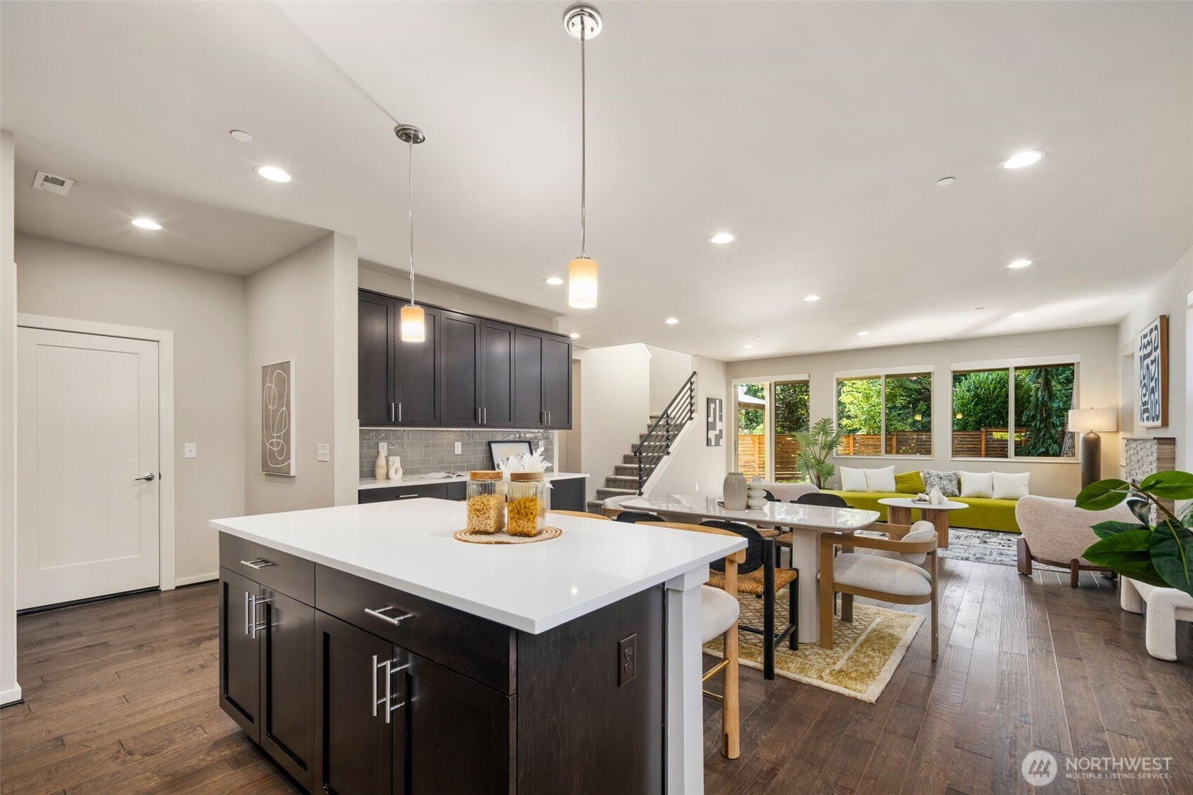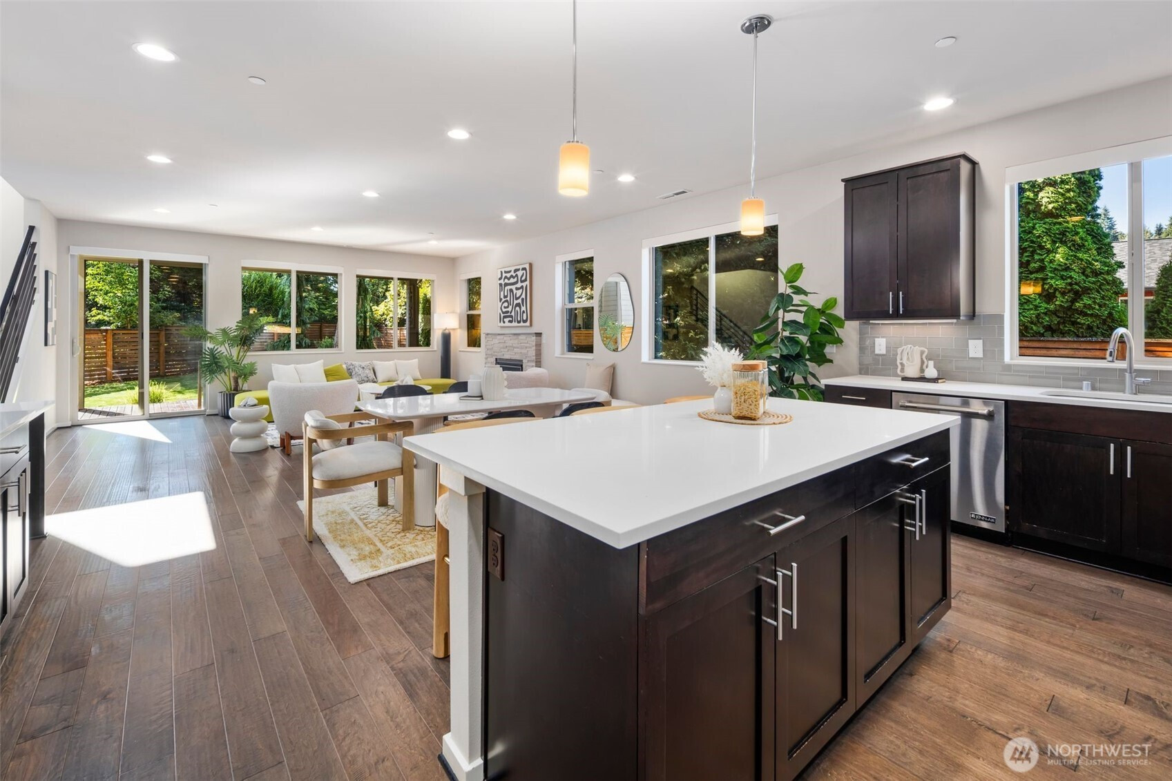 Situated on a peaceful lane in the heart of Kenmore, this 2017 gem blends modern design with everyday comfort in all the right ways. With nearly 2,900 sq ft of stylish living space on a generous 6,279 sq ft lot, this 4-bed, 3-bath home delivers space, flow, and function. The open-concept main floor is filled with natural light, featuring sleek finishes, motorized blinds, and a chef’s kitchen designed for entertaining. Upstairs, a spacious primary suite offers a peaceful retreat, complemented by three additional bedrooms. Outside, enjoy a private yard ideal for relaxing or hosting. Located in the Northshore School District and major commuter routes, this home checks all the boxes for modern living.