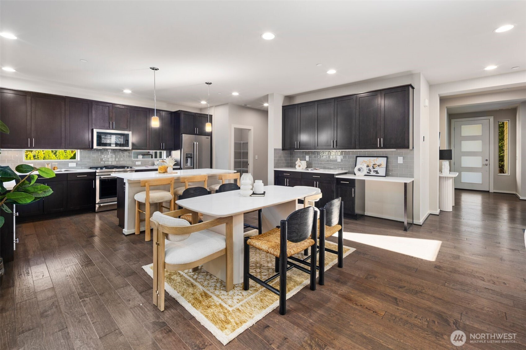 (503) 893-8874Discover this pristine 2017 residence nestled on a quiet Kenmore street. Spanning nearly 2,900 sq ft, this 4-bed, 3-bath home boasts an impeccably designed floor plan. The sun-drenched main level features a bedroom suite (with an adjacent full bath), an office/den, and an chef’s kitchen that opens seamlessly to the main living area. Upstairs, the flow continues with a massive flex room perfect as a vibrant game center or media lounge. The ensuite features a large soaking tub, a separate oversized shower, and dual vanities. Step out to your private, fenced entertaining sanctuary in the backyard. This meticulously maintained space offers a generous patio area. Northshore Schools & commuter proximity complete this package!