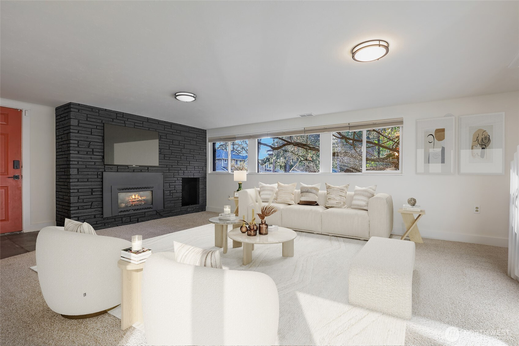 Situated on a beautifully landscaped, oversized lot, this mid-century modern home offers privacy, space and flexible living in a prime Shoreline location. A circular driveway welcomes you to a bright, elevated main level featuring hardwood floors and a warm living room with gas fireplace. The kitchen with eating bar connects easily to the dining room and opens to a side deck and front balcony, perfect for summer evenings. Two bedrooms are located upstairs, including a generously sized room with double closets, plus an updated hall bath. The daylight lower level expands the living space with a third bedroom, 3/4 bath, spacious family room with second gas fireplace and separate entrance with kitchenette, offering potential for guests or multi-generational living. Outdoors, enjoy a private backyard with patio, sport court and large shed, creating room to play, garden or entertain. Lifetime metal roof and refreshed finishes add peace of mind. Located in the award-winning Shoreline School District and just minutes to downtown Edmonds, Richmond Beach Saltwater Park, parks, dining and commuter routes.