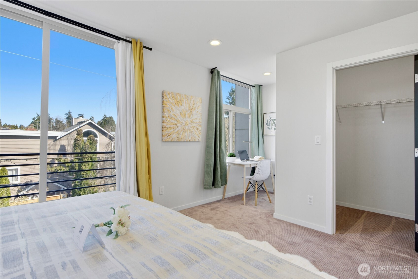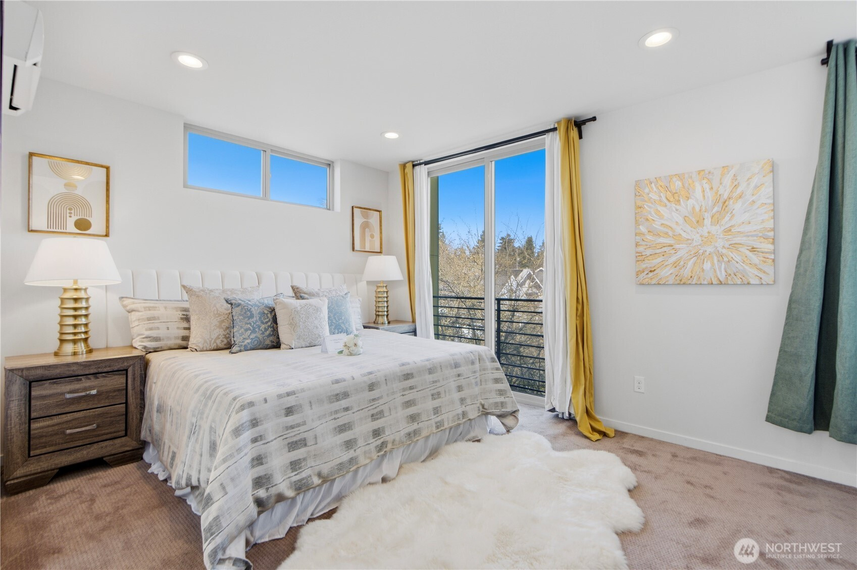 Welcome to this modern duplex-style townhome in the heart of Ballard, where sleek design meets effortless urban living. Thoughtfully designed with clean lines and open, minimalist living spaces, the home features open-concept layout, elegant hardwood floors, and expansive windows that fill with natural light. A flexible office on the second floor can easily serve as a 3rd bedroom. The entire top level is dedicated to a spacious primary suite, complete with its own sitting area or den, a walk-in closet, and a beautifully appointed bath with a large walk-in shower. The generous rooftop deck offers city and territorial views—perfect for relaxing or entertaining. Enjoy your fenced front yard, A/C, and off-street parking, all just steps from Ballard’s acclaimed dining, boutique shopping, nightlife, and parks.