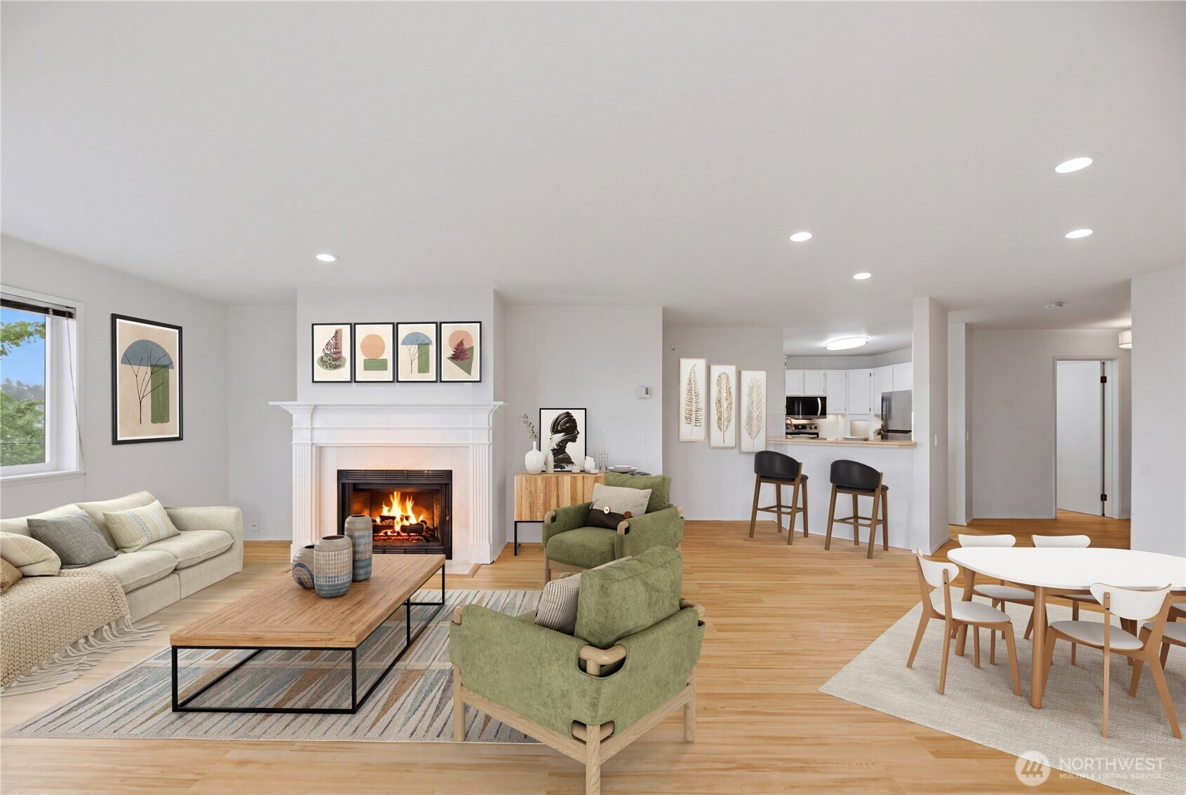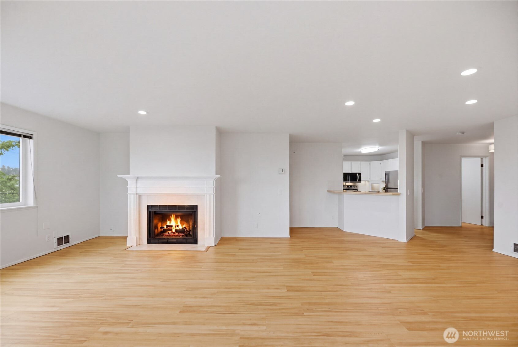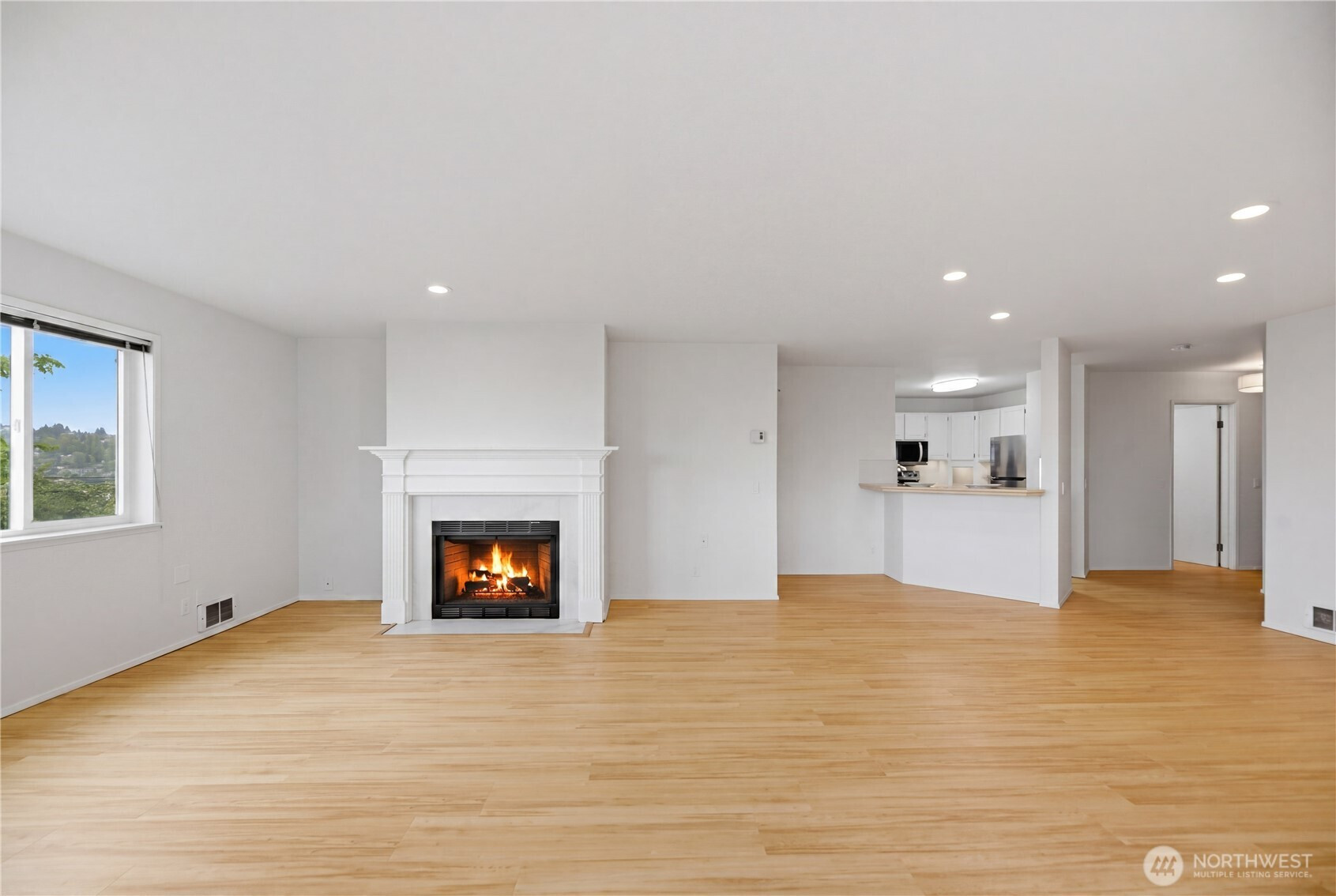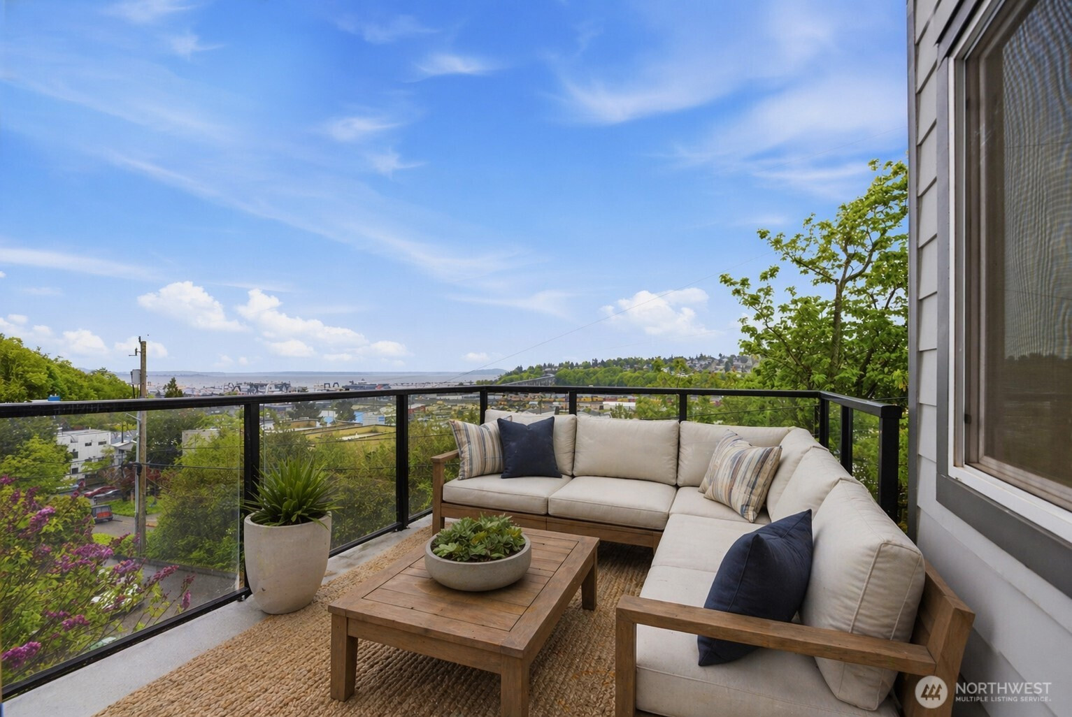 Don’t miss this stunning 2 bed, 1.75 bath Queen Anne condo offering sweeping views of Puget Sound, ferry crossings, and cruise ships gliding into port. Designed for effortless living and entertaining, the open-concept layout flows seamlessly from the spacious kitchen with breakfast bar to the dining and living areas, and out to a private deck, perfect for unwinding with your favorite beverage while taking in the view. Fresh interior paint, brand new LVP flooring, and a refreshed kitchen make this home truly move-in ready. The split-bedroom layout offers ideal privacy for roommates or a work-from-home lifestyle. In-unit washer and dryer add everyday convenience. Exceptional storage includes a large walk-in closet (ideal even for a small home office space), walk-in pantry off the entry, dual closets in the primary suite, and an additional storage unit. Enjoy year-round comfort with a cozy wood-burning fireplace in the winter and spectacular summer views. This quiet corner unit offers superb privacy with no unit below. Two secured garage parking spaces included and an elevator to take you directly to your floor. The building exterior has been fully renovated within the past six years. Low HOA dues cover water, sewer, and garbage, and the rental cap has not been met, offering flexibility for future use. A rare opportunity to enjoy comfort, convenience, and captivating views in one of Seattle’s most sought-after neighborhoods.