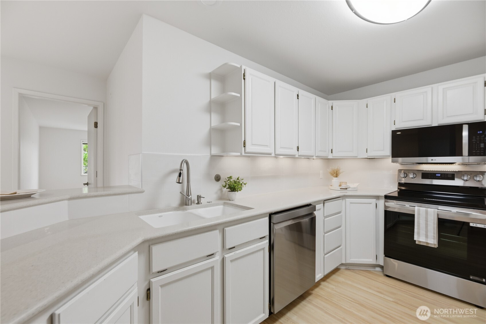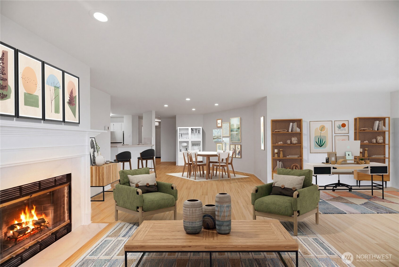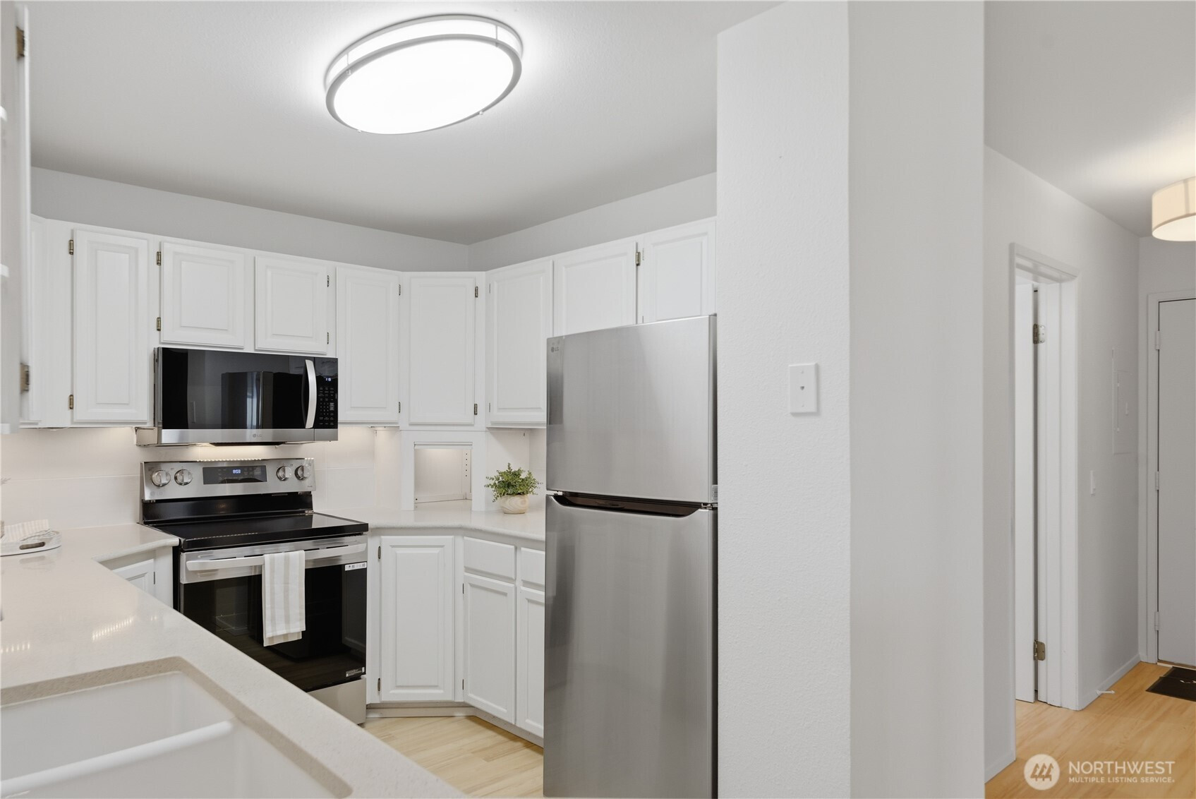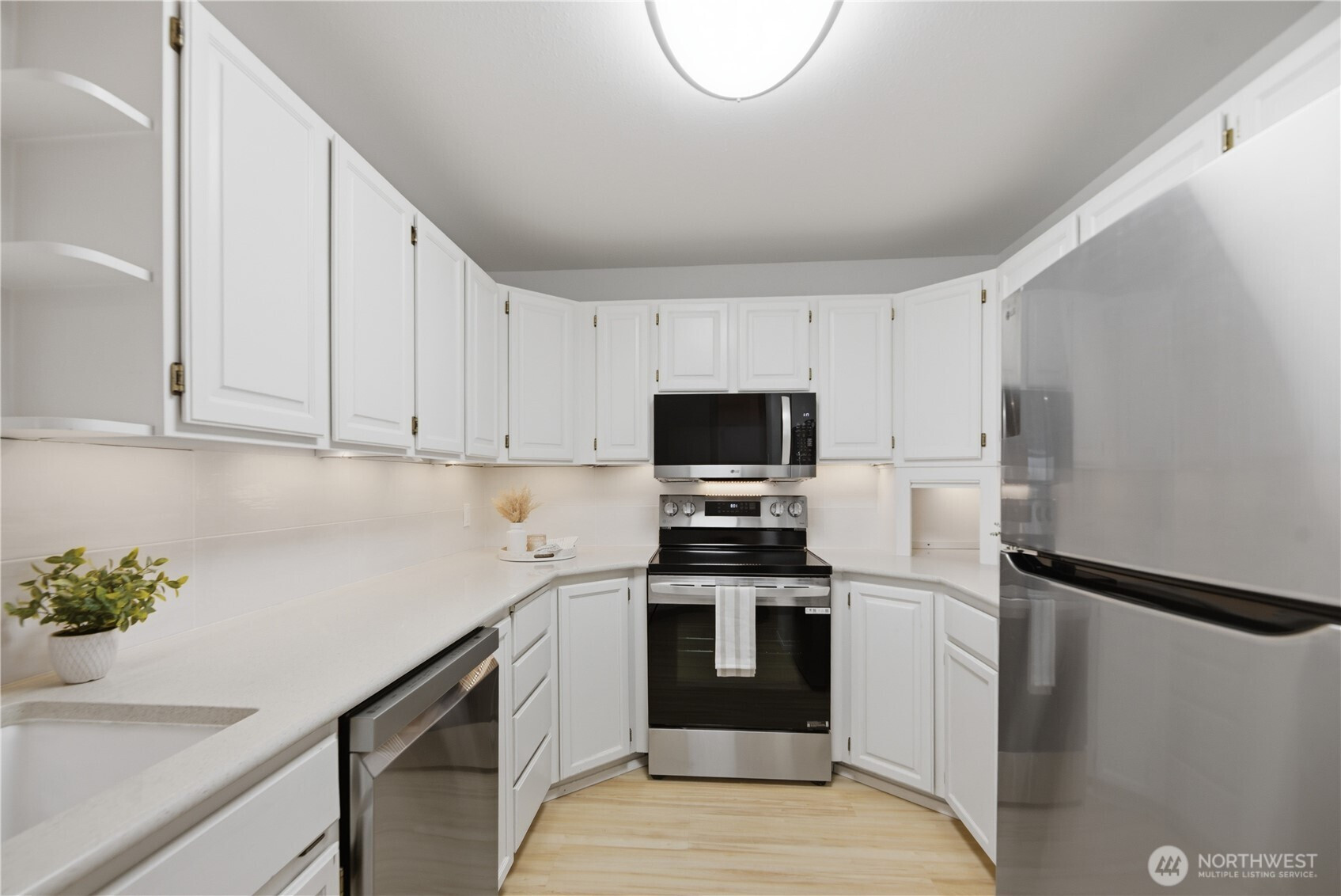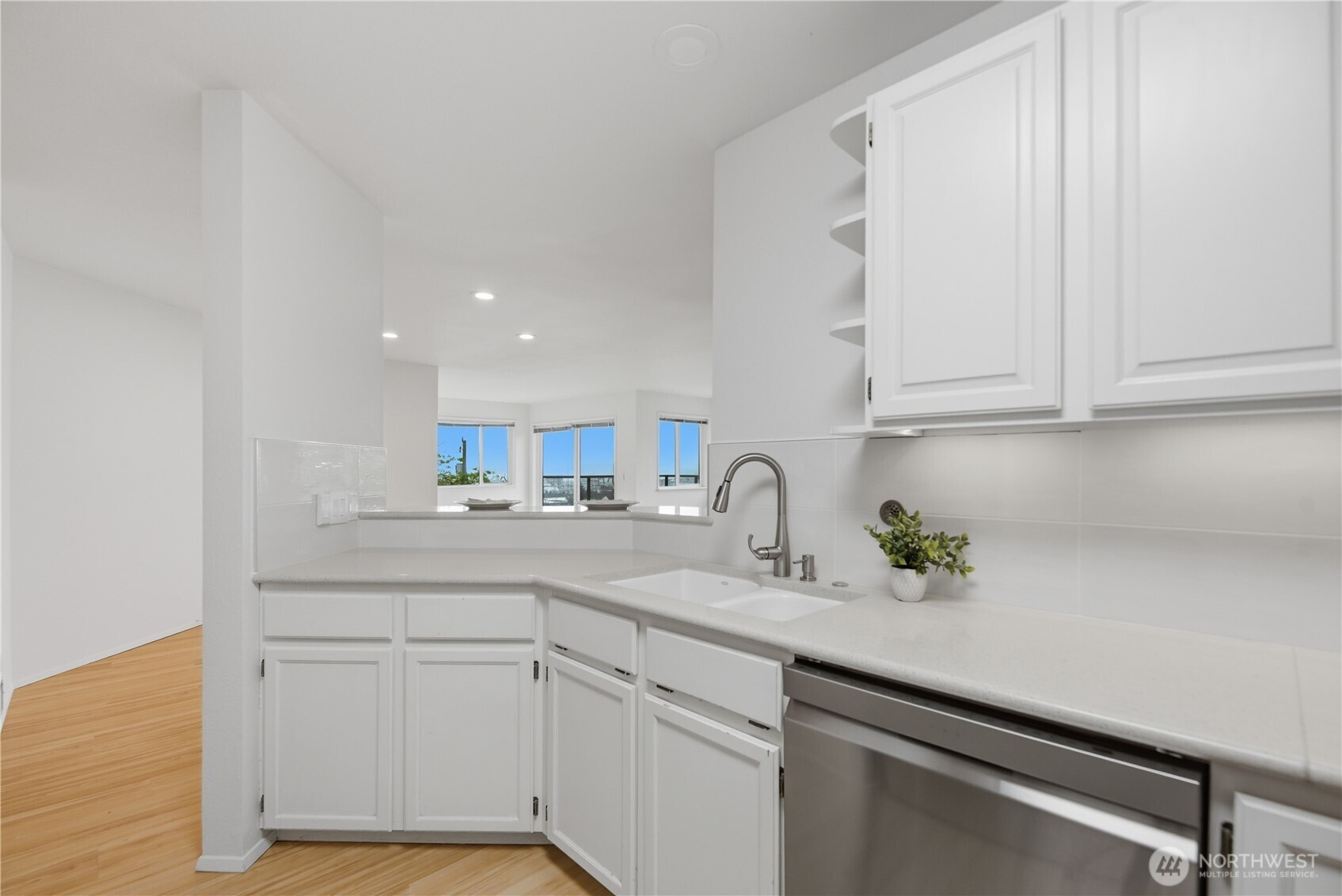 Don’t miss this stunning 2 bed, 1.75 bath Queen Anne condo offering sweeping views of Puget Sound, ferry crossings, and cruise ships gliding into port. Designed for effortless living and entertaining, the open-concept layout flows seamlessly from the spacious kitchen with breakfast bar to the dining and living areas, and out to a private deck, perfect for unwinding with your favorite beverage while taking in the view. Fresh interior paint, brand new LVP flooring, and a refreshed kitchen make this home truly move-in ready. The split-bedroom layout offers ideal privacy for roommates or a work-from-home lifestyle. In-unit washer and dryer add everyday convenience. Exceptional storage includes a large walk-in closet (ideal even for a small home office space), walk-in pantry off the entry, dual closets in the primary suite, and an additional storage unit. Enjoy year-round comfort with a cozy wood-burning fireplace in the winter and spectacular summer views. This quiet corner unit offers superb privacy with no unit below. Two secured garage parking spaces included and an elevator to take you directly to your floor. The building exterior has been fully renovated within the past six years. Low HOA dues cover water, sewer, and garbage, and the rental cap has not been met, offering flexibility for future use. A rare opportunity to enjoy comfort, convenience, and captivating views in one of Seattle’s most sought-after neighborhoods.